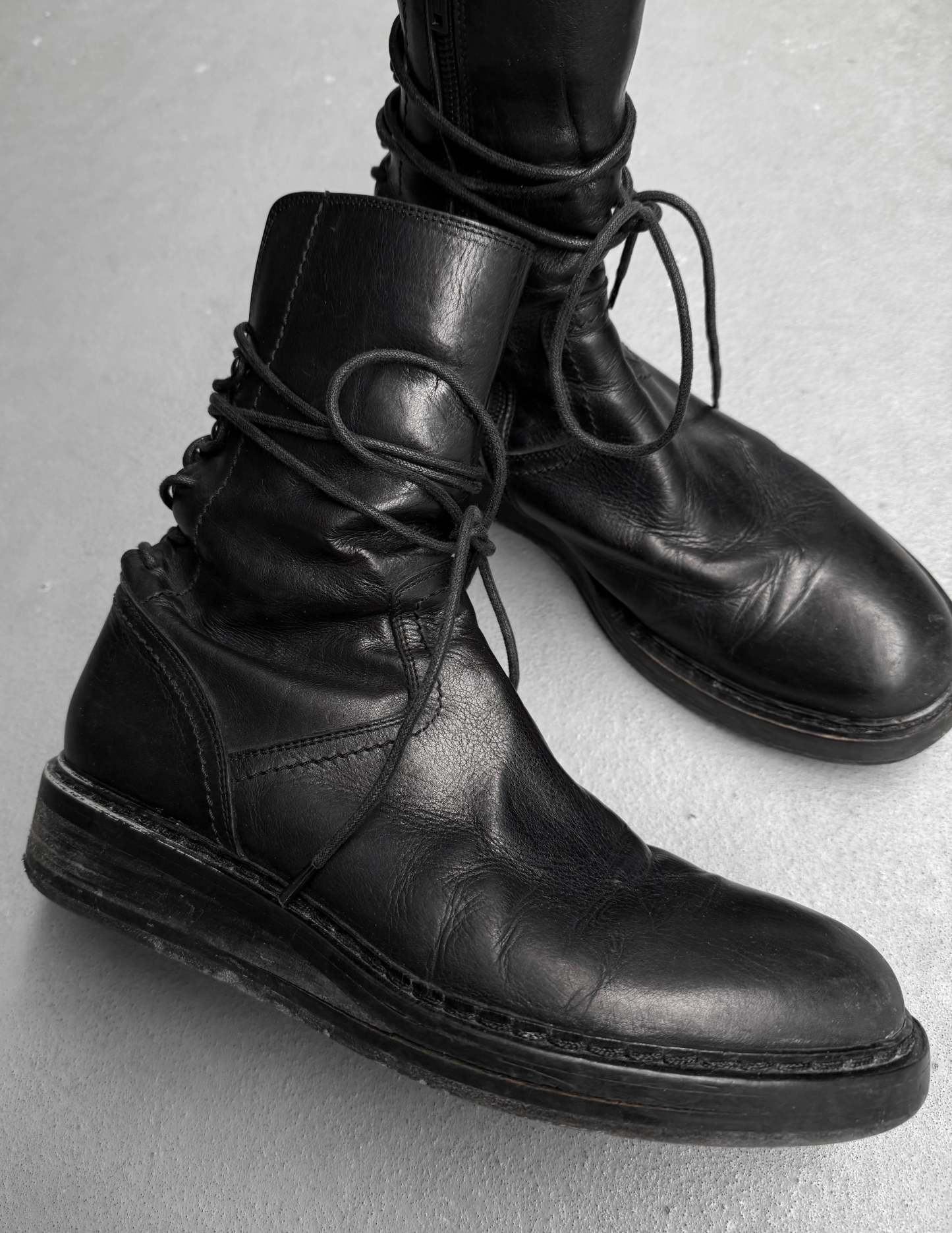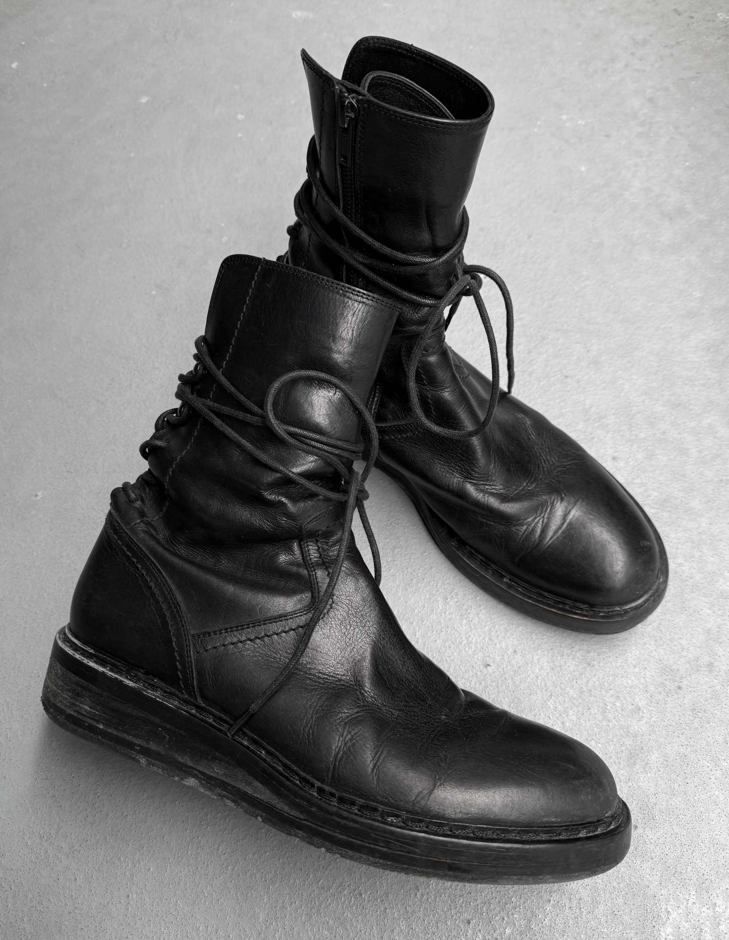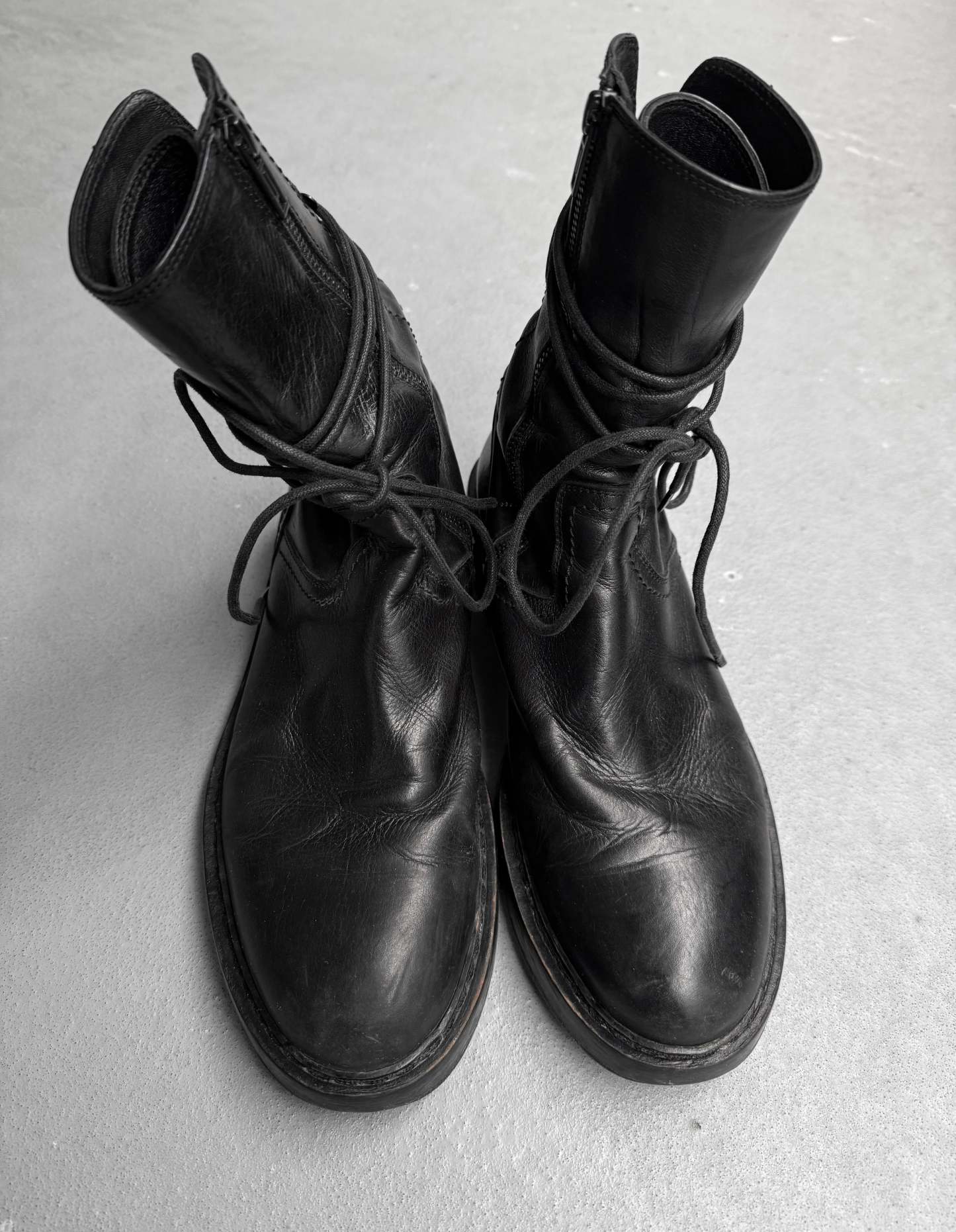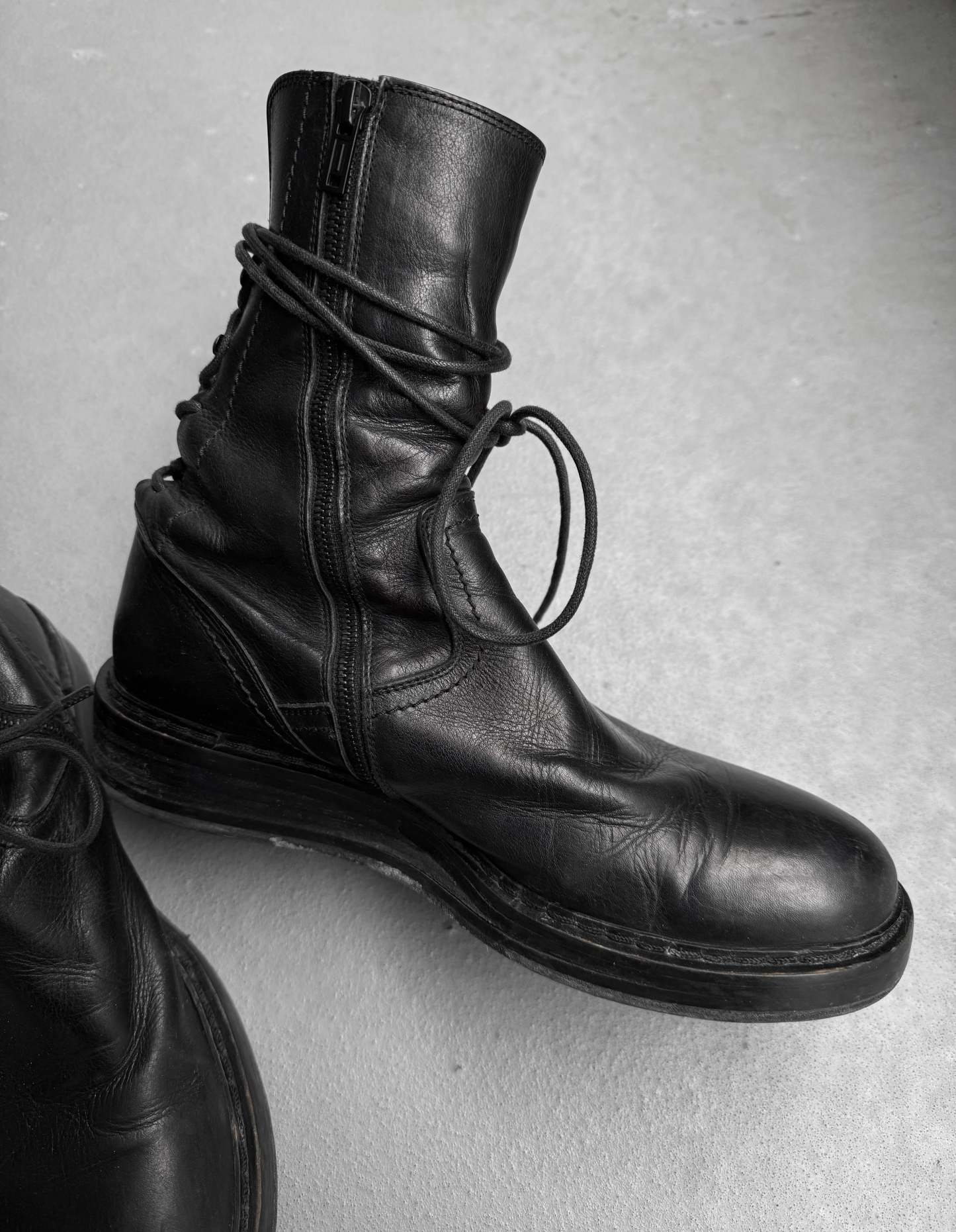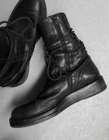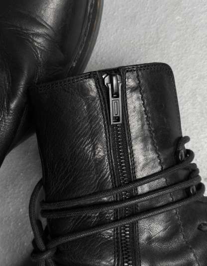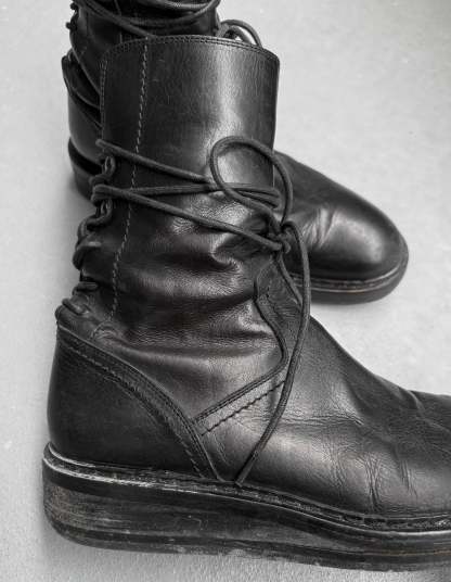 Ann Demeulemeester AW21 Black ‘Vitello’ Backlace Leather Boots