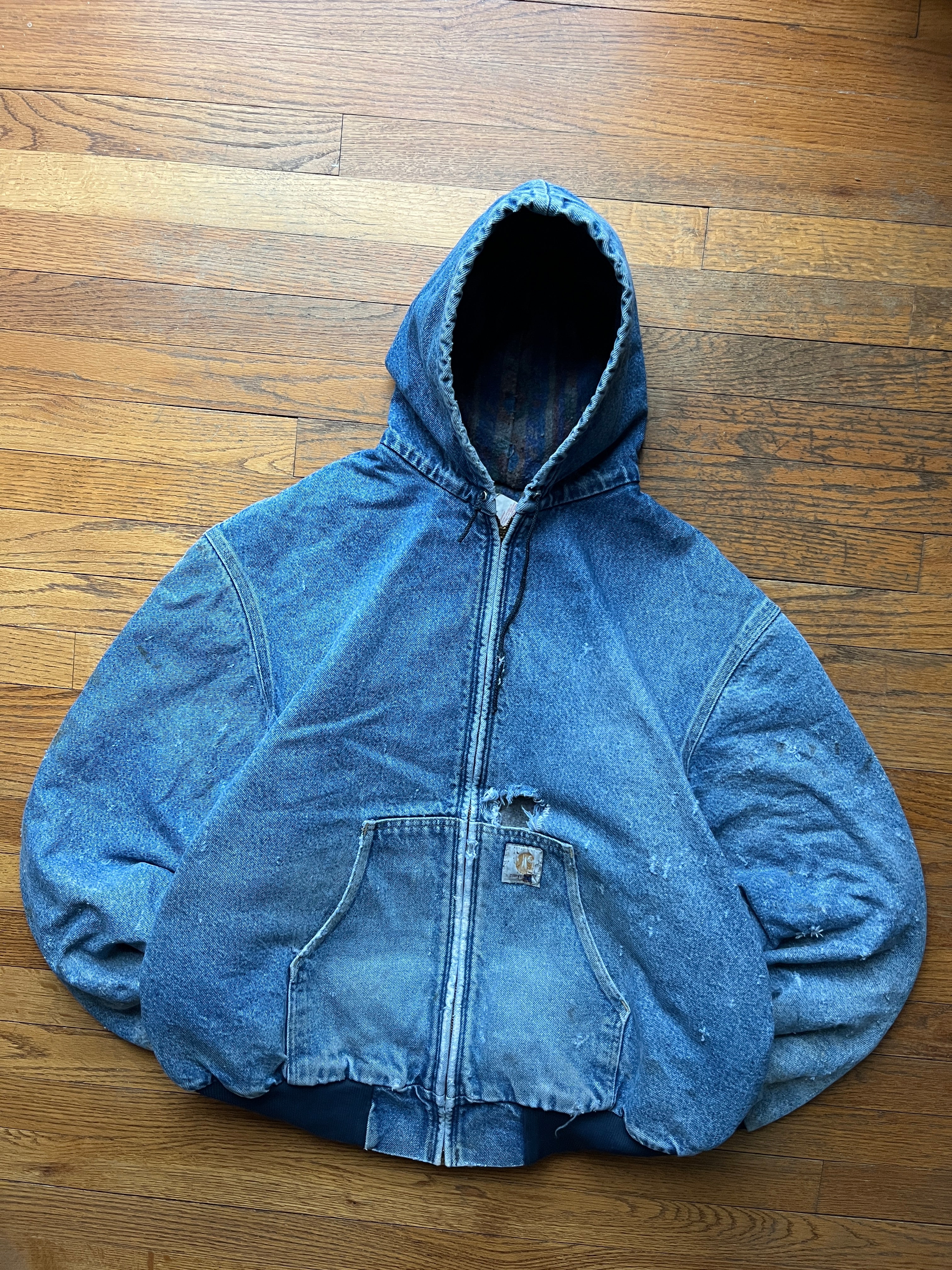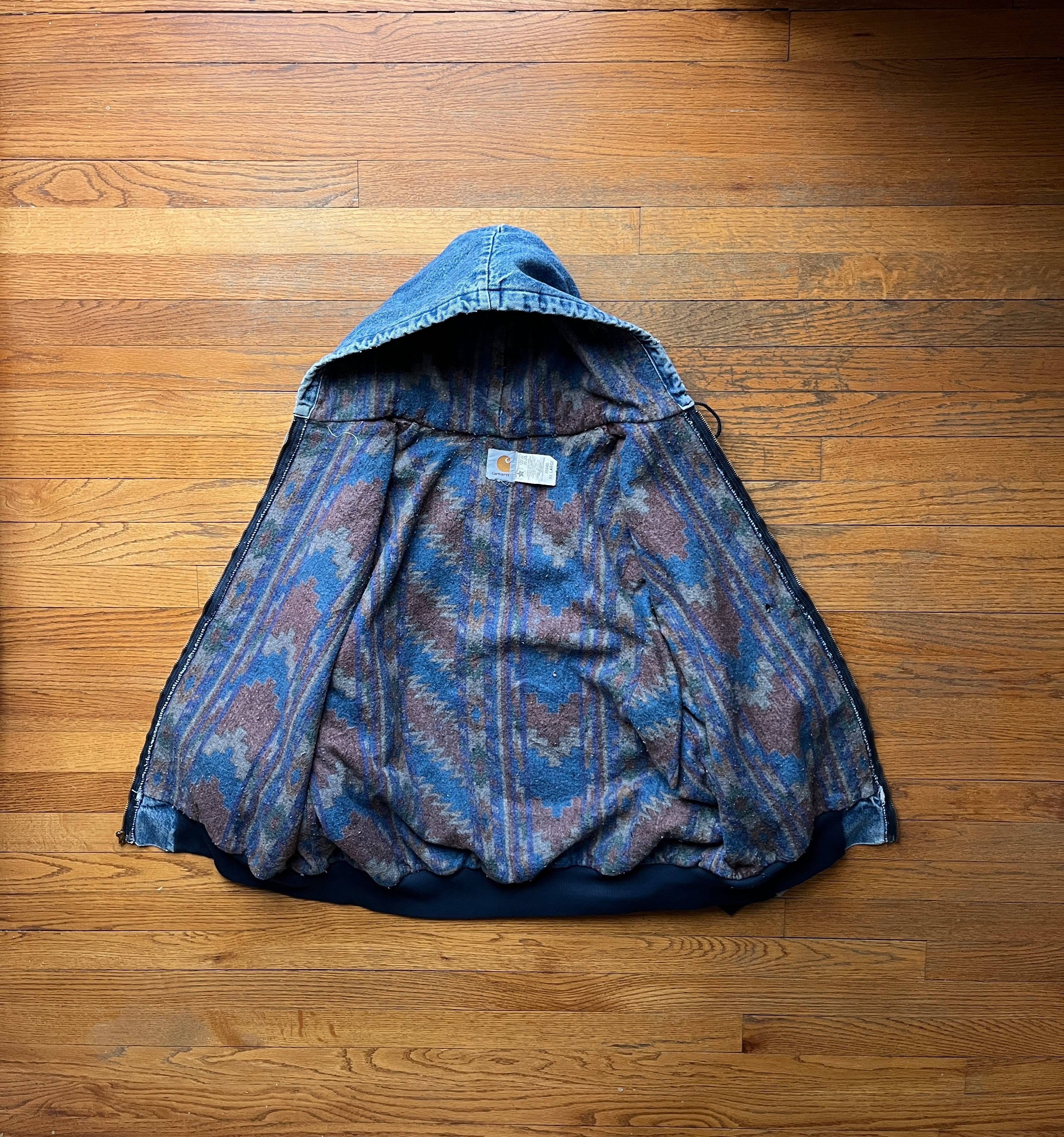 Faded n Distressed Southwest Aztec Denim Active Jacket - Boxy XL-2XL