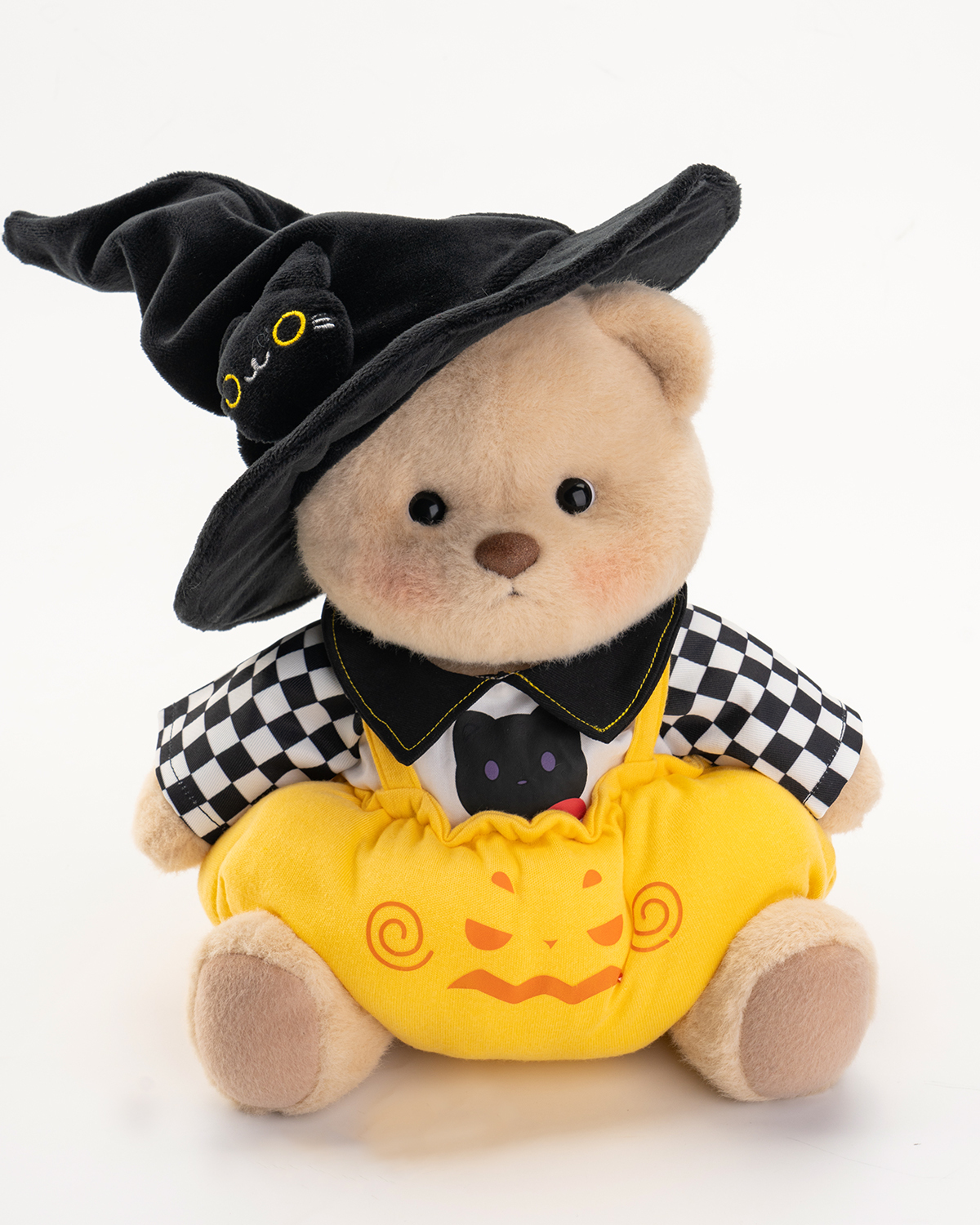 Getahug Halloween Cat Hat Pumpkin Overalls Bear | Handmade Jointed Teddy Bear Gift