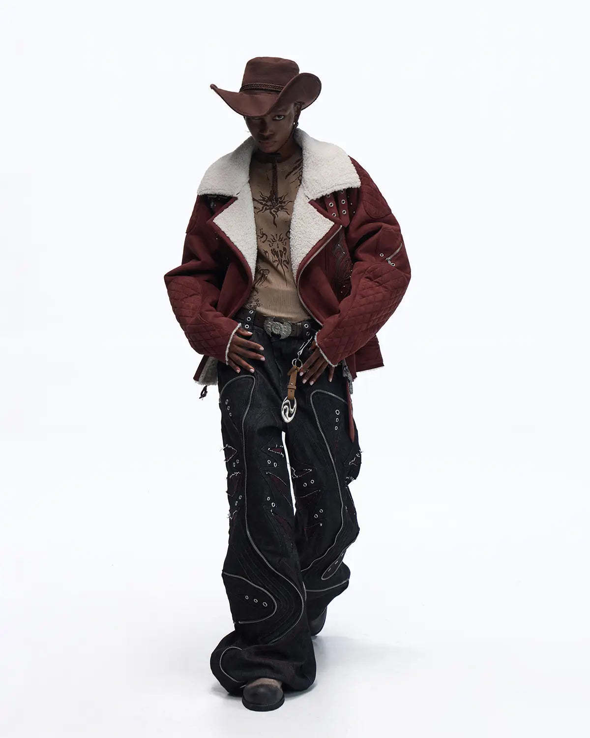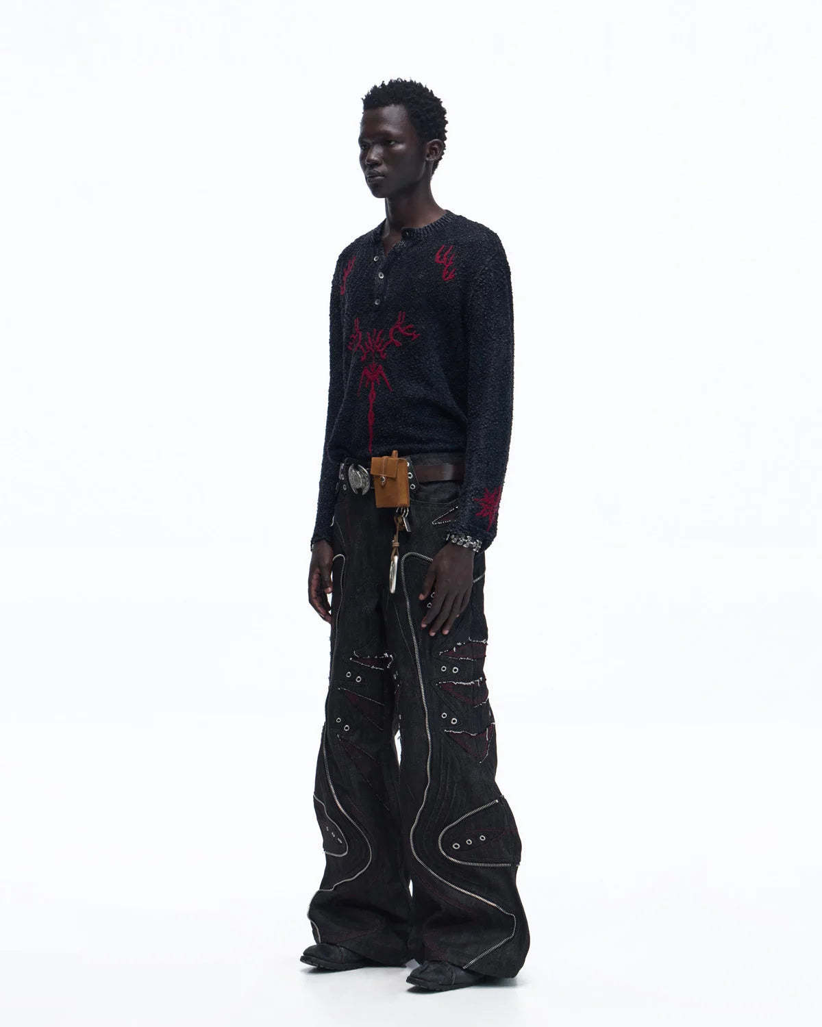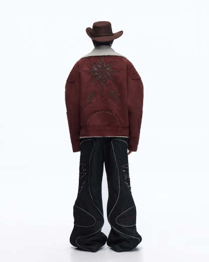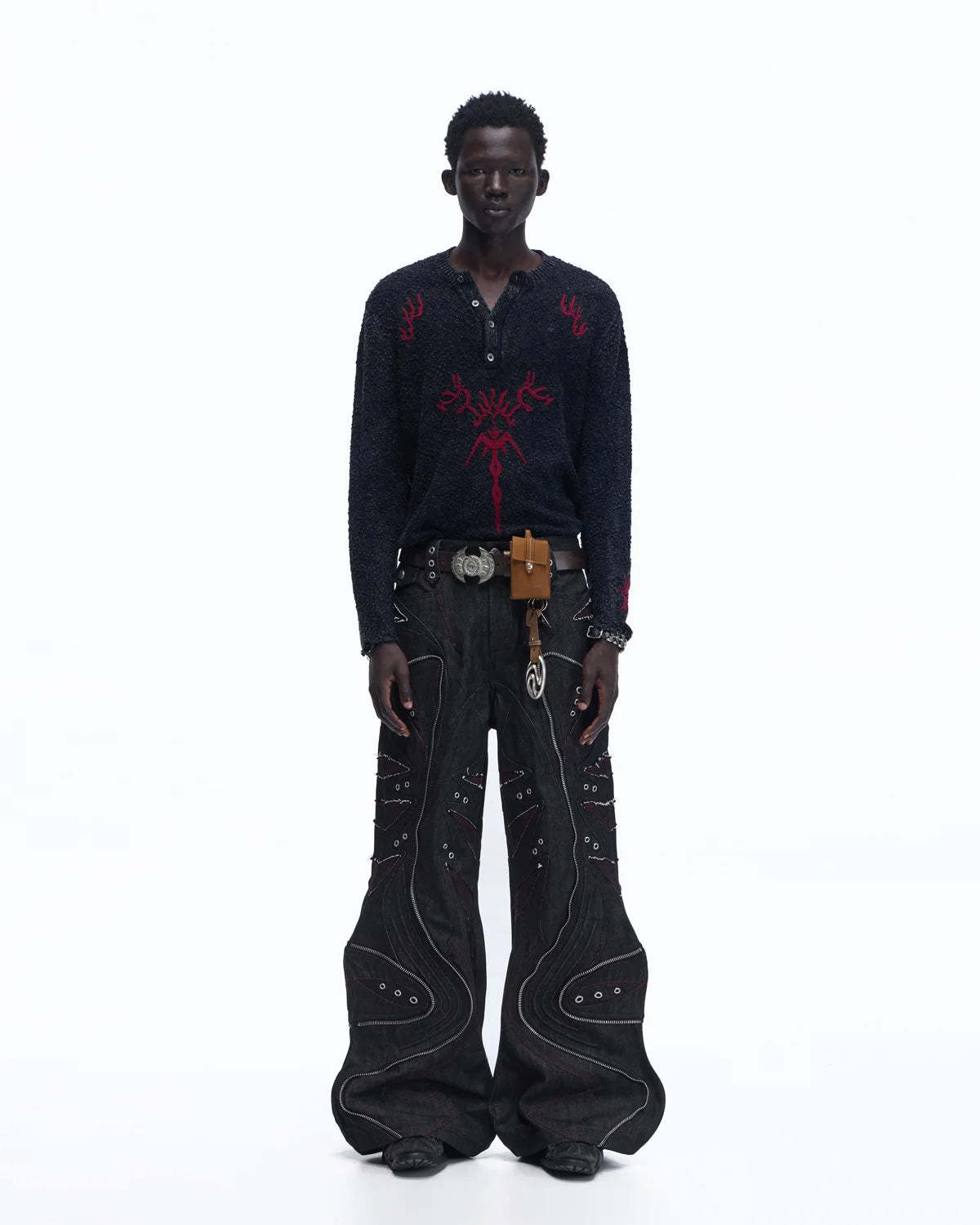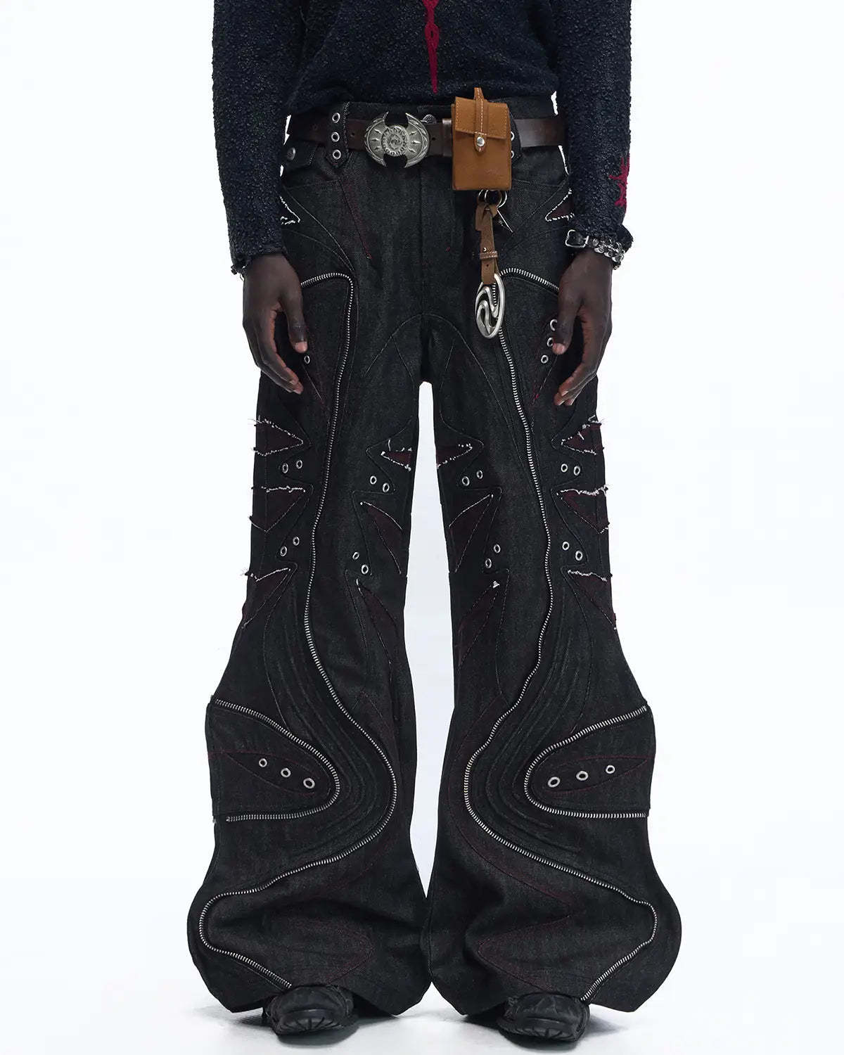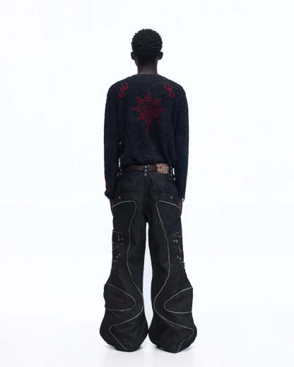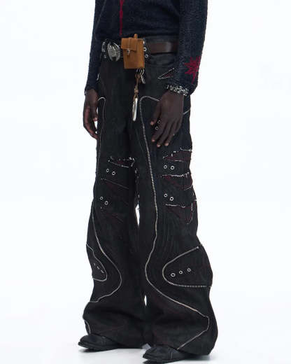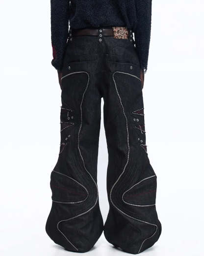 Personsoul Baggy Denim Jeans with Red Contrast Stitch