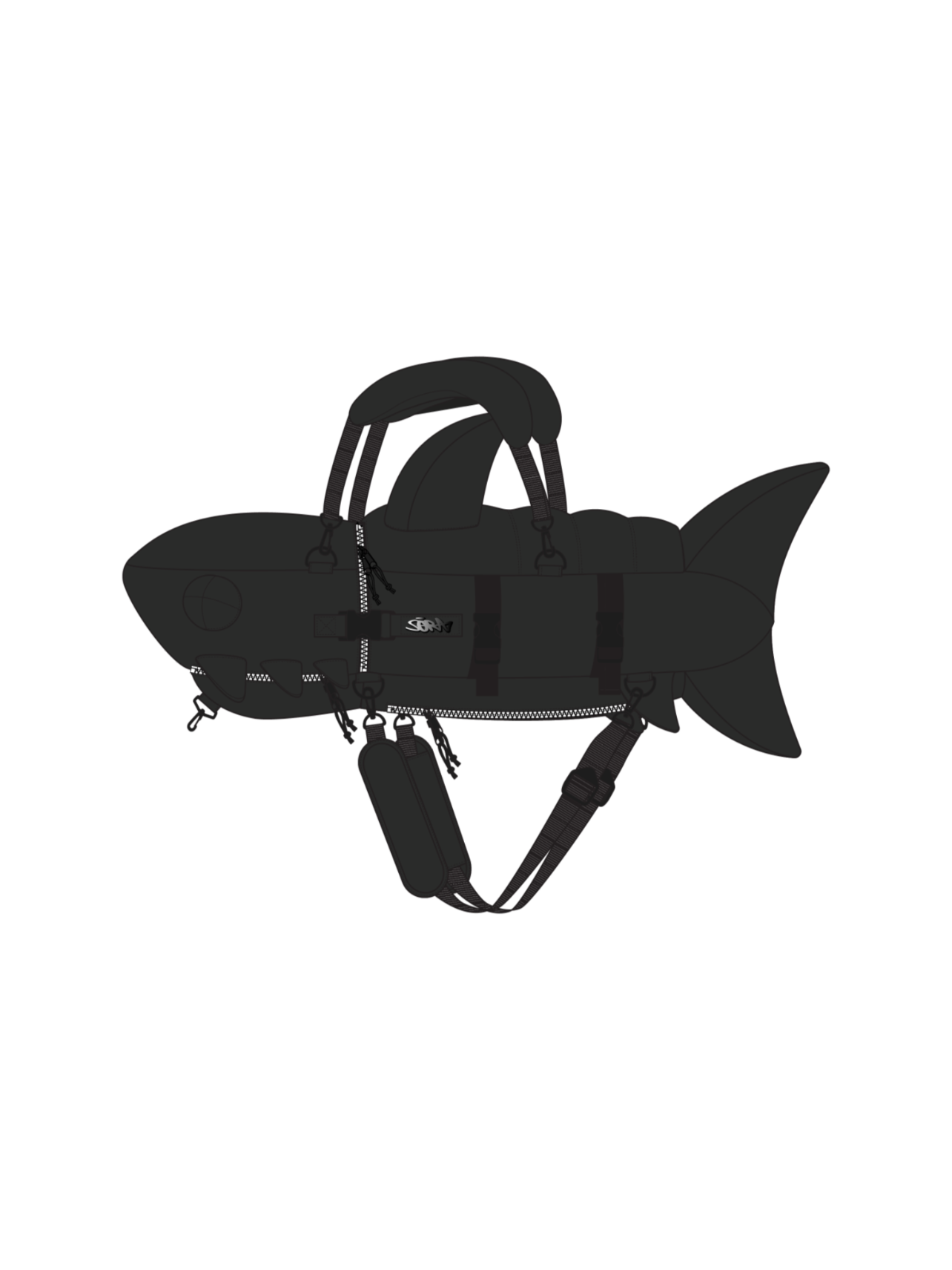 You can wear it in two ways: as a backpack or a regular bag with detachable straps. It has one big pocket that takes up the entire space inside the shark, and a small pocket on the bottom where you can store the removed strap set or small belongings like a phone.