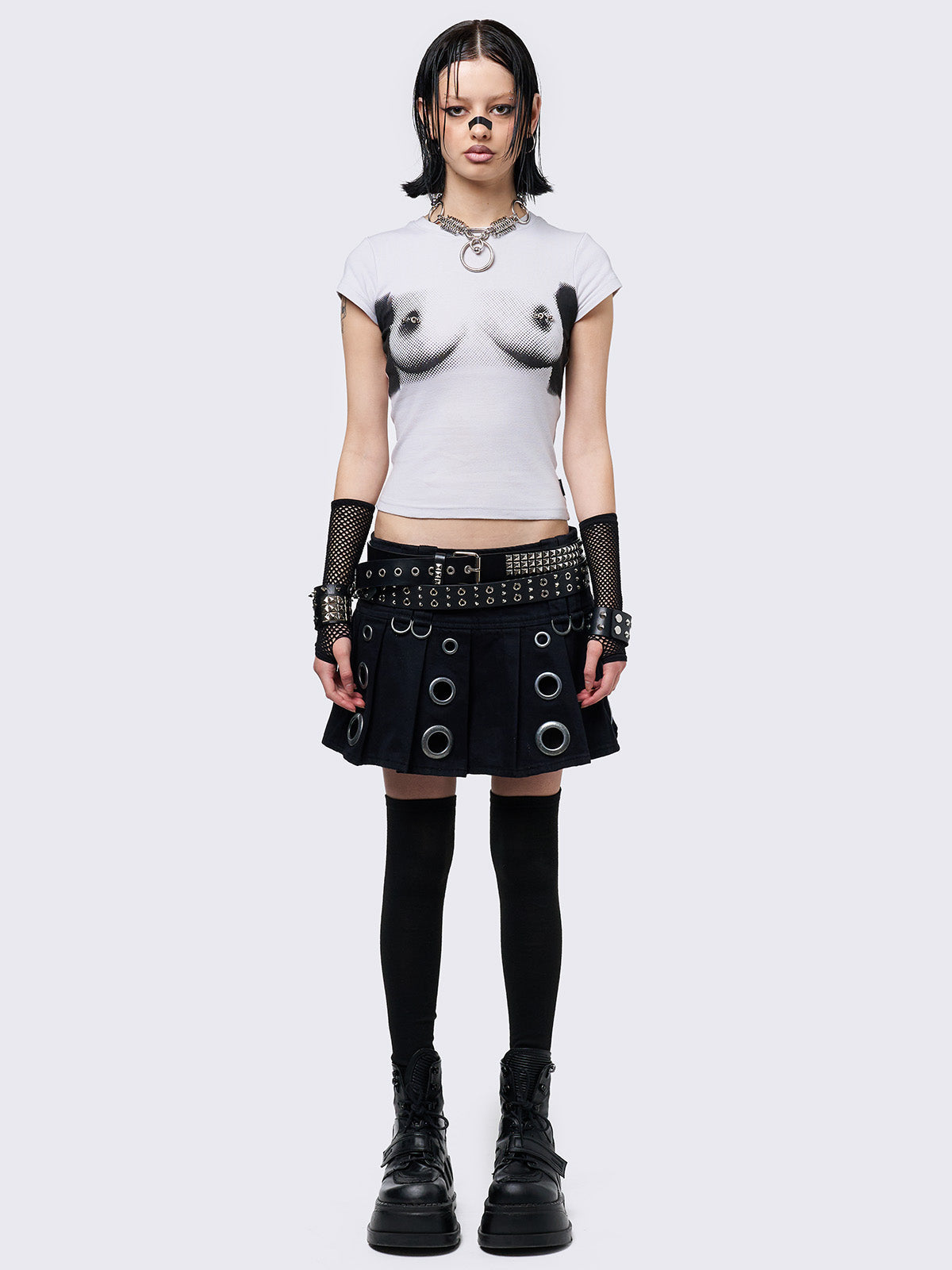 • Boobs print with nipple piercing details