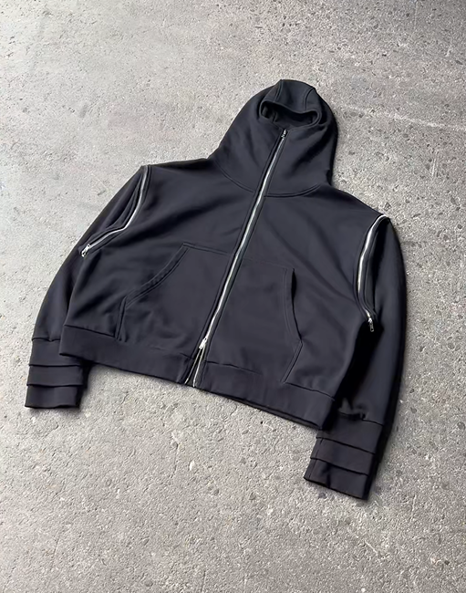 Black Interchargeable Zip Up Hoodie