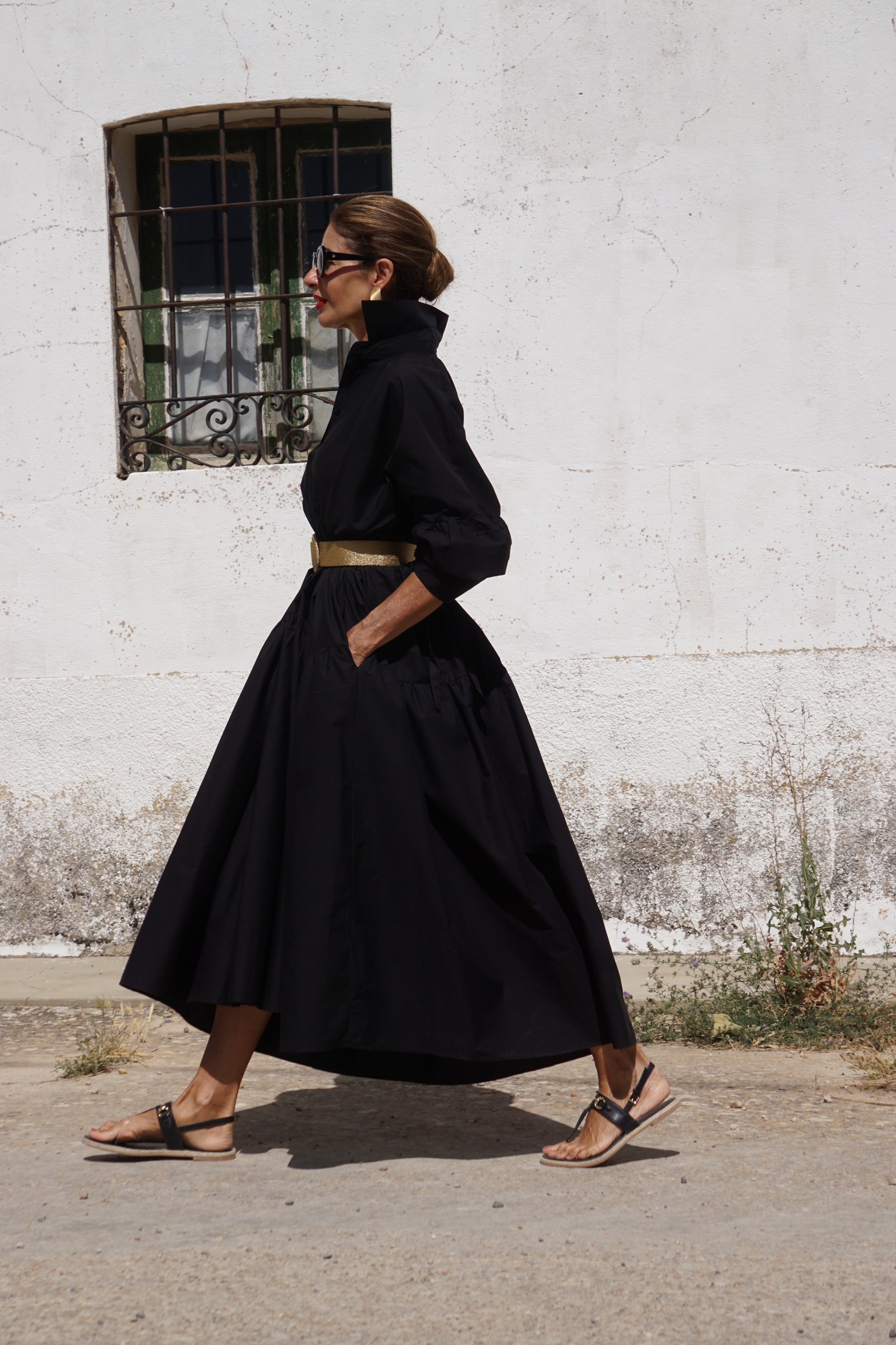 The Charlotte Black Dress is a stylish and comfortable one size fits all dress from MARIELLE STOKKELAAR. Made from 100% Egyptian cotton, it is suitable till sizes 44 German, 16 UK, and 12 USA. The length of the dress is 135 cm / 53.1 inch, but it can be shortened if needed. Dress Charlotte Black has side pockets.
