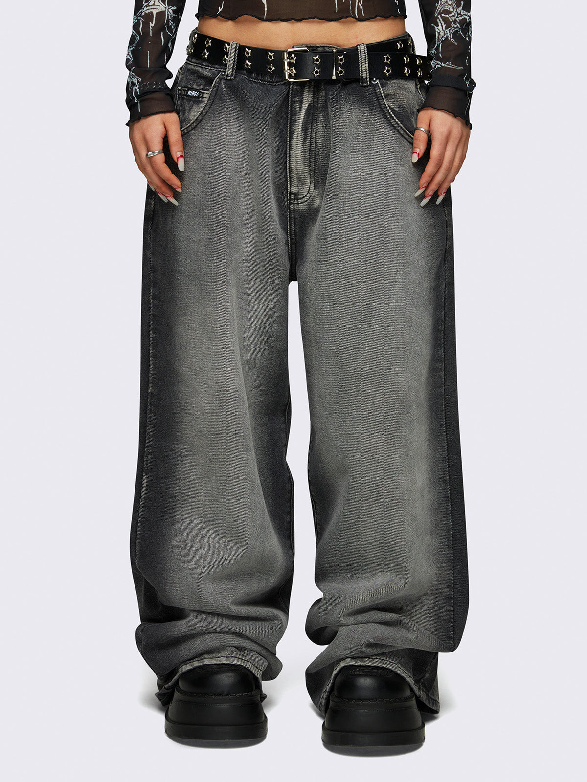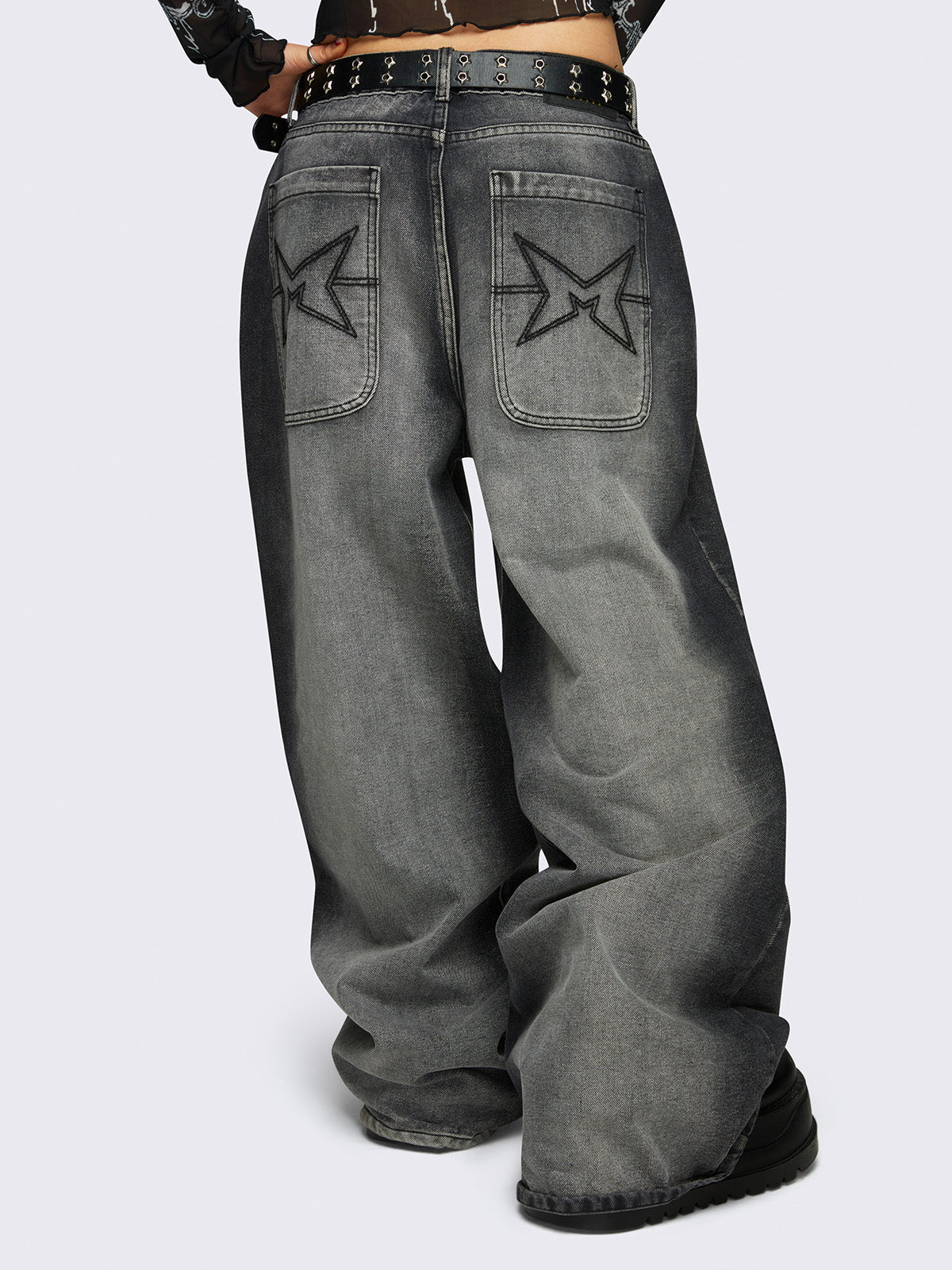 • Black washed baggy jeans