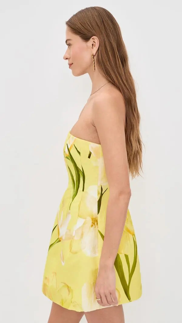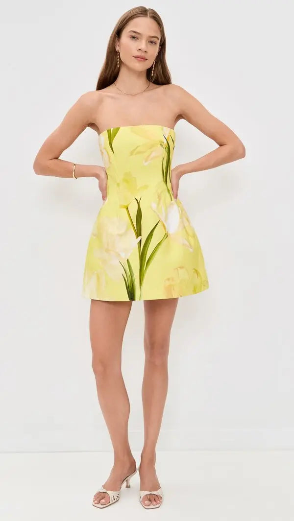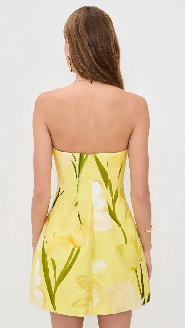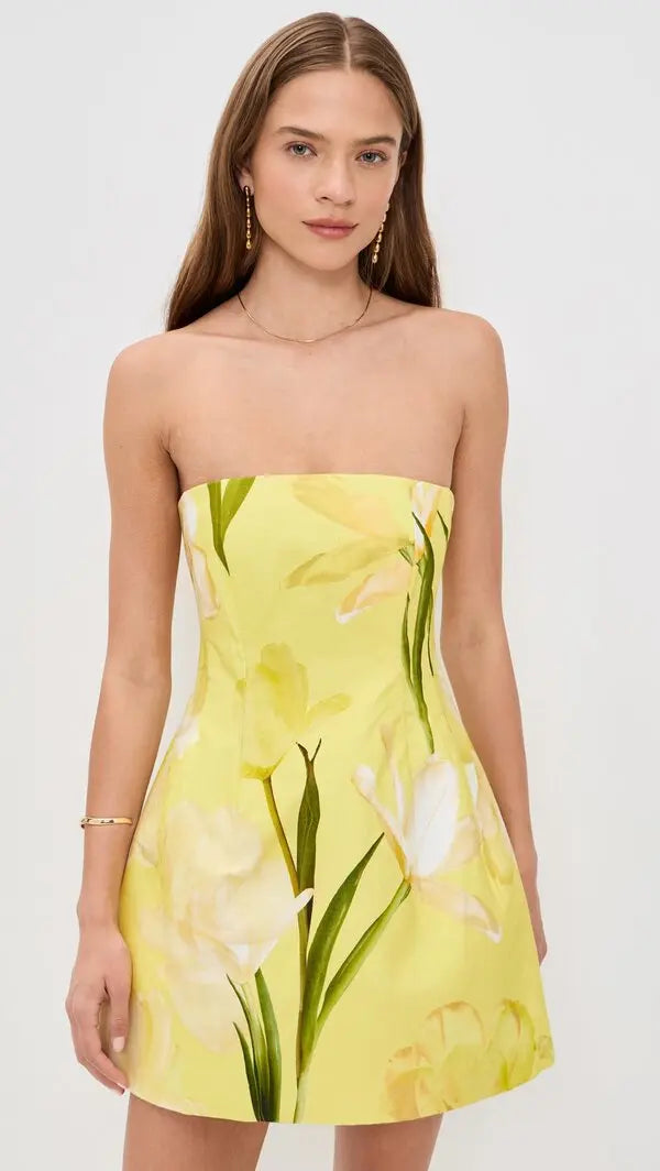 A soft butter yellow scattered with delicate tulip prints, fitted at the waist and flaring into a breezy A-line skirt — this is the dress for slow mornings, spontaneous plans, and every beautiful thing in between. French countryside charm, ready to go.