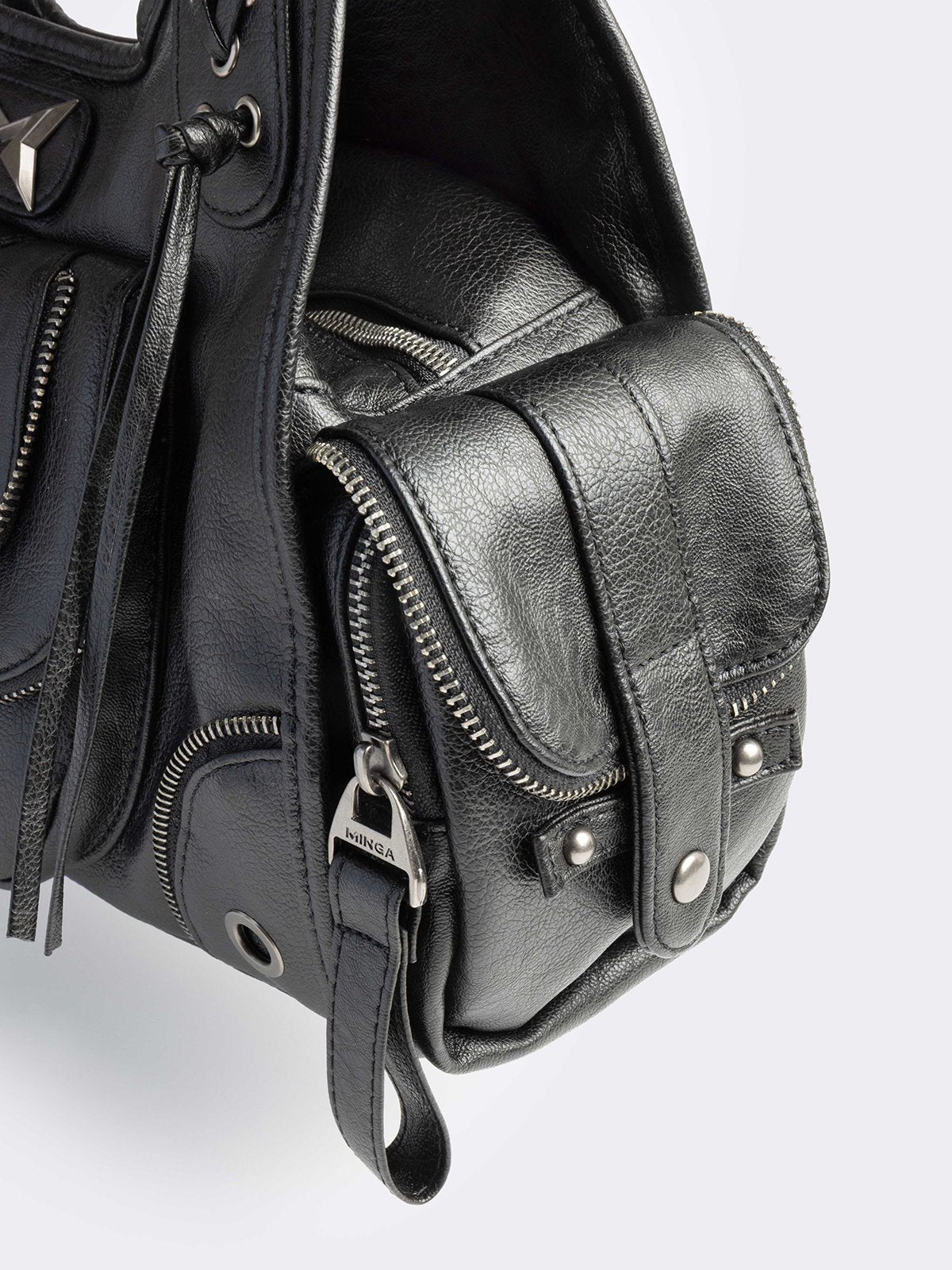 Black faux leather shoulder bag