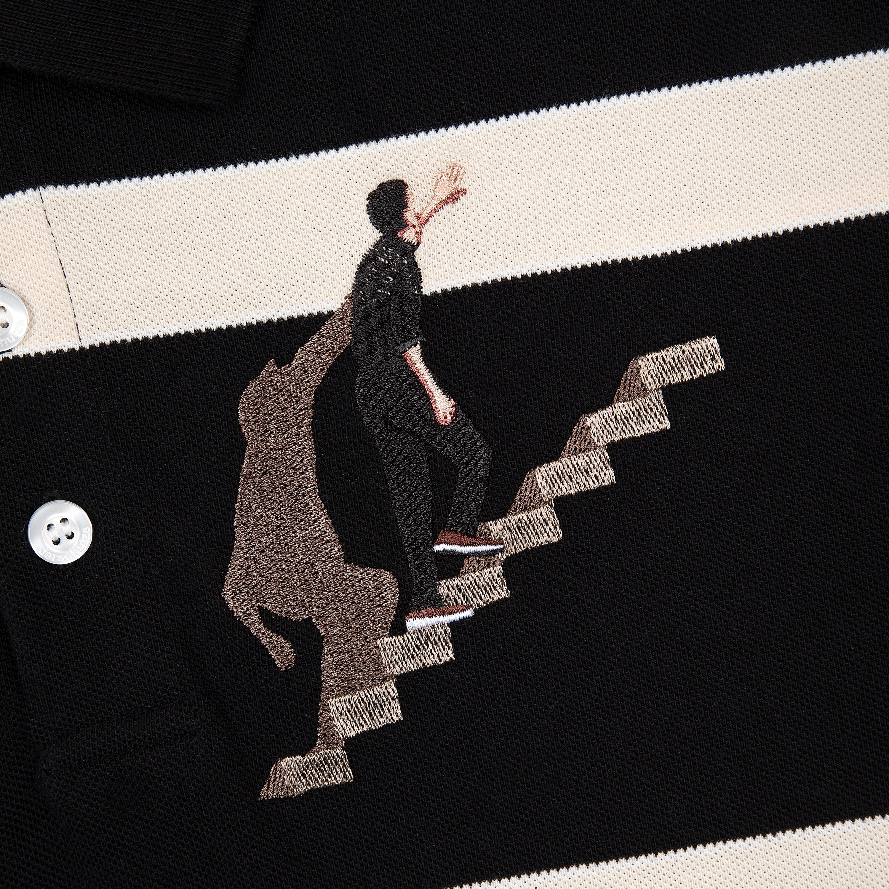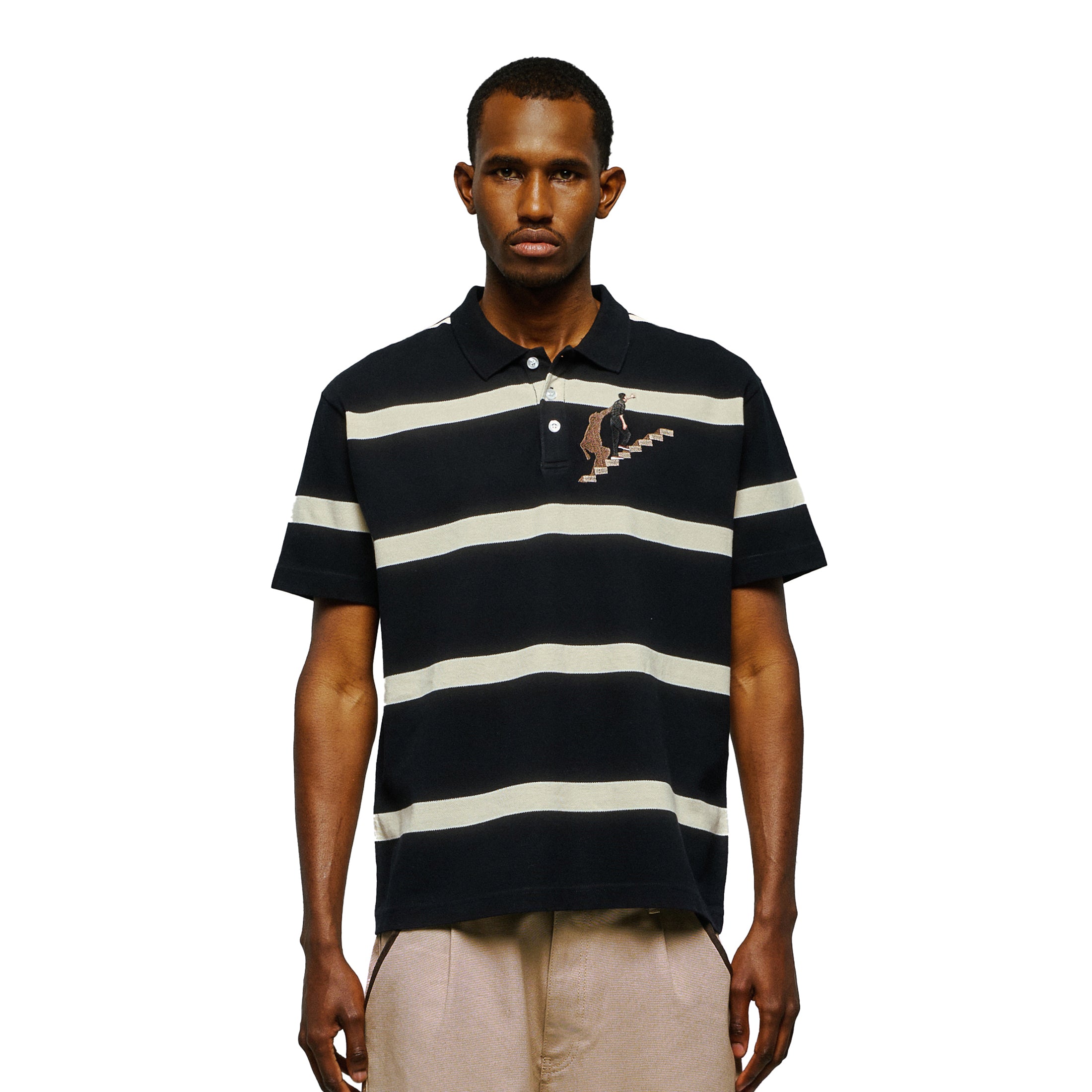 305gsm striped cotton yarn / 100% cotton / embroidery on front / custom buttons / fits true to size