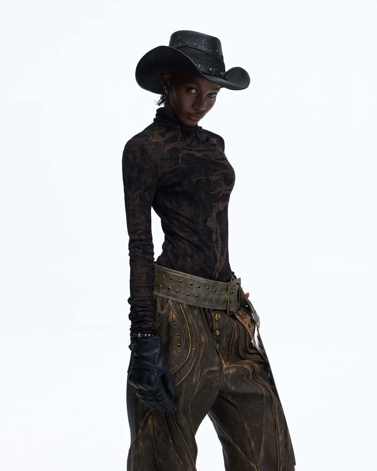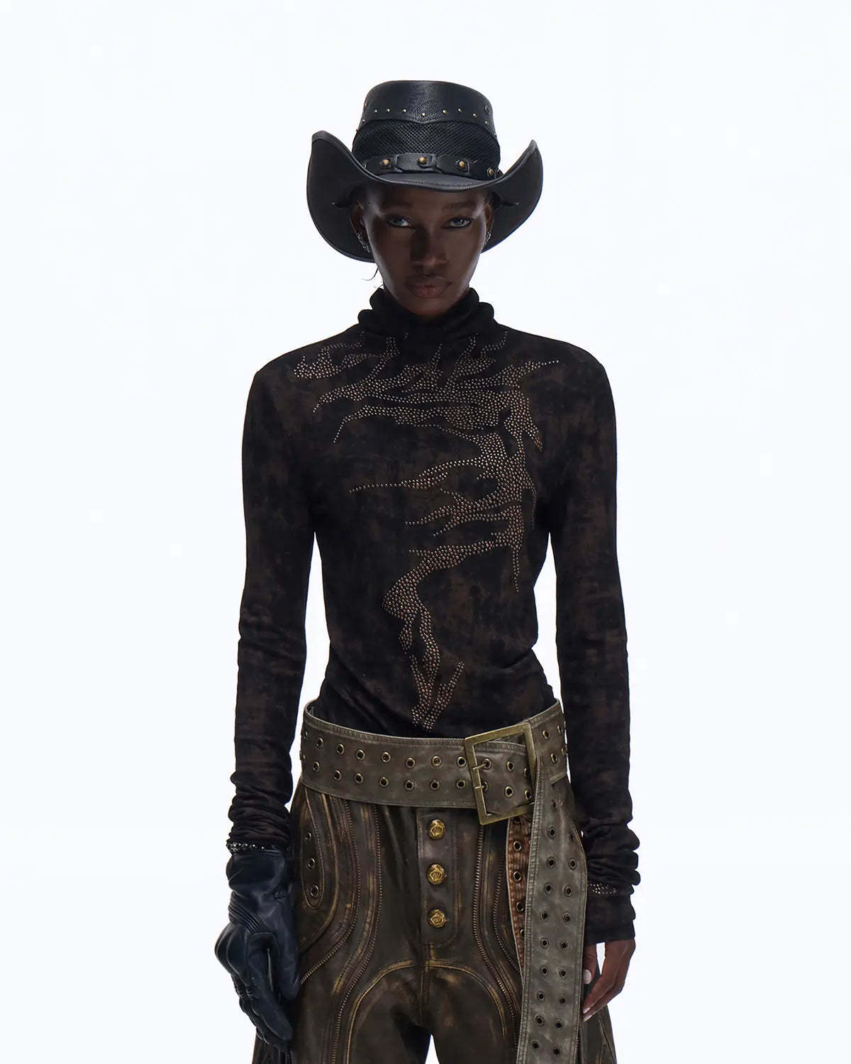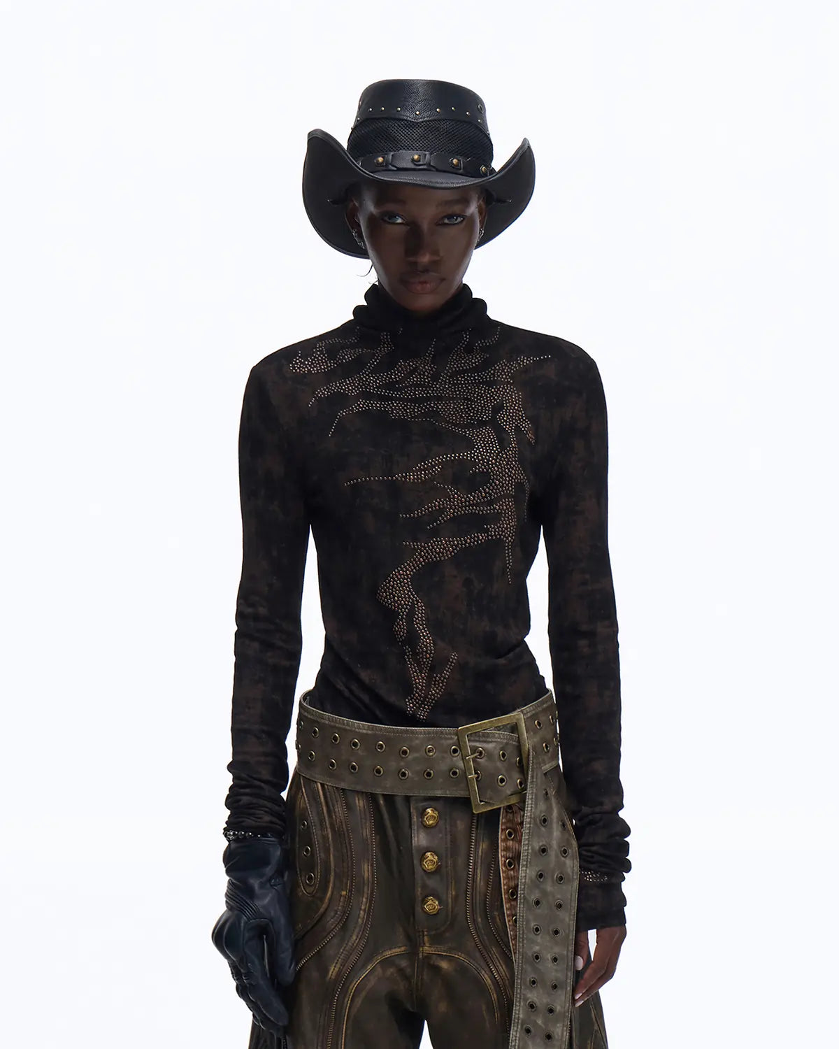 Personsoul Metallic Crystal-Lightning Long Sleeve Tee In Black