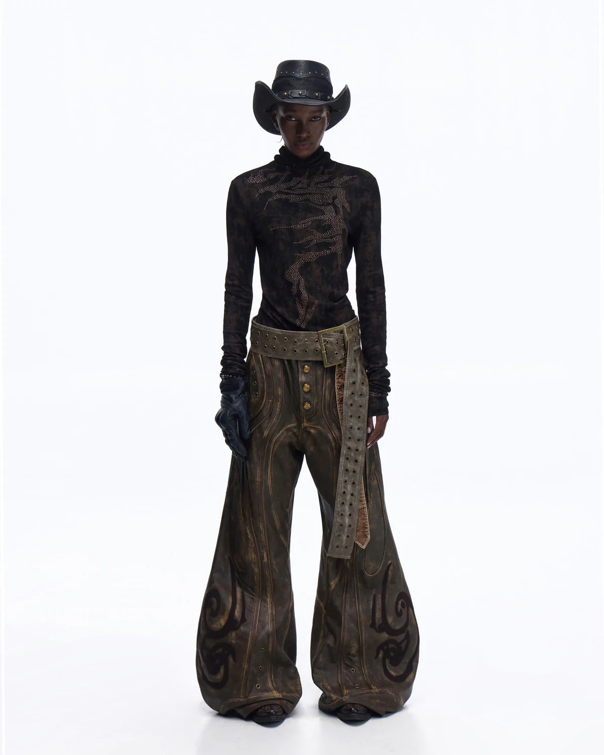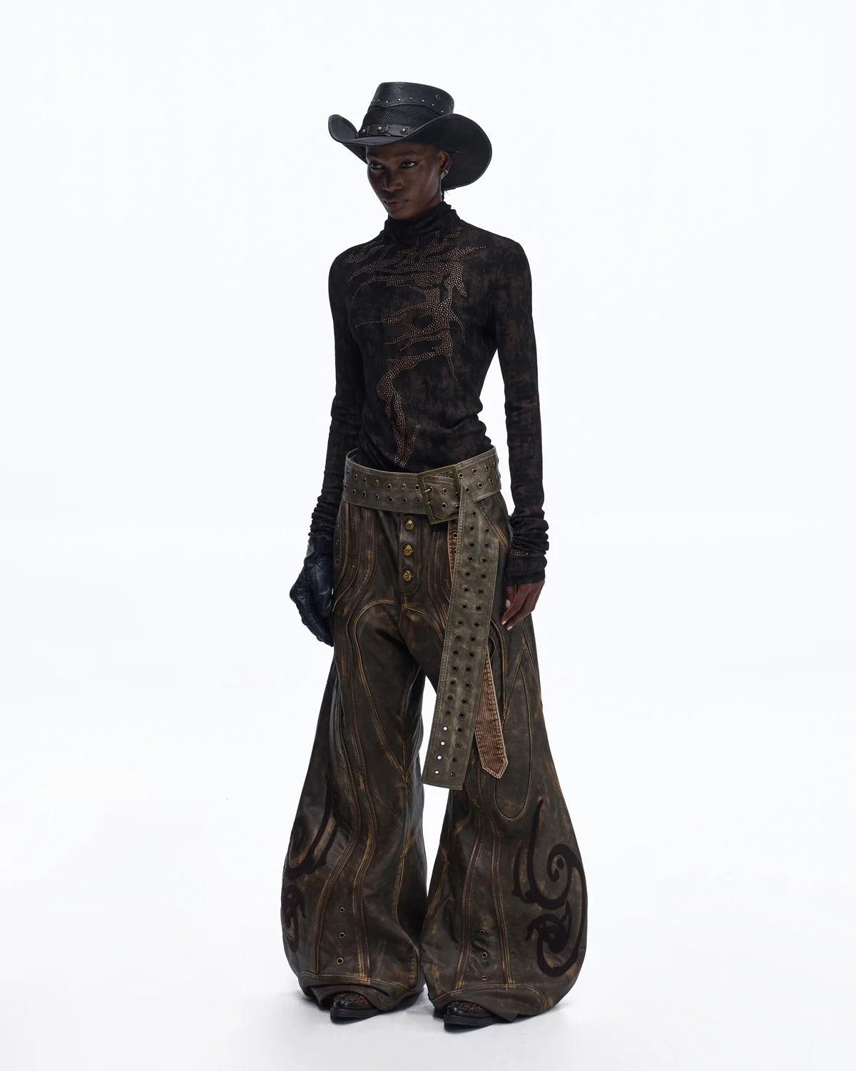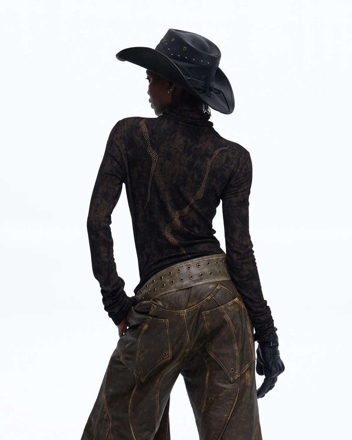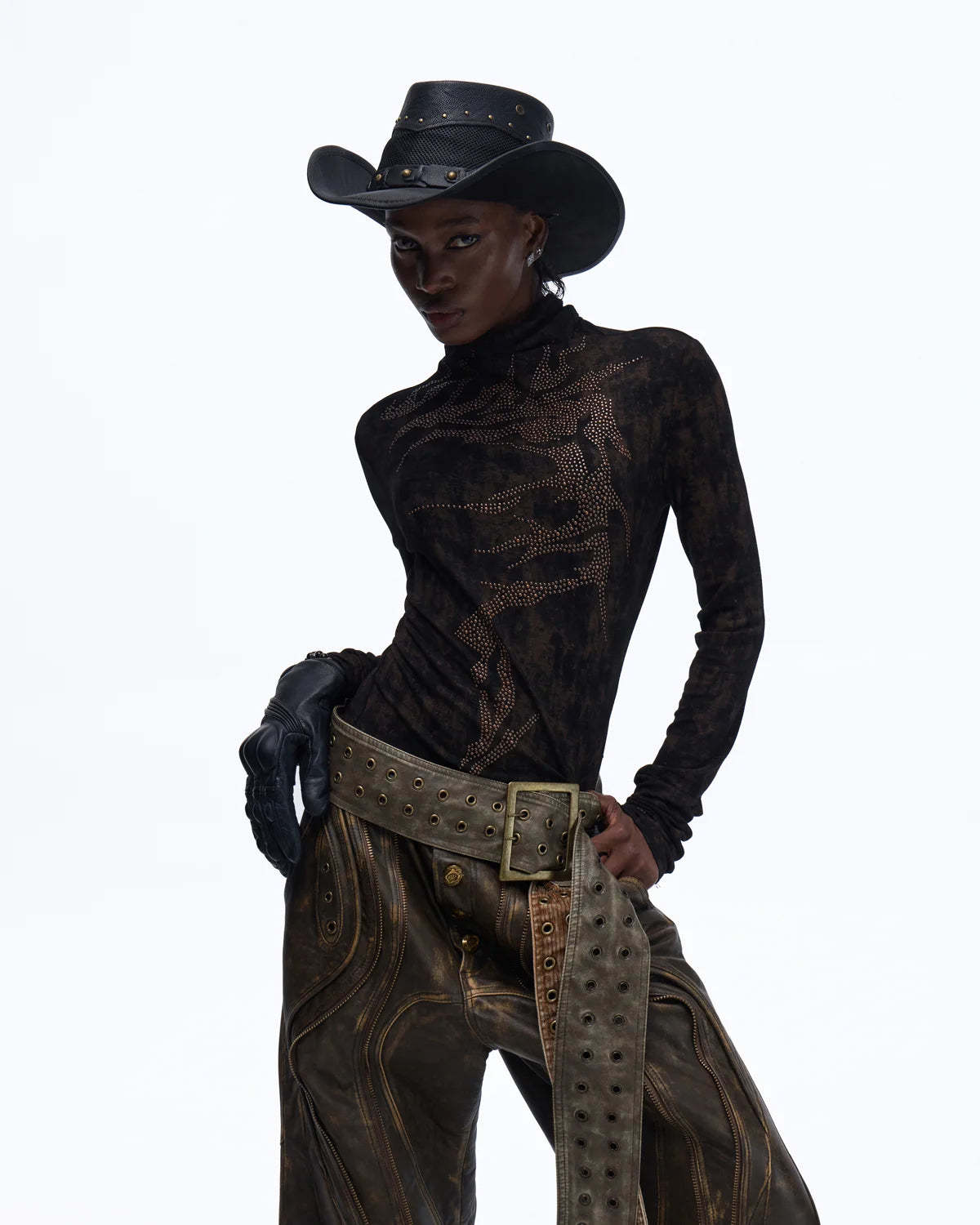 Personsoul Metallic Crystal-Lightning Long Sleeve Tee In Black