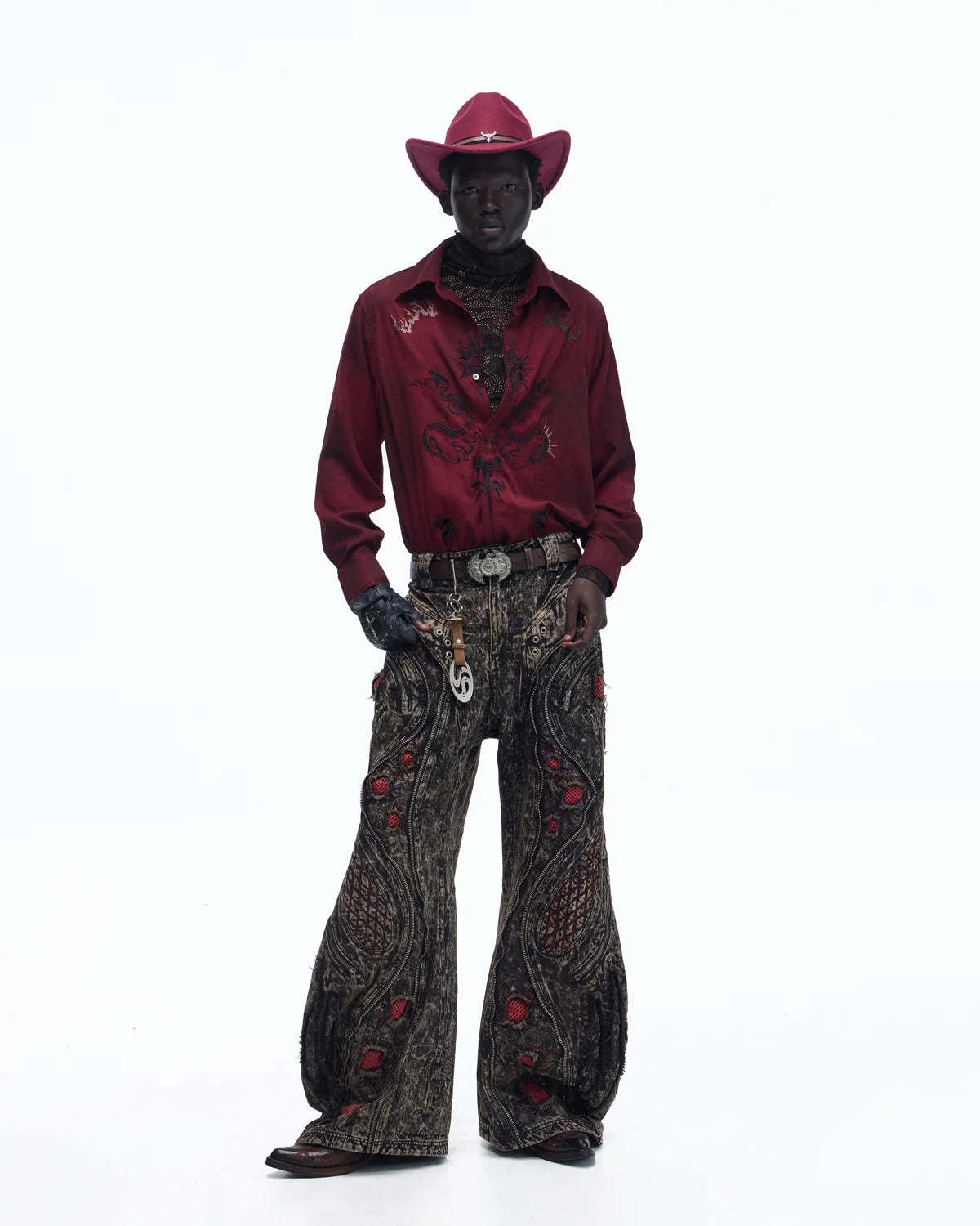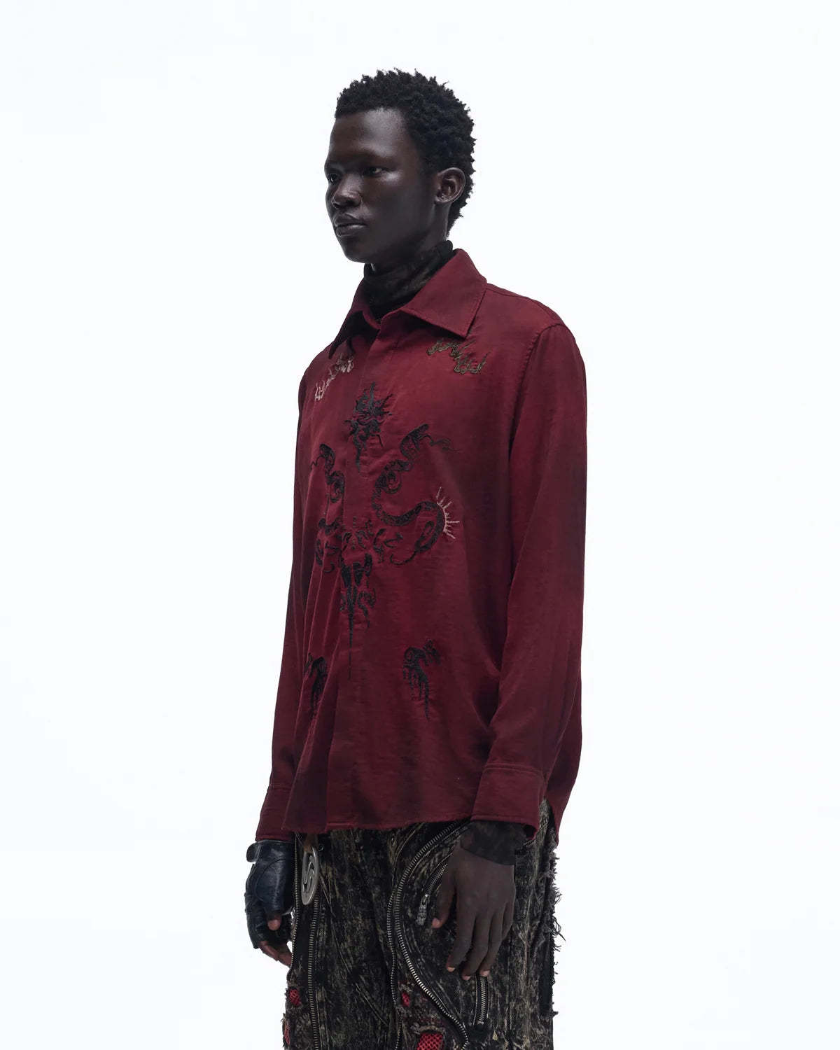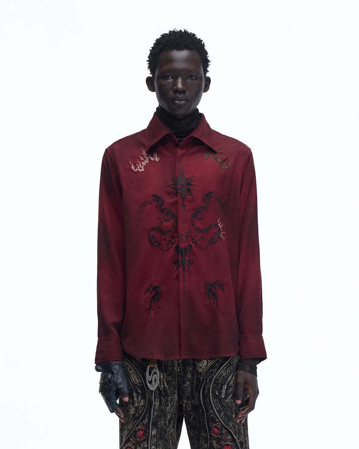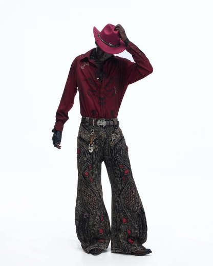 Personsoul Vintage Wine Red Shirt with Totem Print