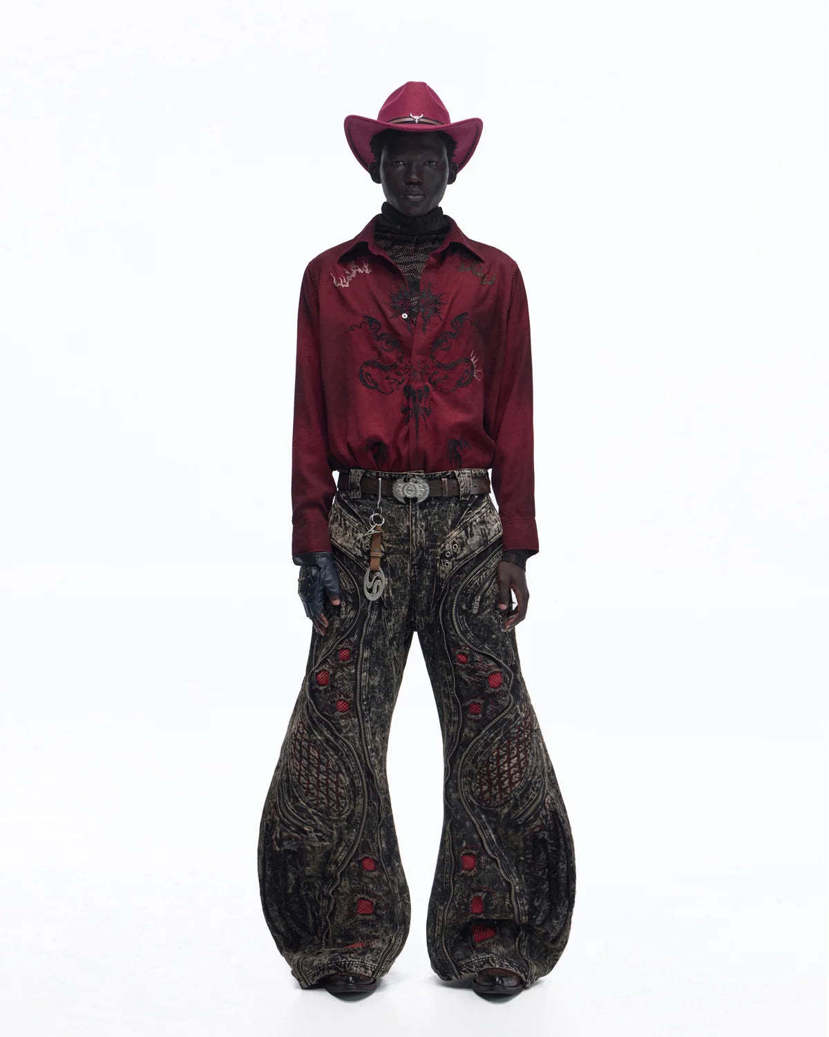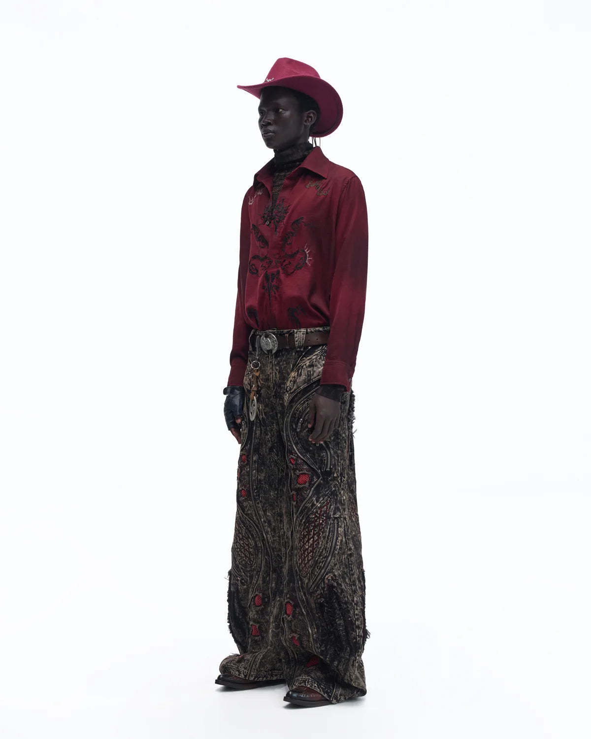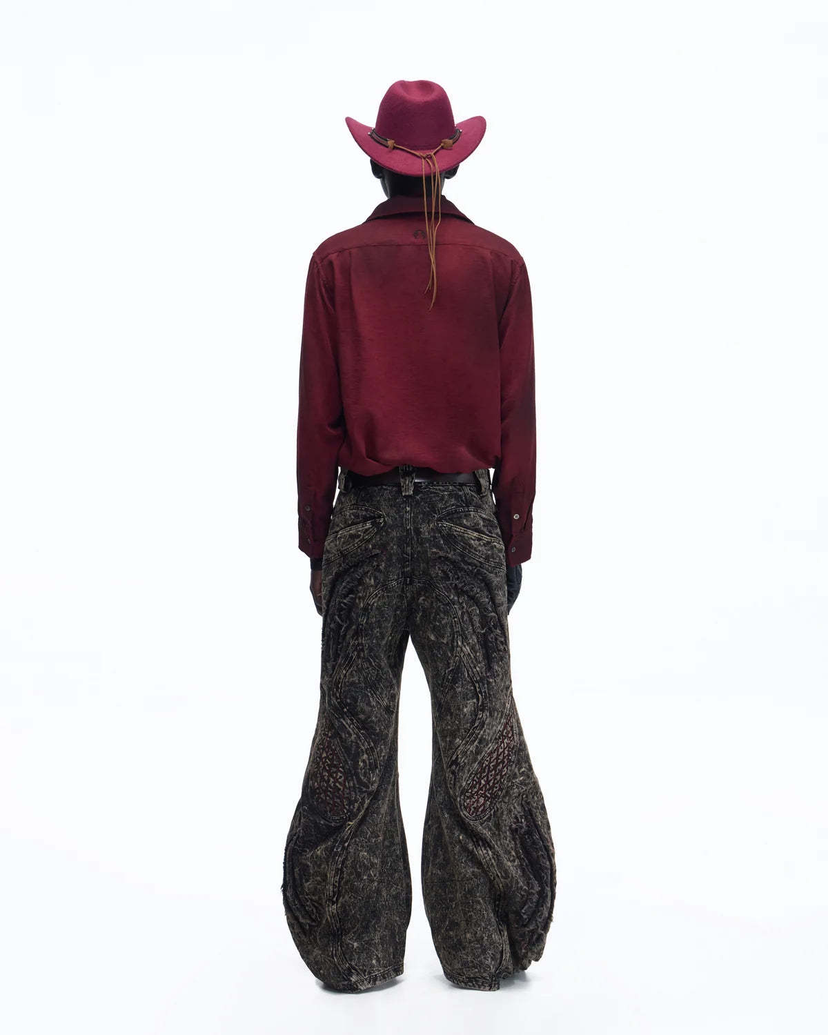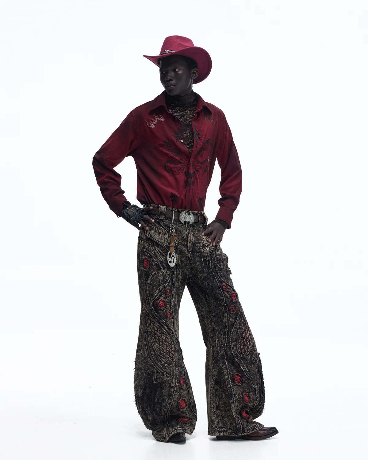 Personsoul Vintage Wine Red Shirt with Totem Print