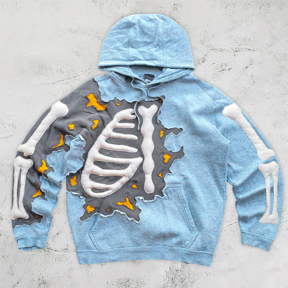 retro hip hop bone pattern hoodie