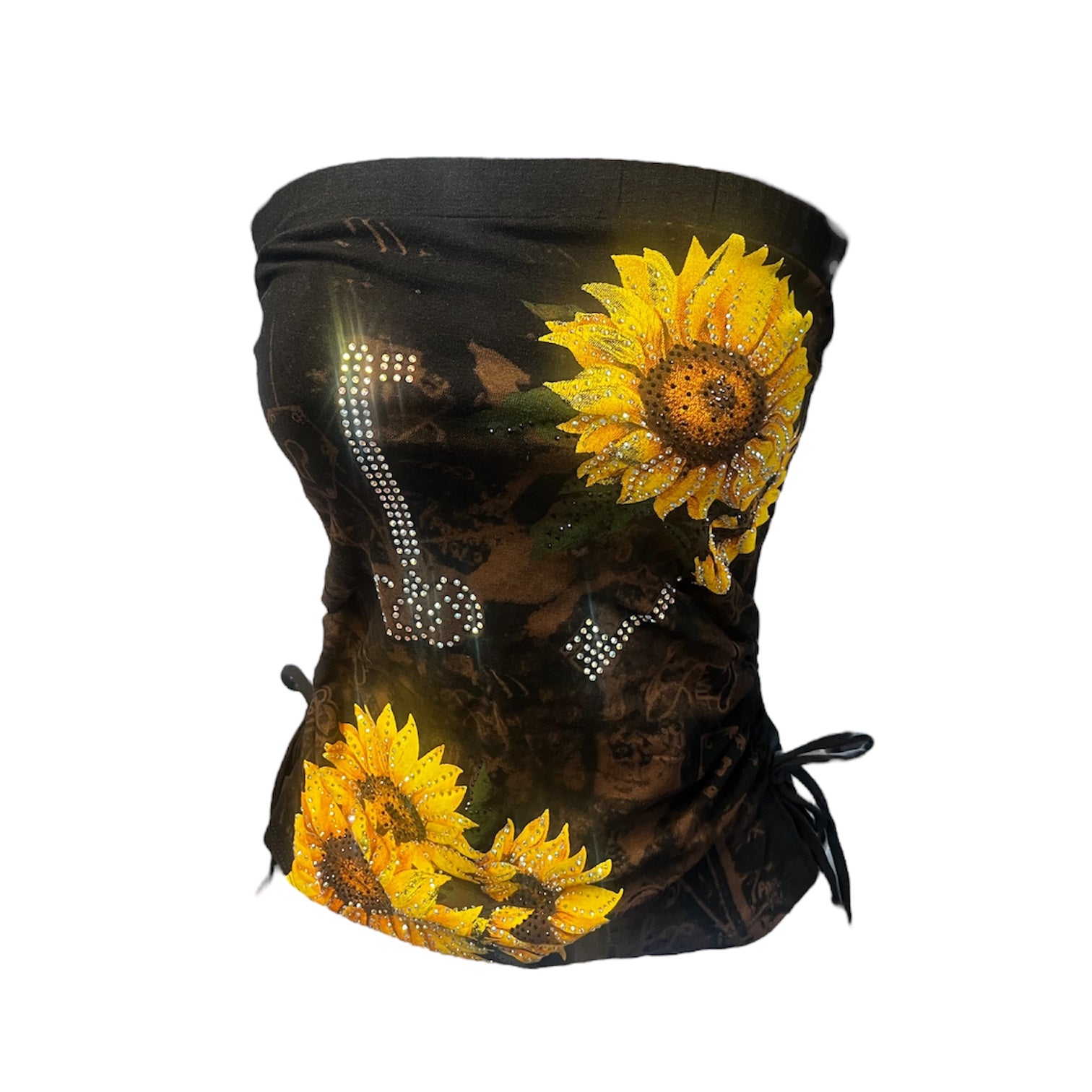 Sunflower Rhinestone Tube Top Black