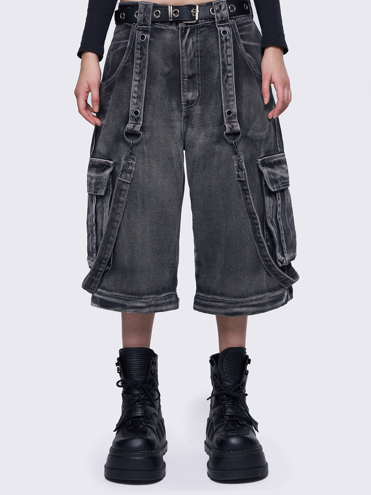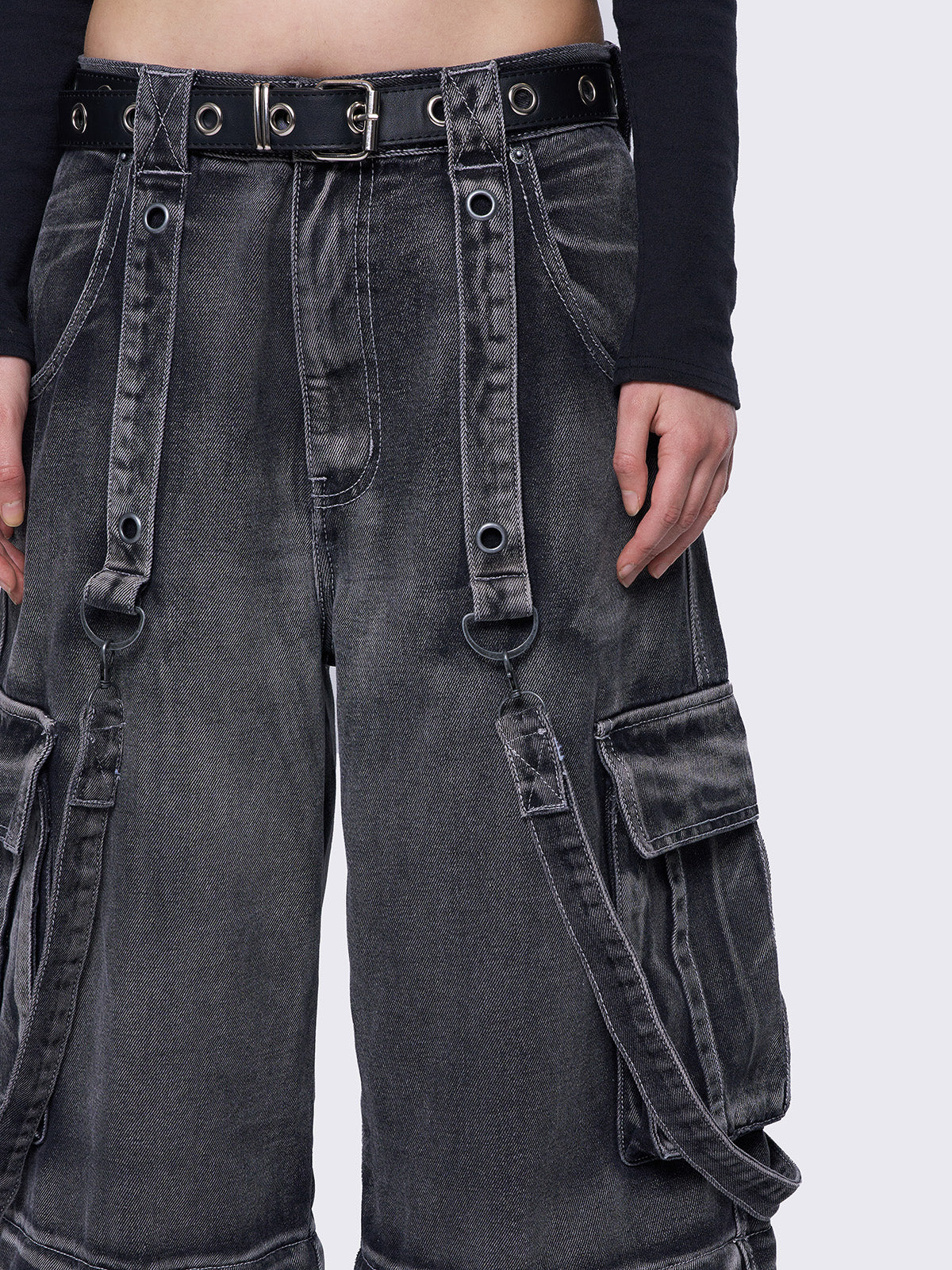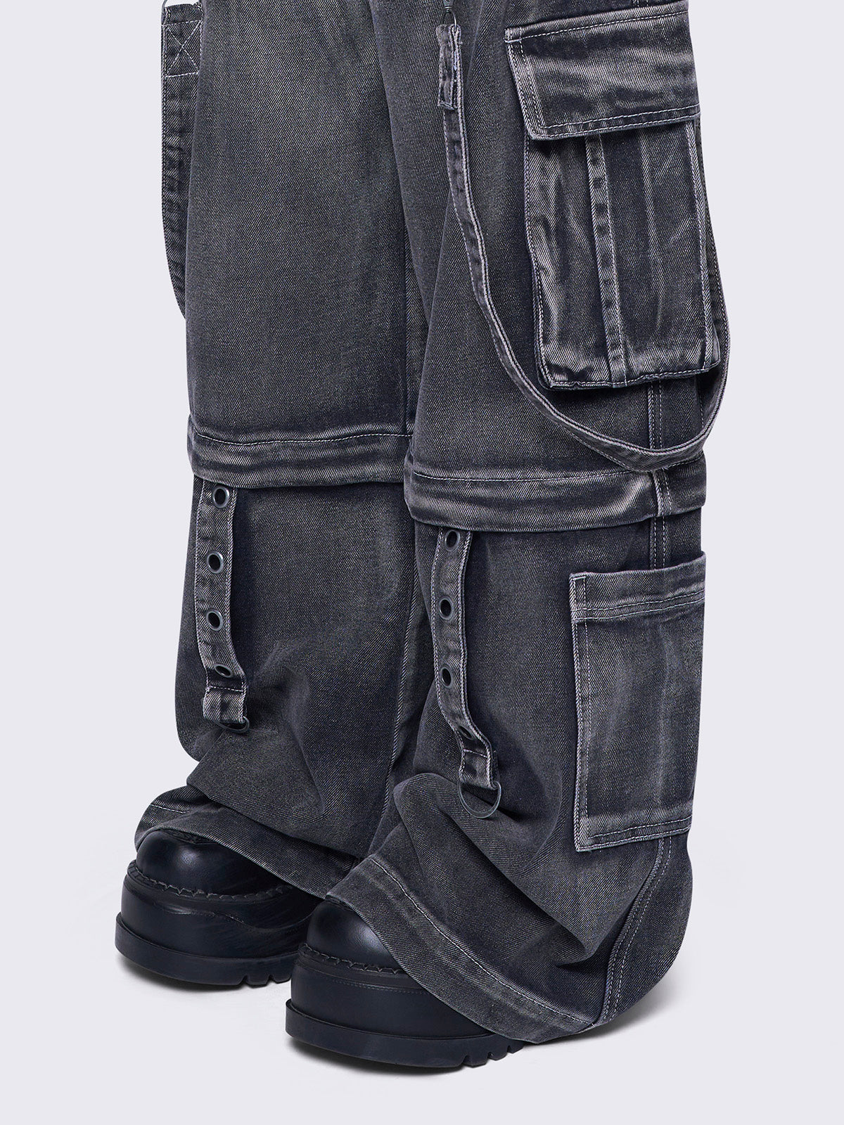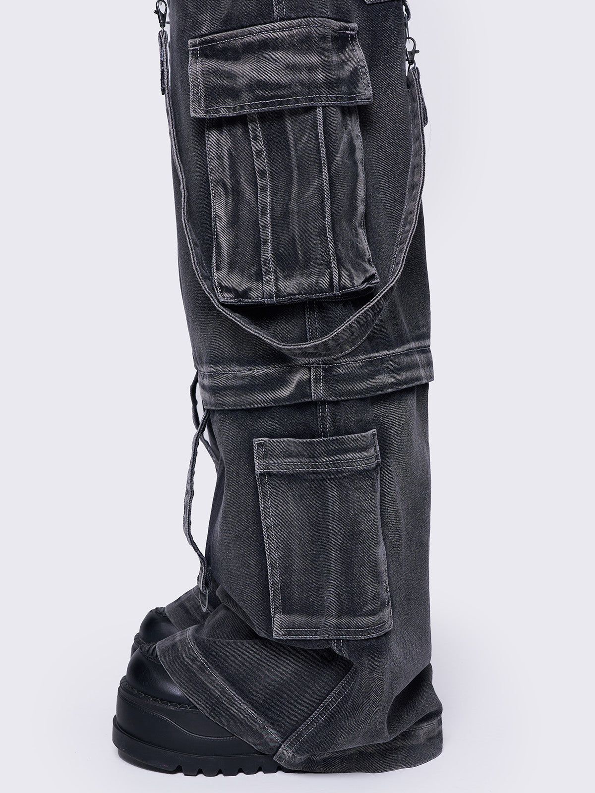 • Multi pocket cargo jeans in washed grey