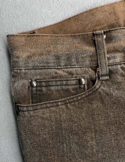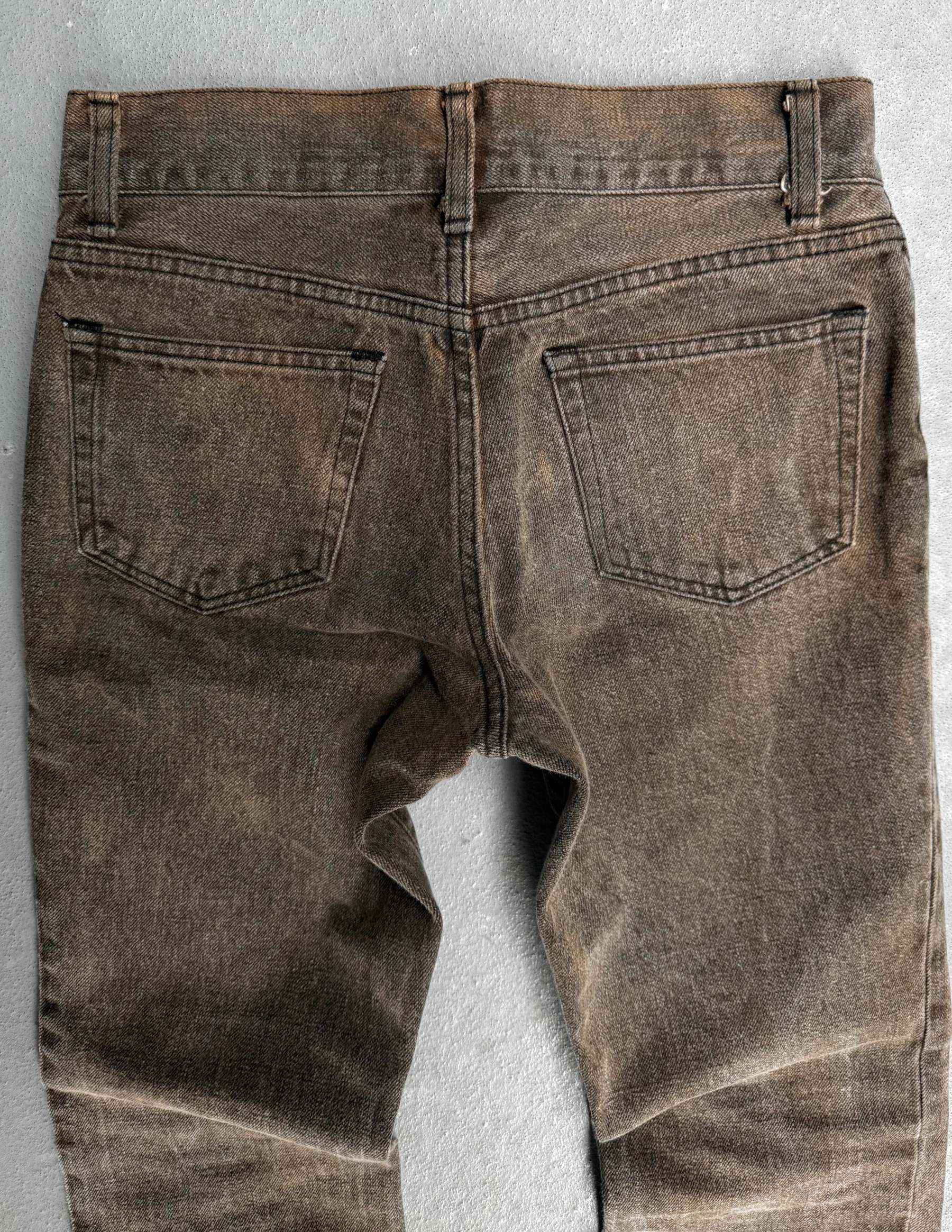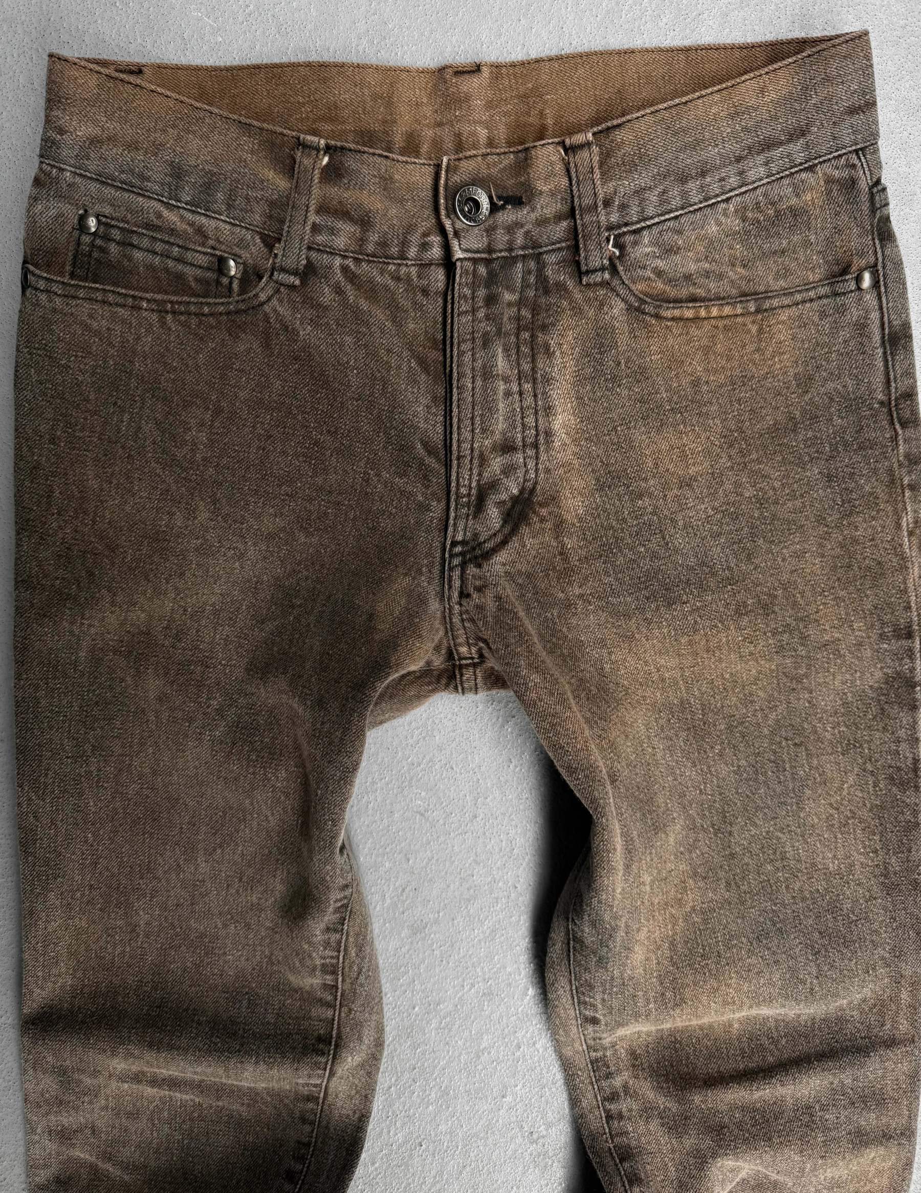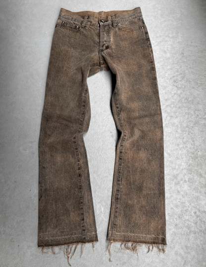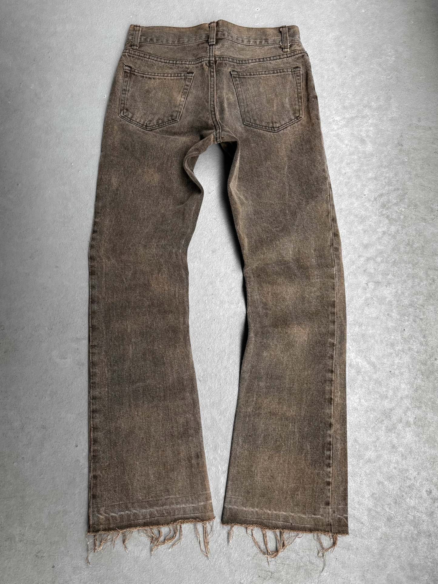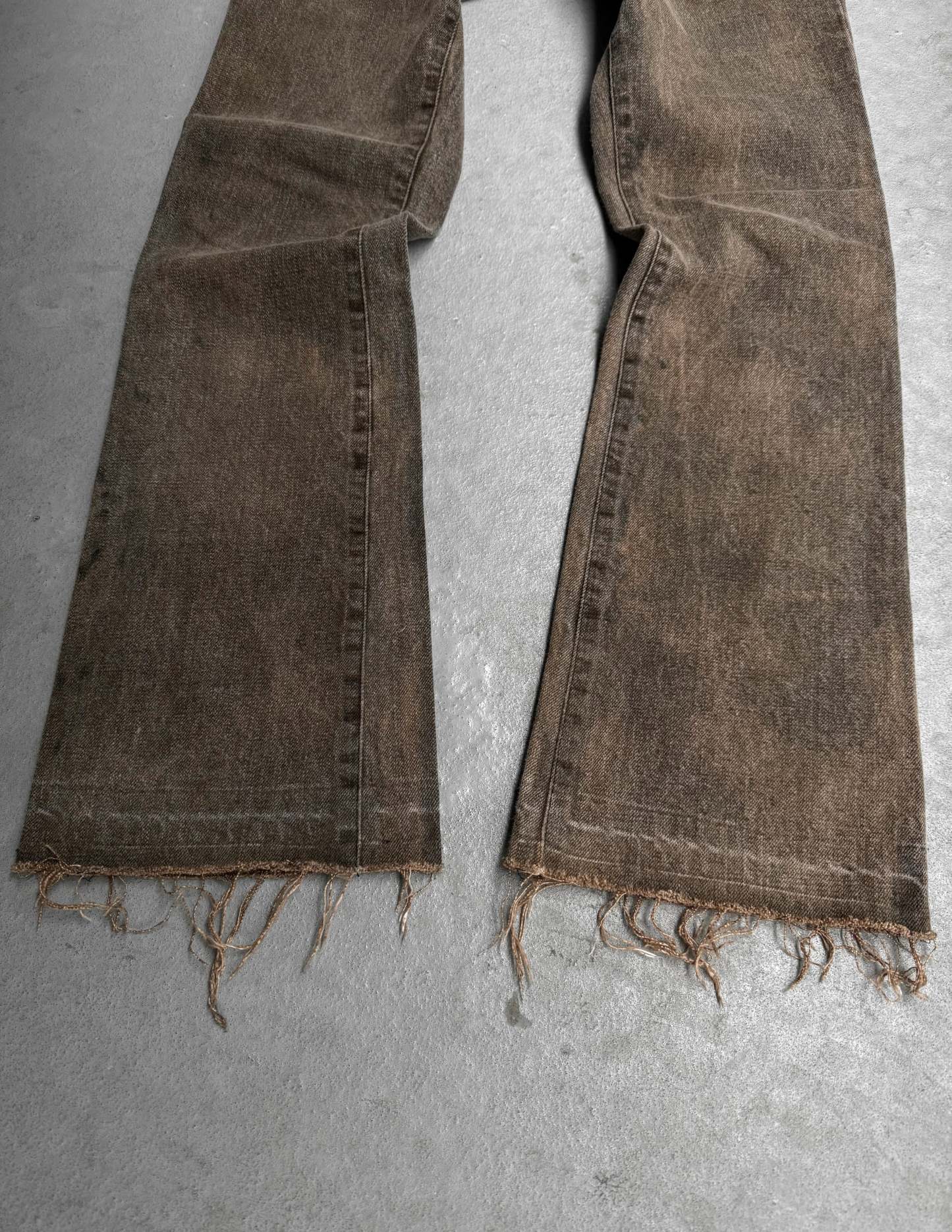 5351 Pour Les Hommes Early 00s Grey Brown Frayed Hem Flare Denim
