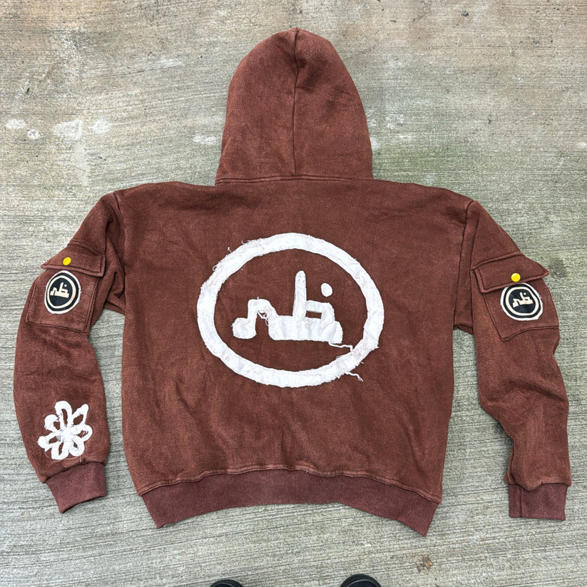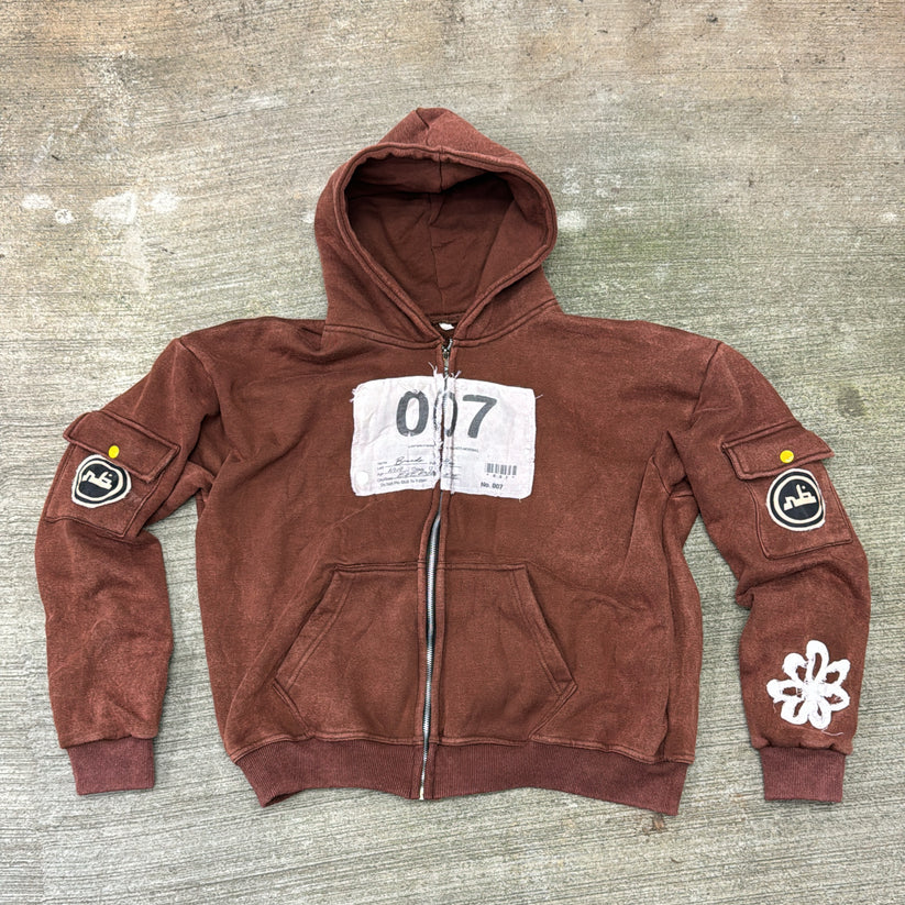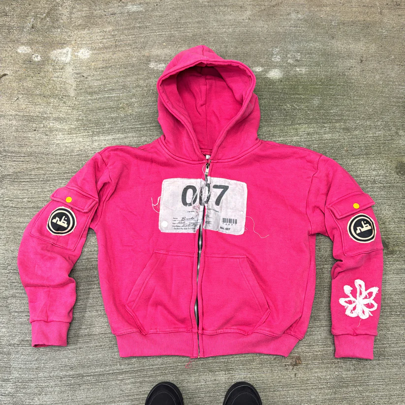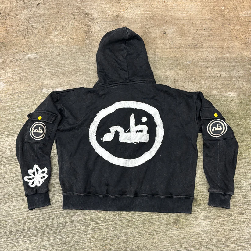 Fashionable Multi-Pocket Patched Zipper Hoodie