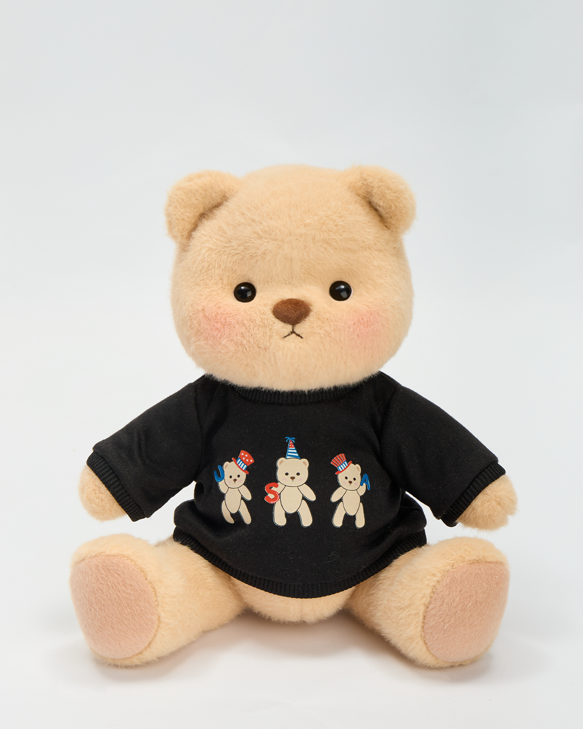 Getahug Black T-shirt with USA Print Bear | Handmade Jointed Stuffed Animal Gift