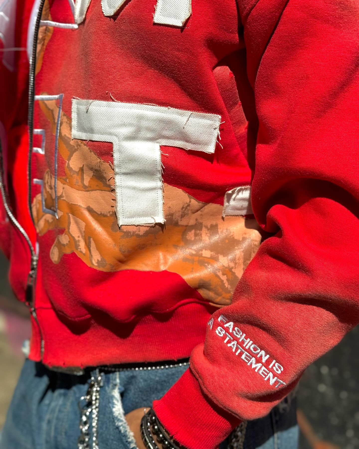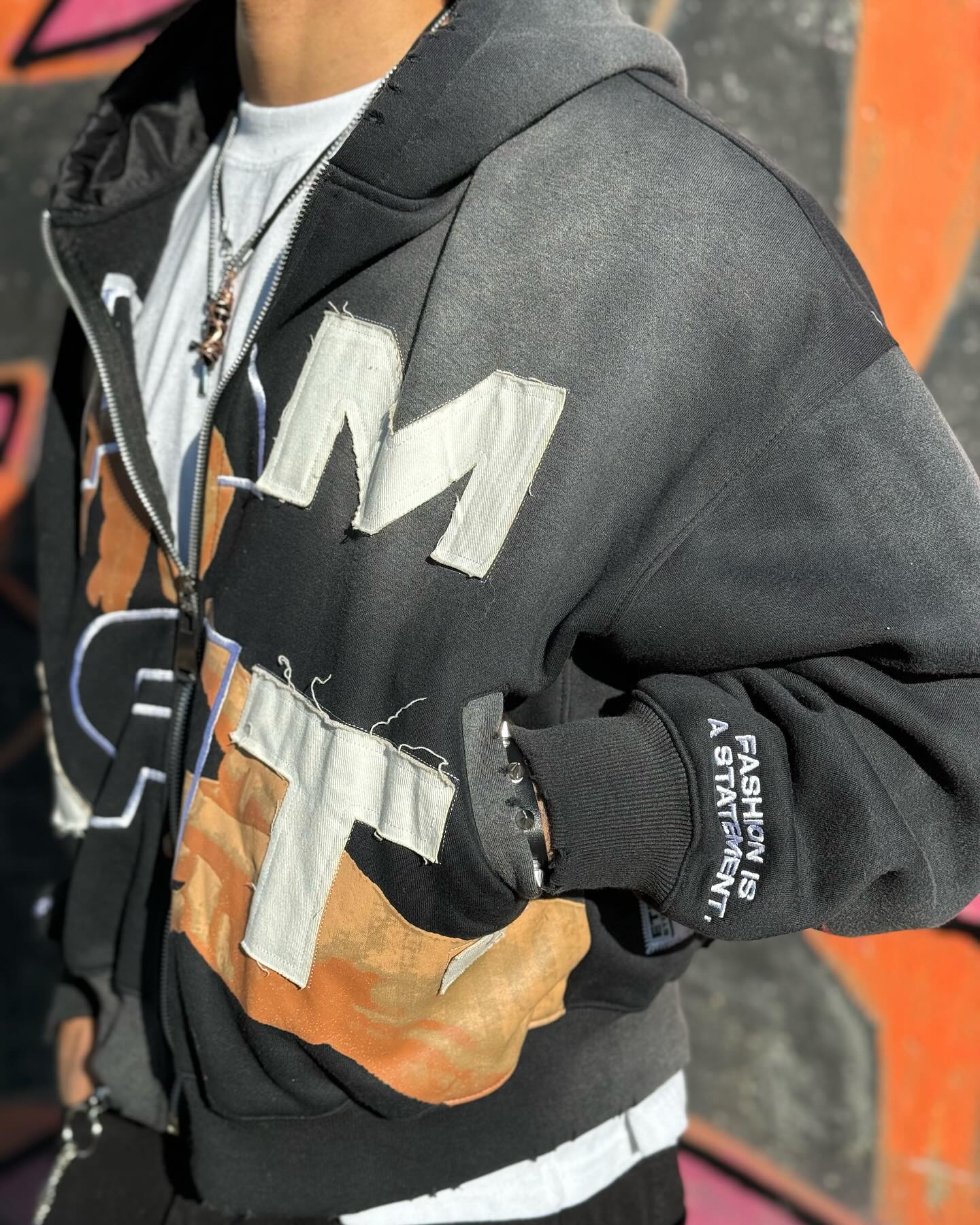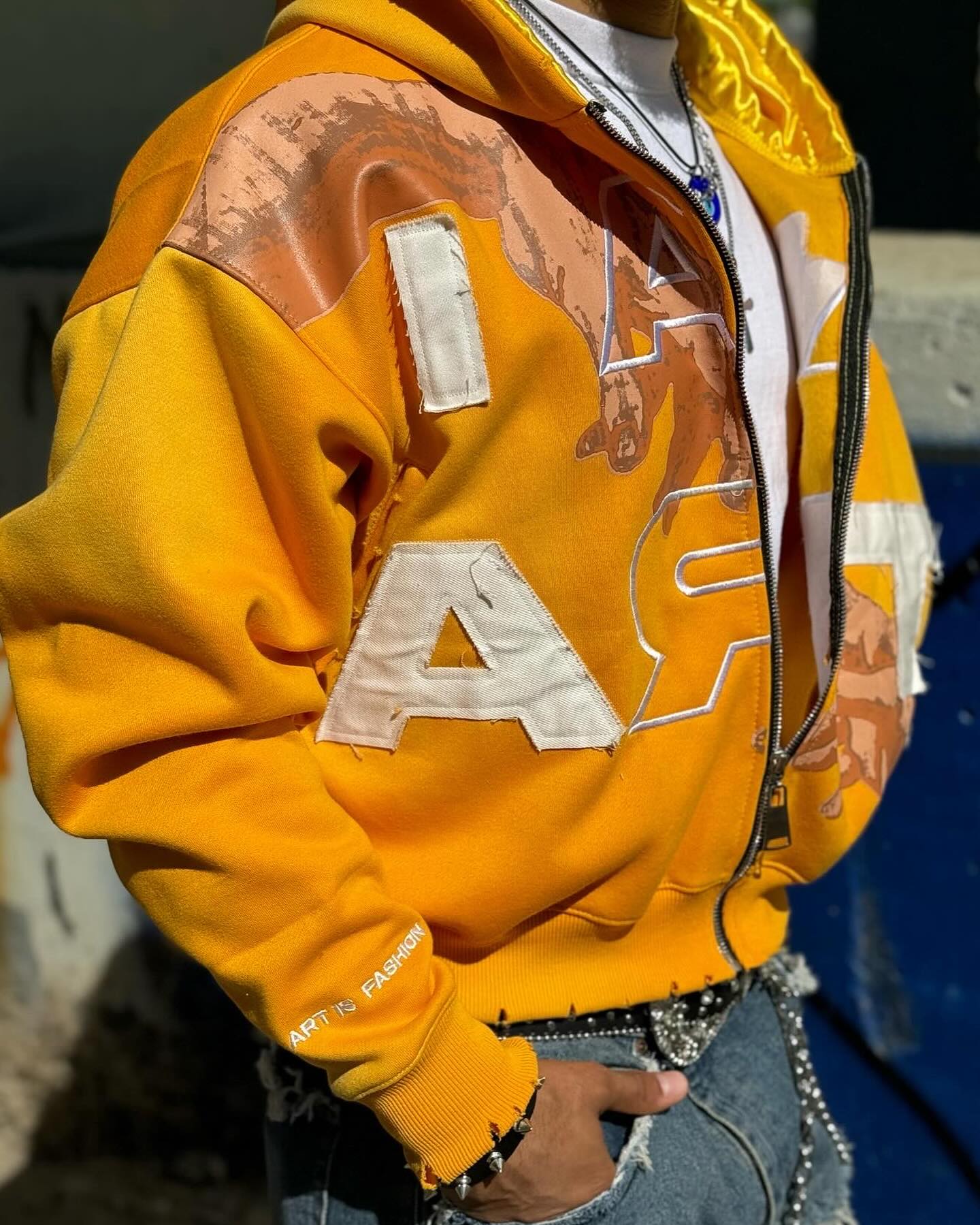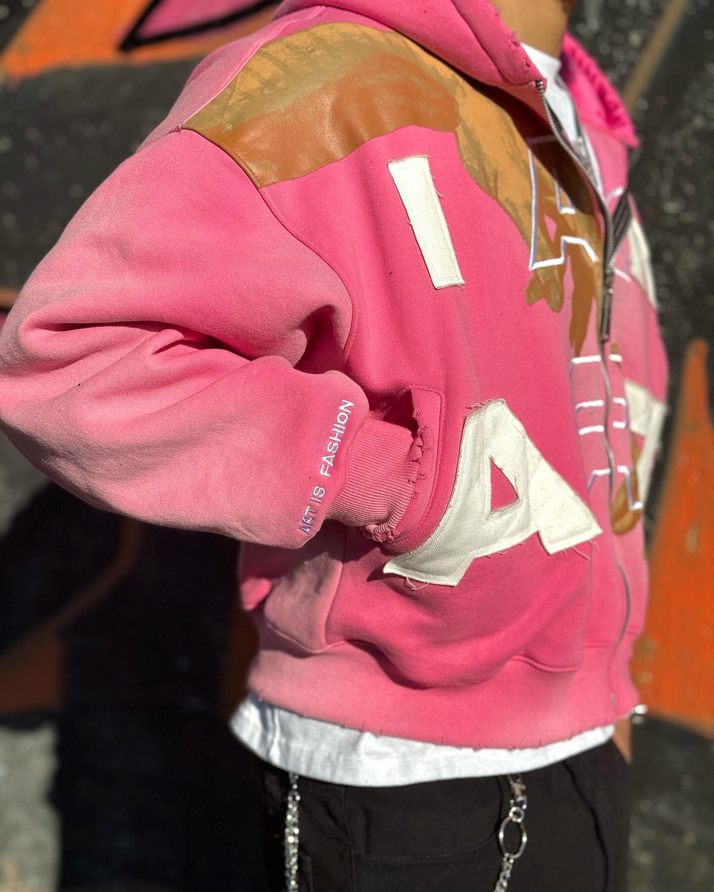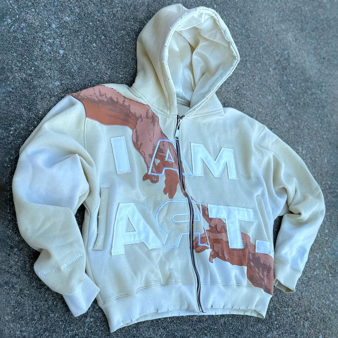 I Am Art Print Long Sleeve Zipper Applique Embroidered Hoodies
