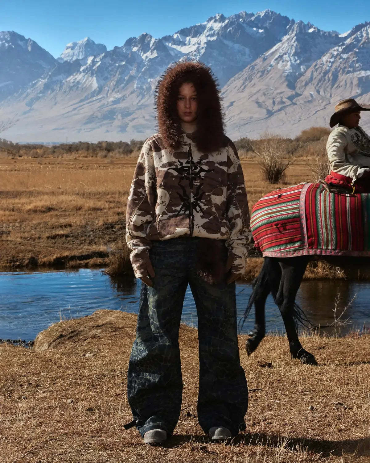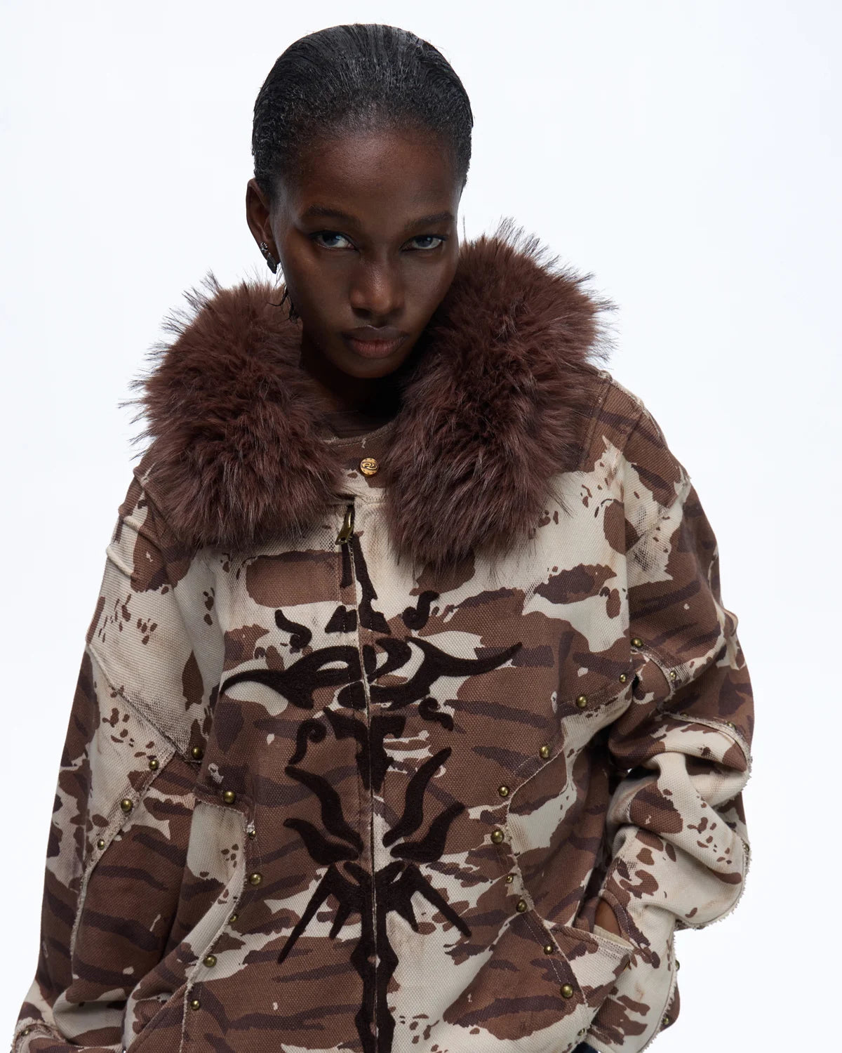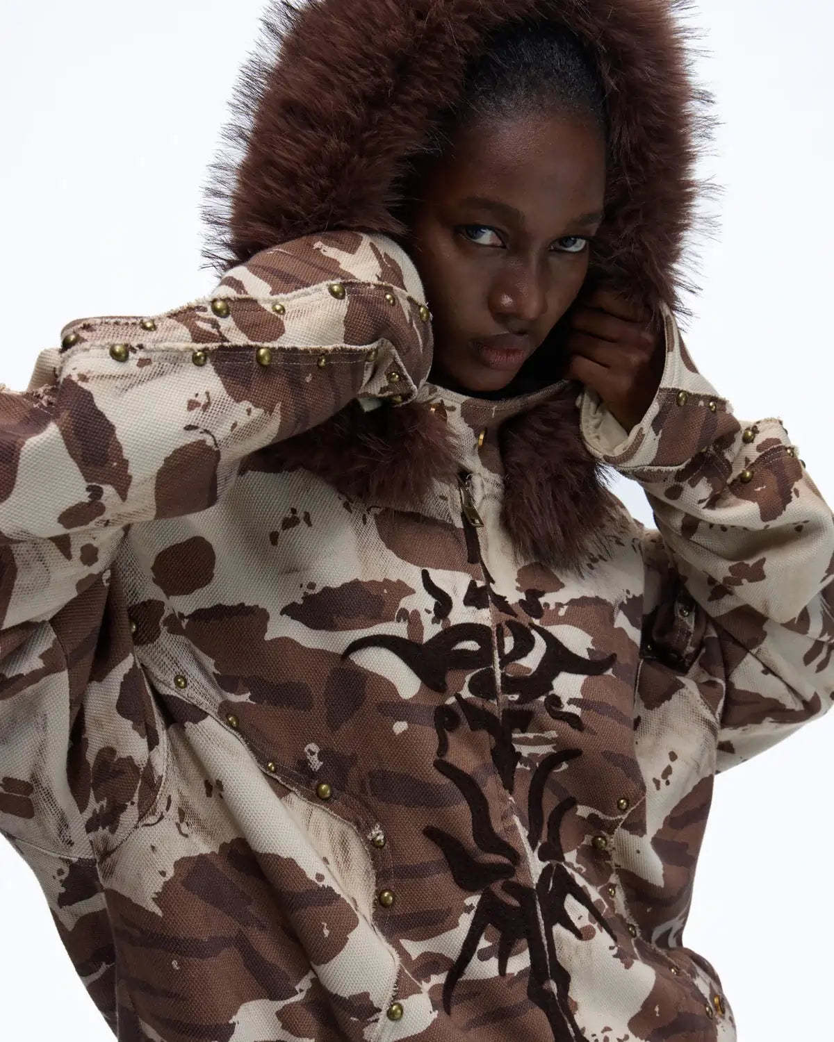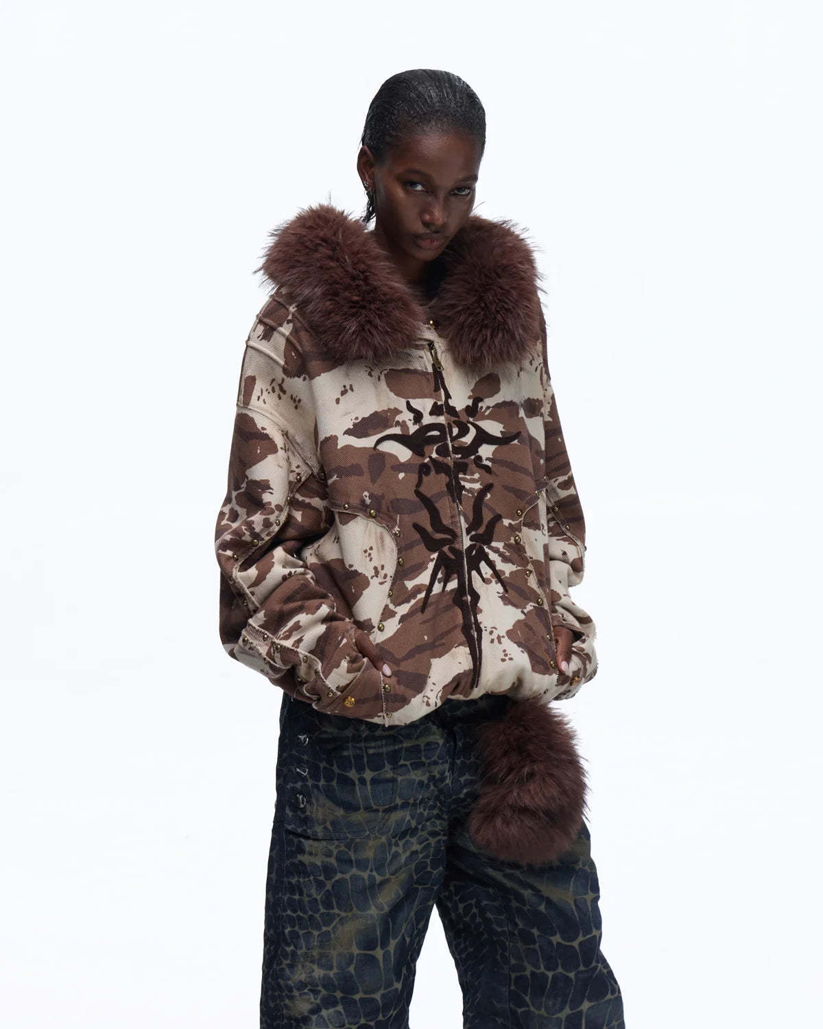 Personsoul Animal Print Hoodie with Fur-Lined Hood