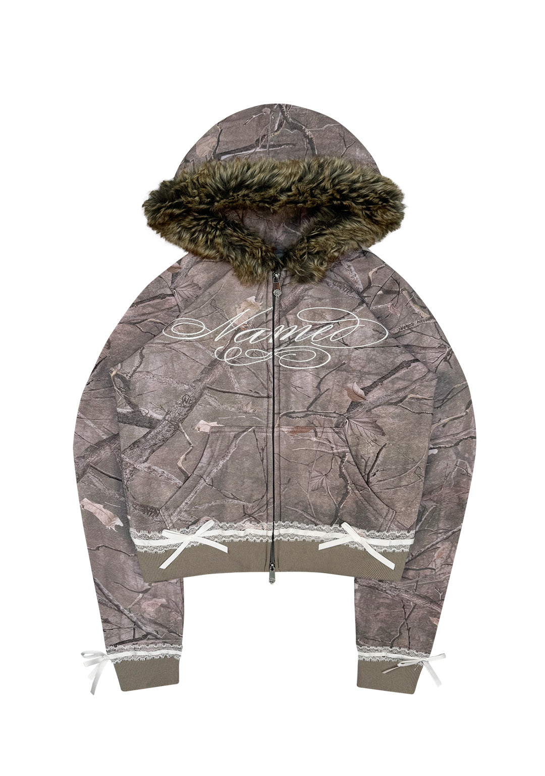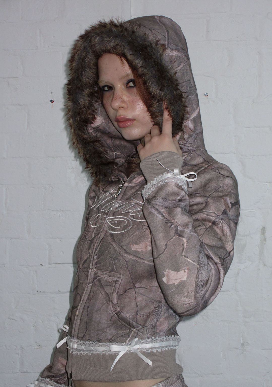 PREY FAUX FUR FITTED ZIP HOODIE TREE CAMO (DETACHABLE FUR)