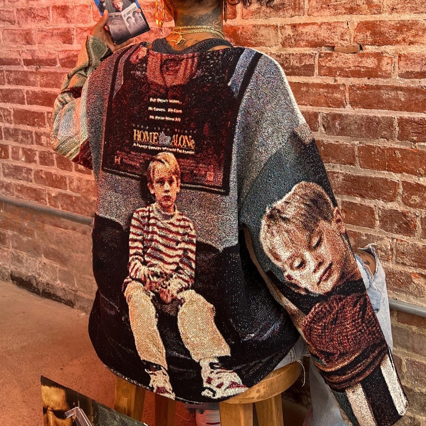 Casual Street Home Alone Tapestry Long Sleeve Sweatshirt