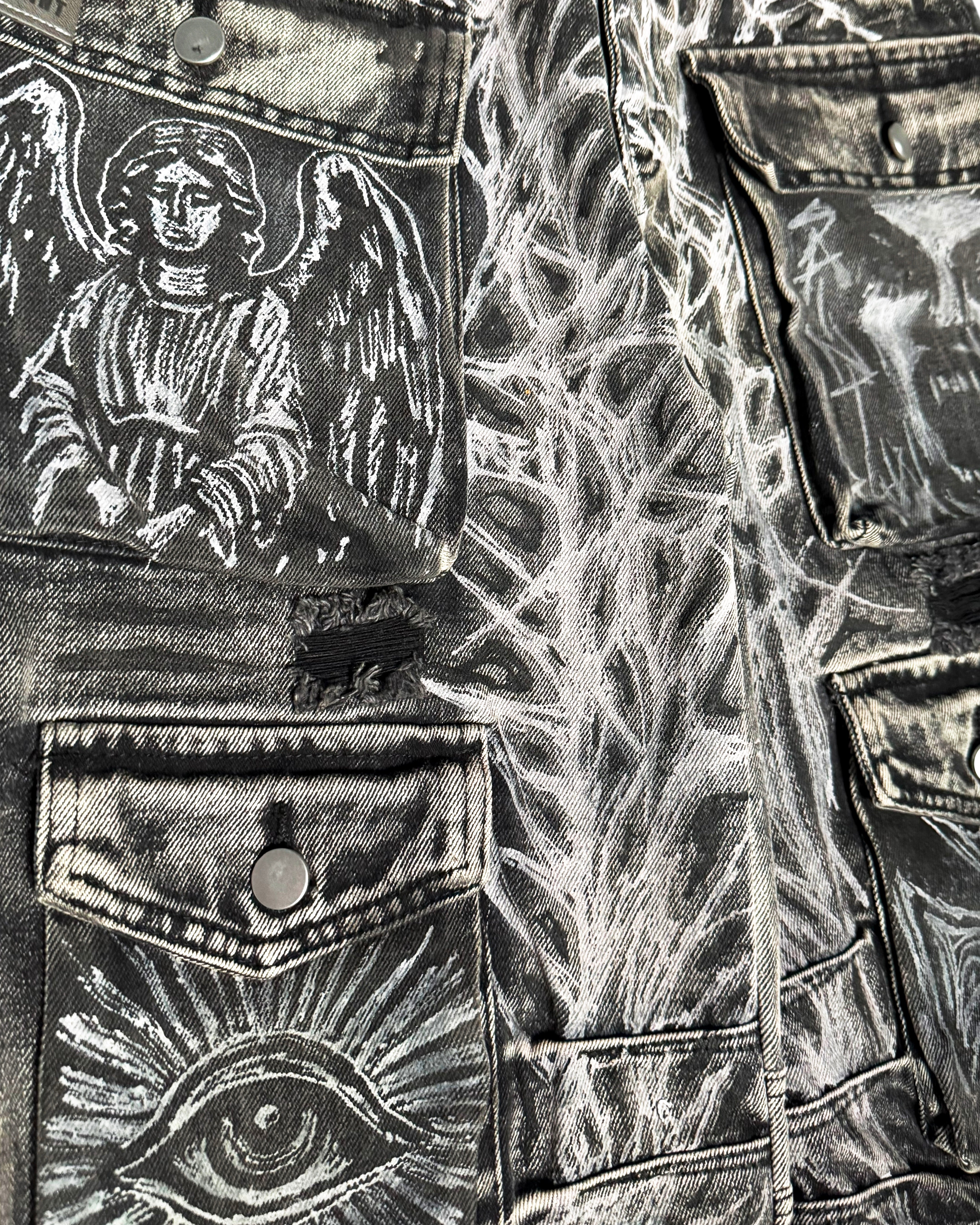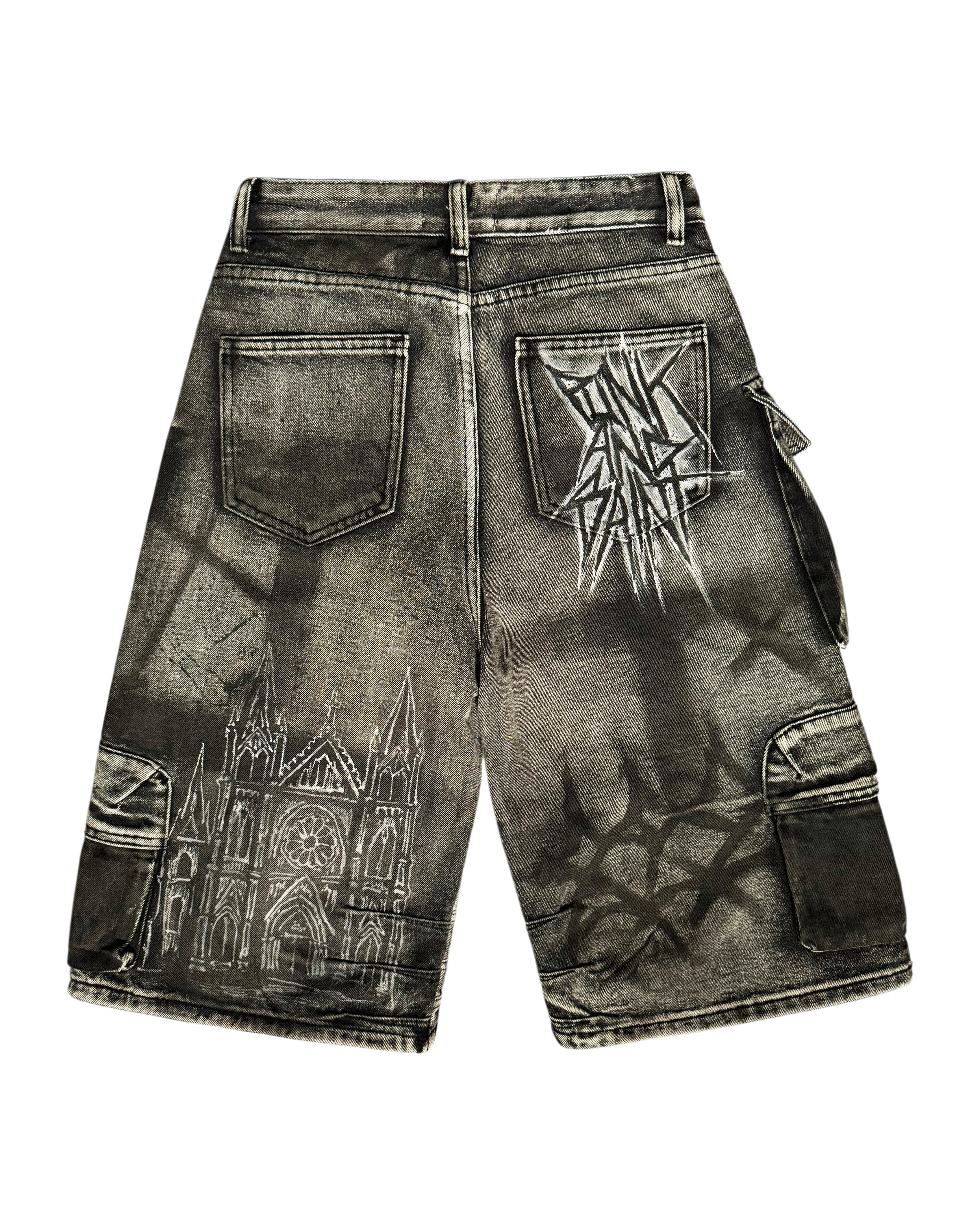 Punk And Saint Custom Hand Painted Denim Cargo Shorts