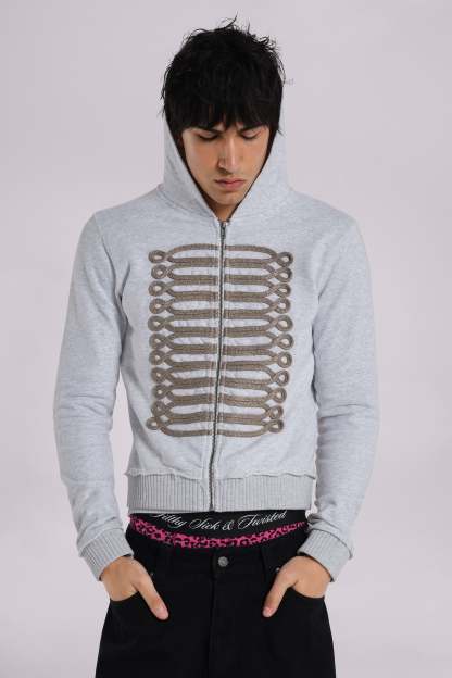 Grey Marl Military Hoodie