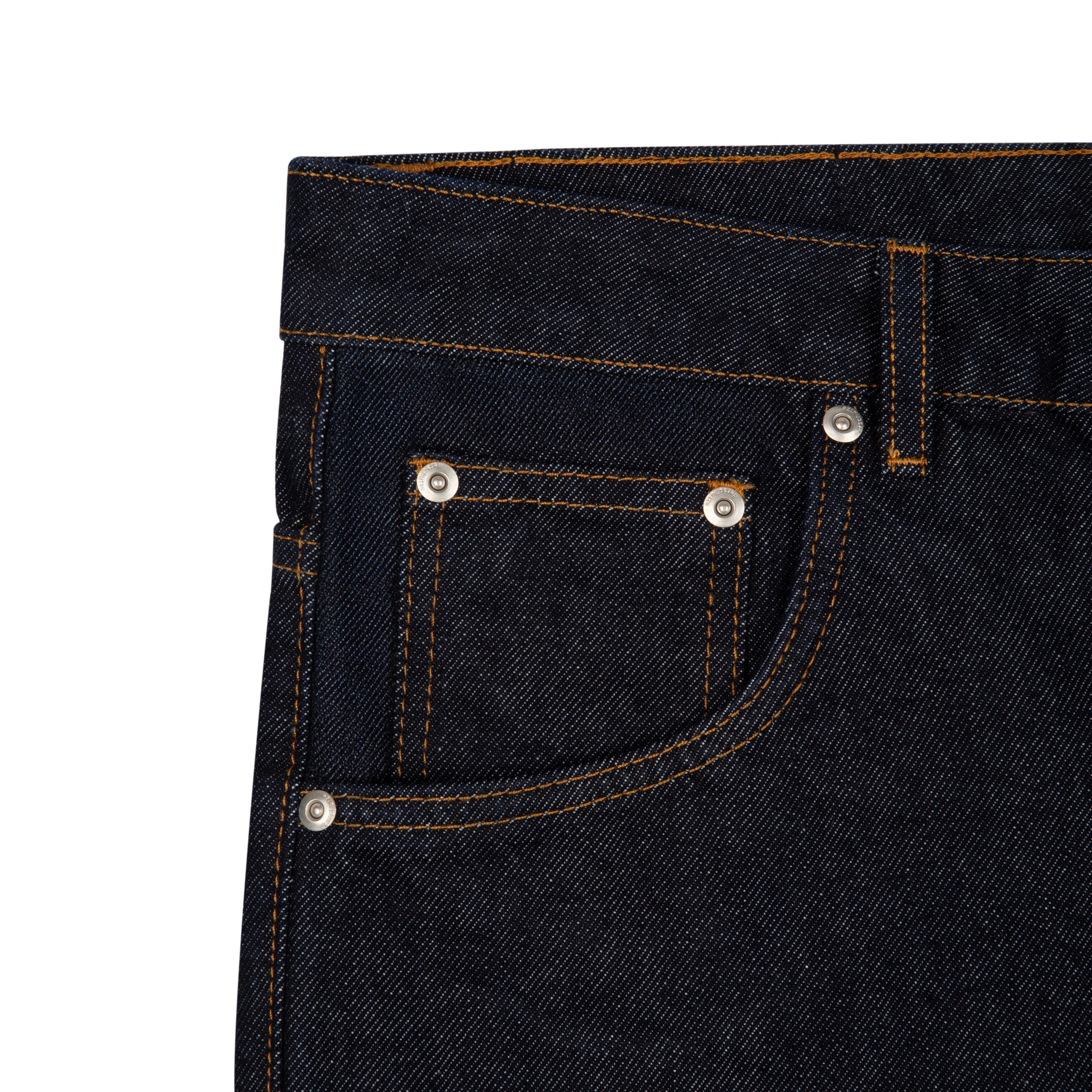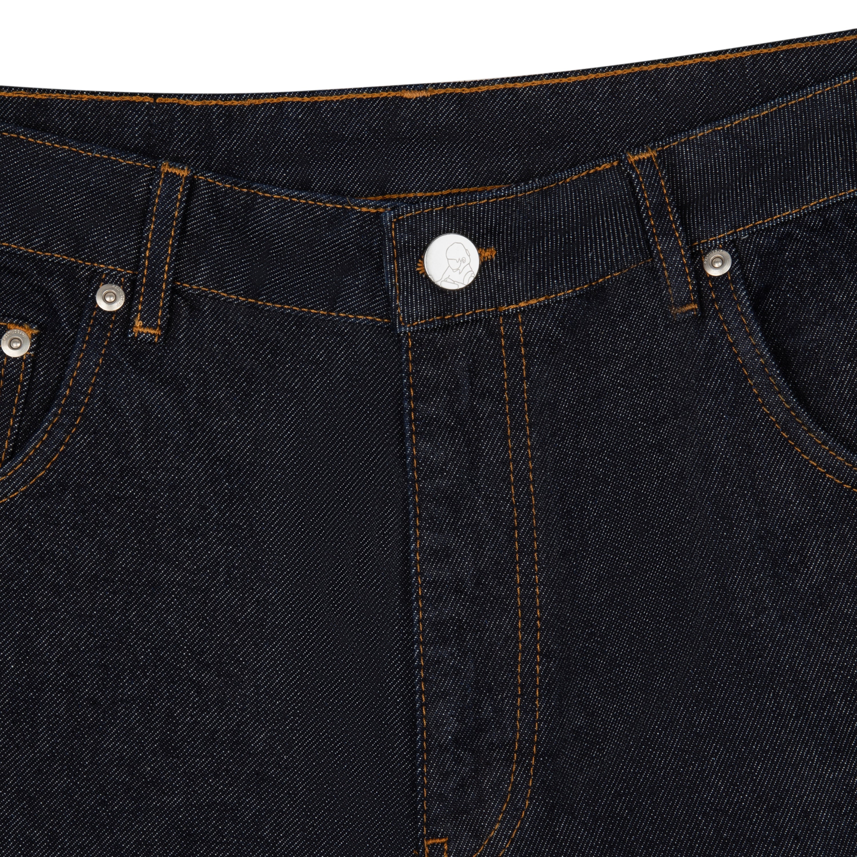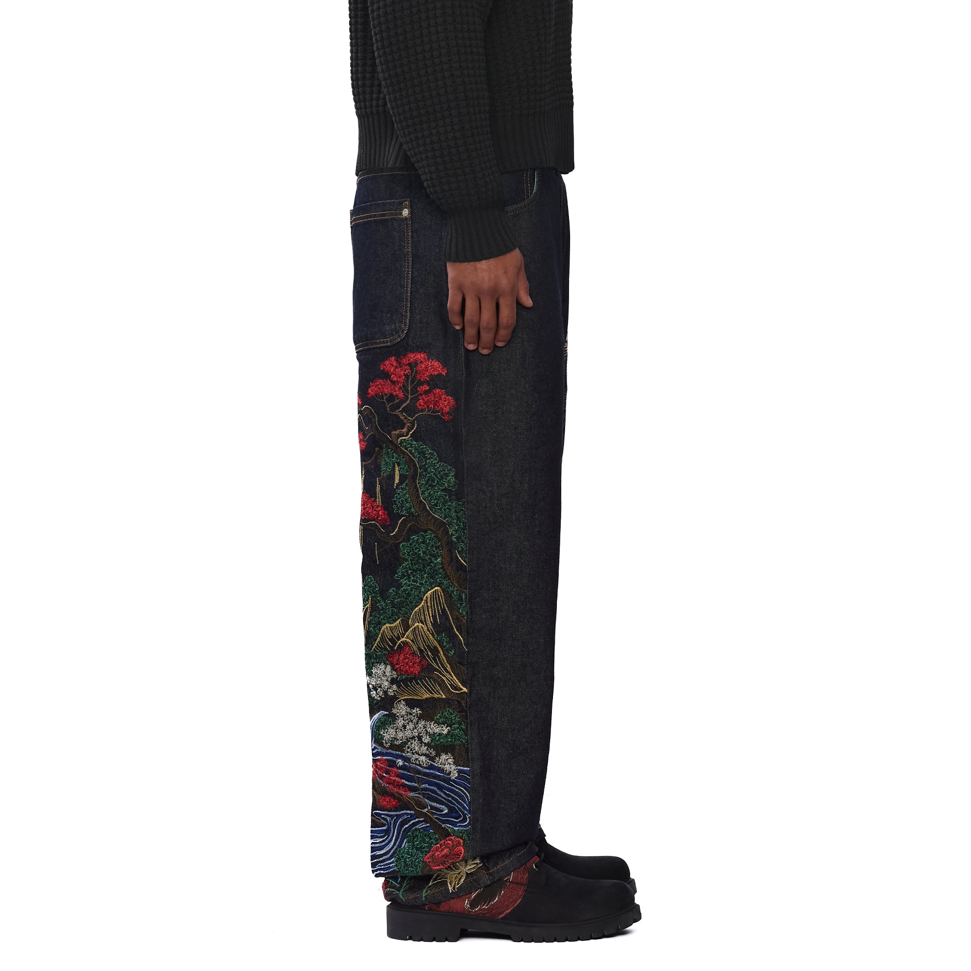 14,5oz denim / 100% cotton / embroidery on front and back / embroidered leather patch / wash inside out / straight fit / fits true to size