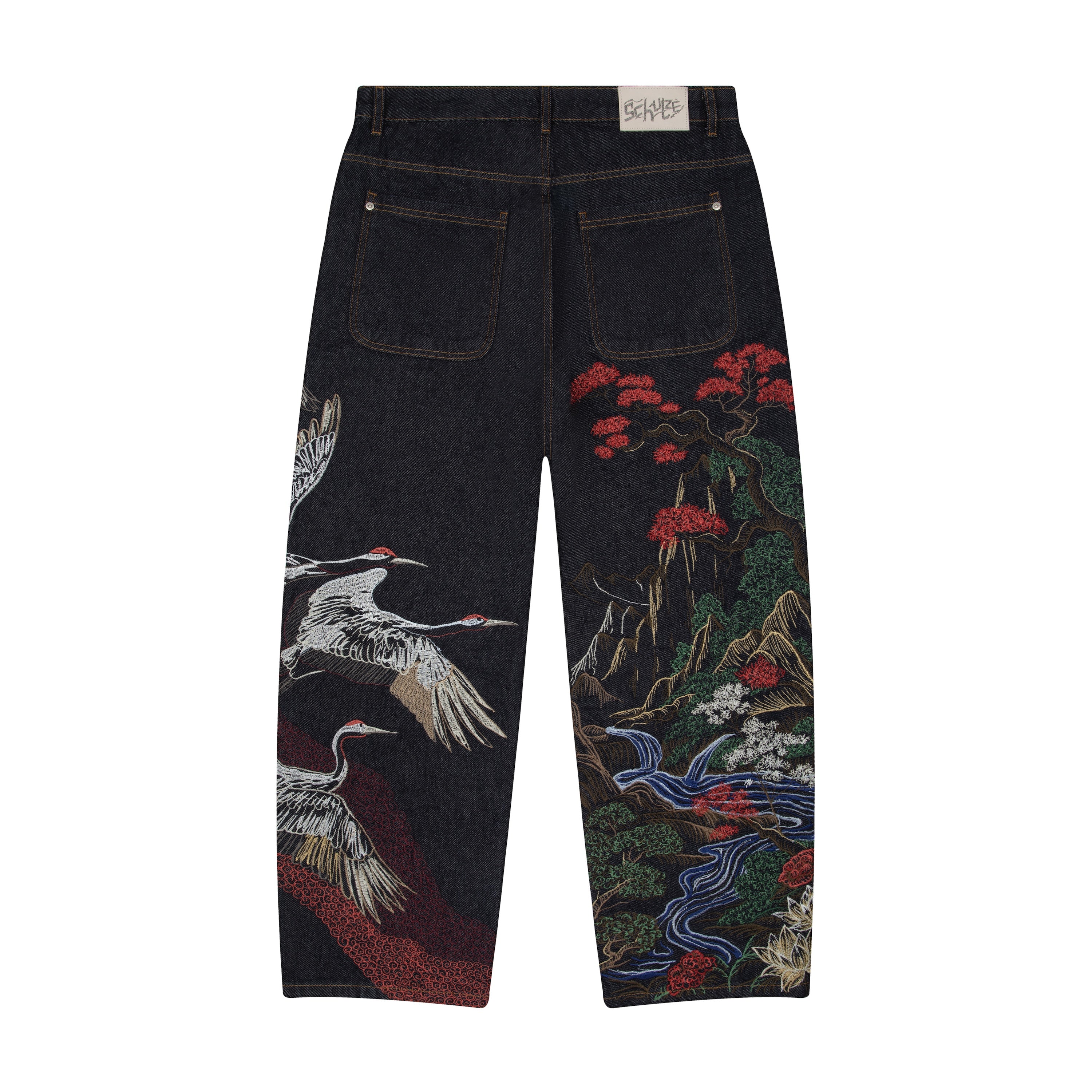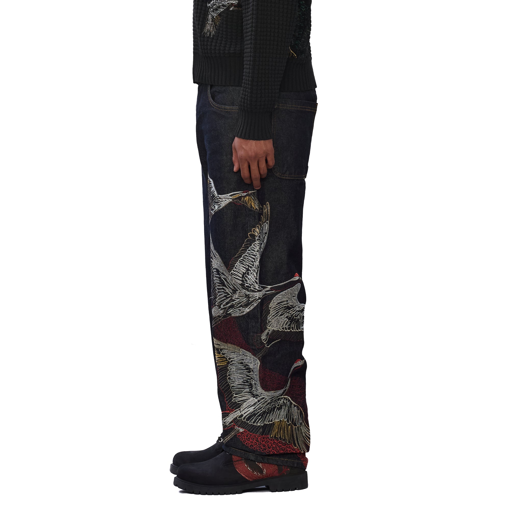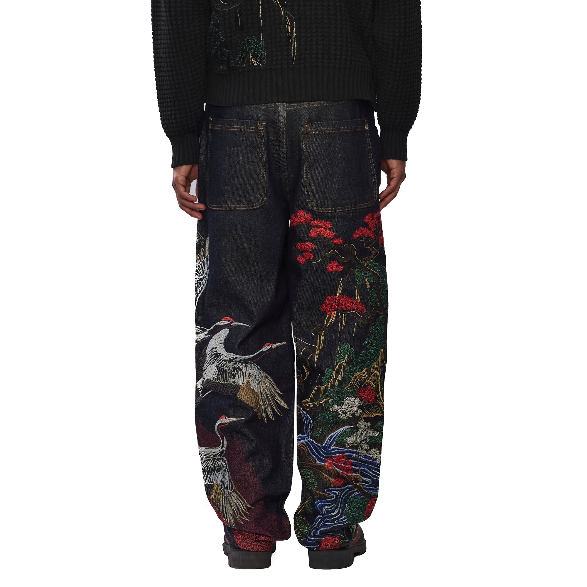14,5oz denim / 100% cotton / embroidery on front and back / embroidered leather patch / wash inside out / straight fit / fits true to size