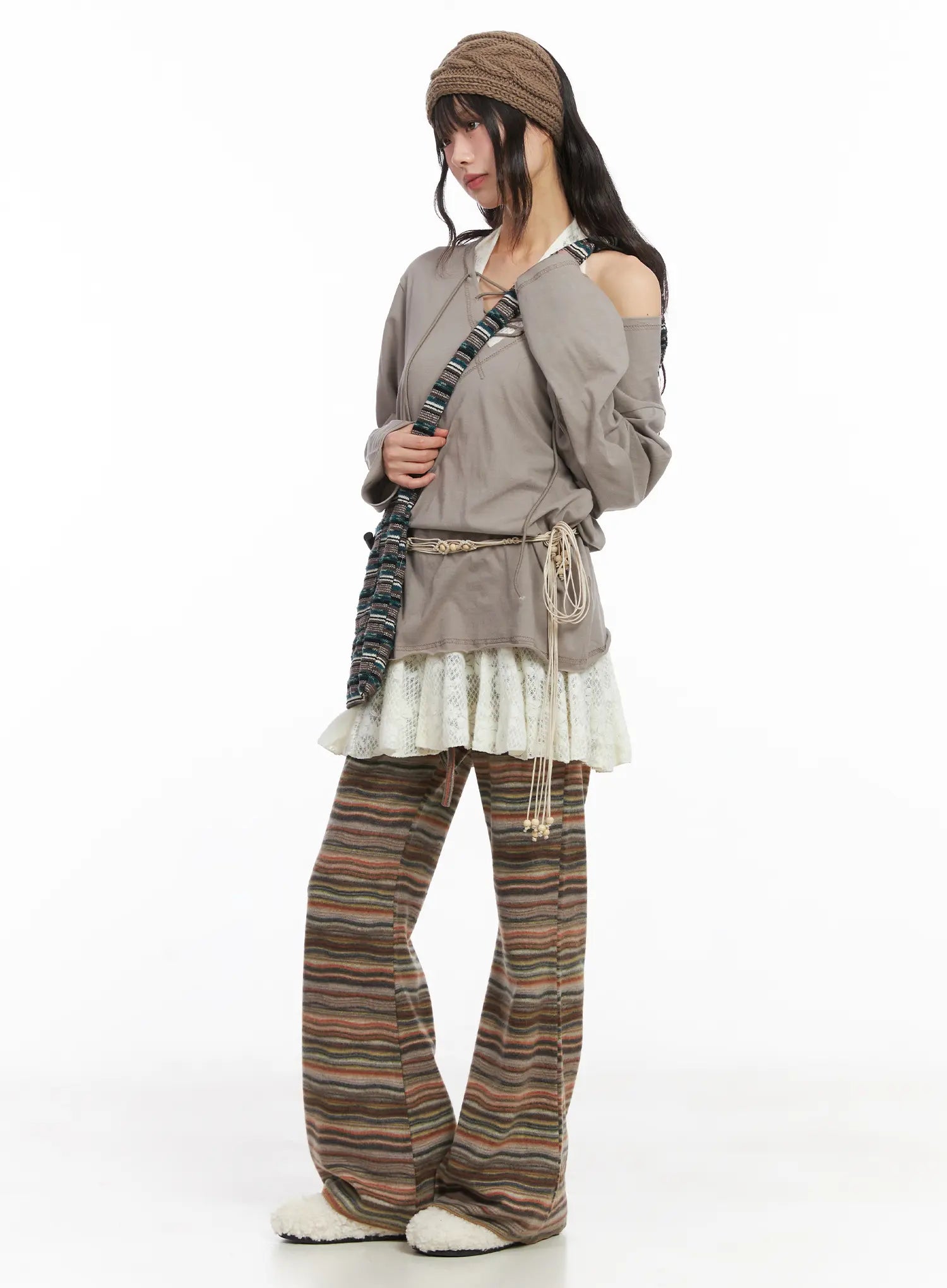 Model is wearing size S/M and the color Beige.Height : 5'5" | 165cm / Top : XS / Bottom : S (25 inch)Size(Inch)