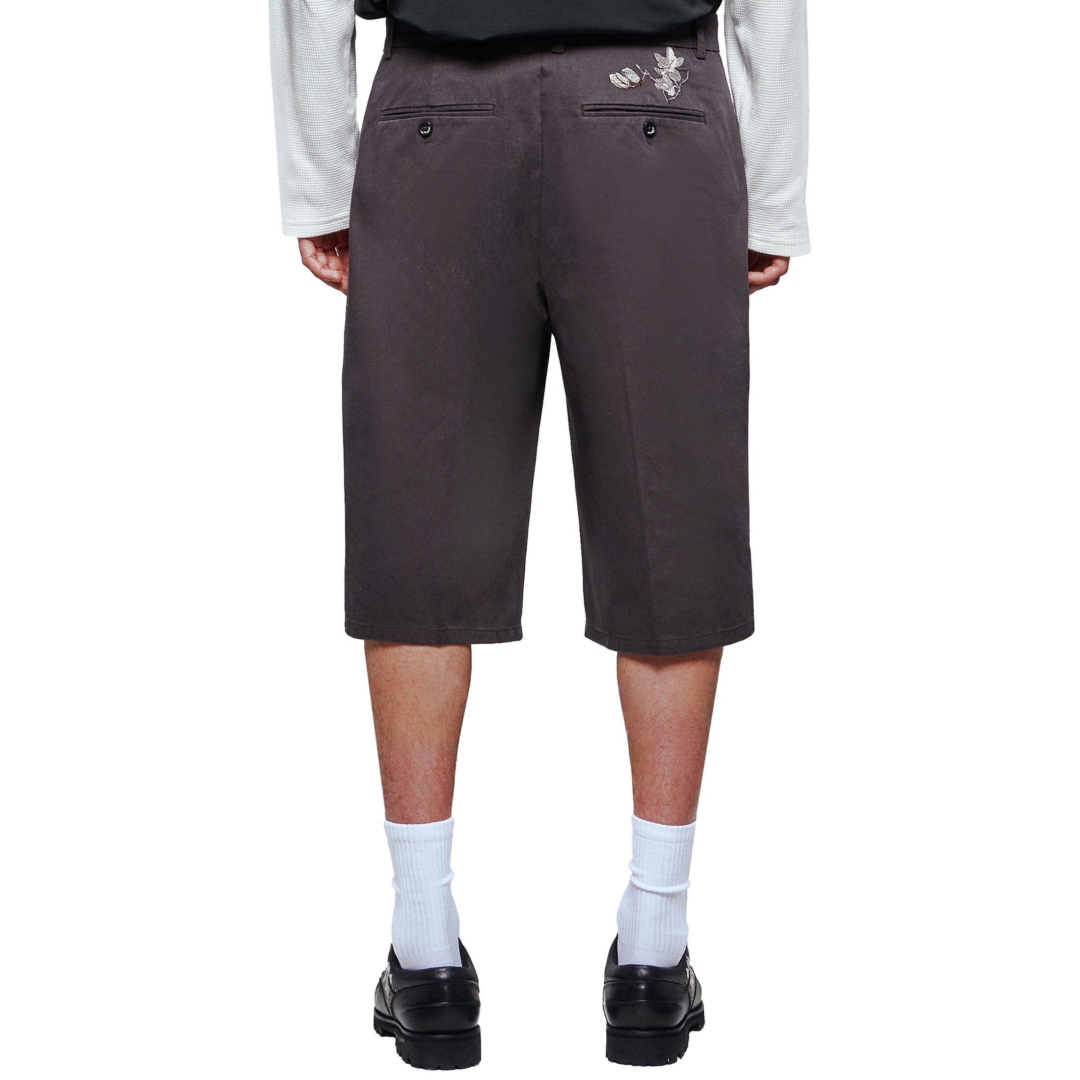 270 gsm gabardine / 100% cotton / embroidery on back / custom buttons / straight fit / fits true to size