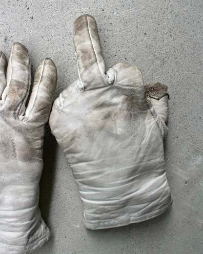 HYBRID AW21 “Order; Chaos. [If I Cut My Hair California Will Sink]” White Bateman Leather Gloves