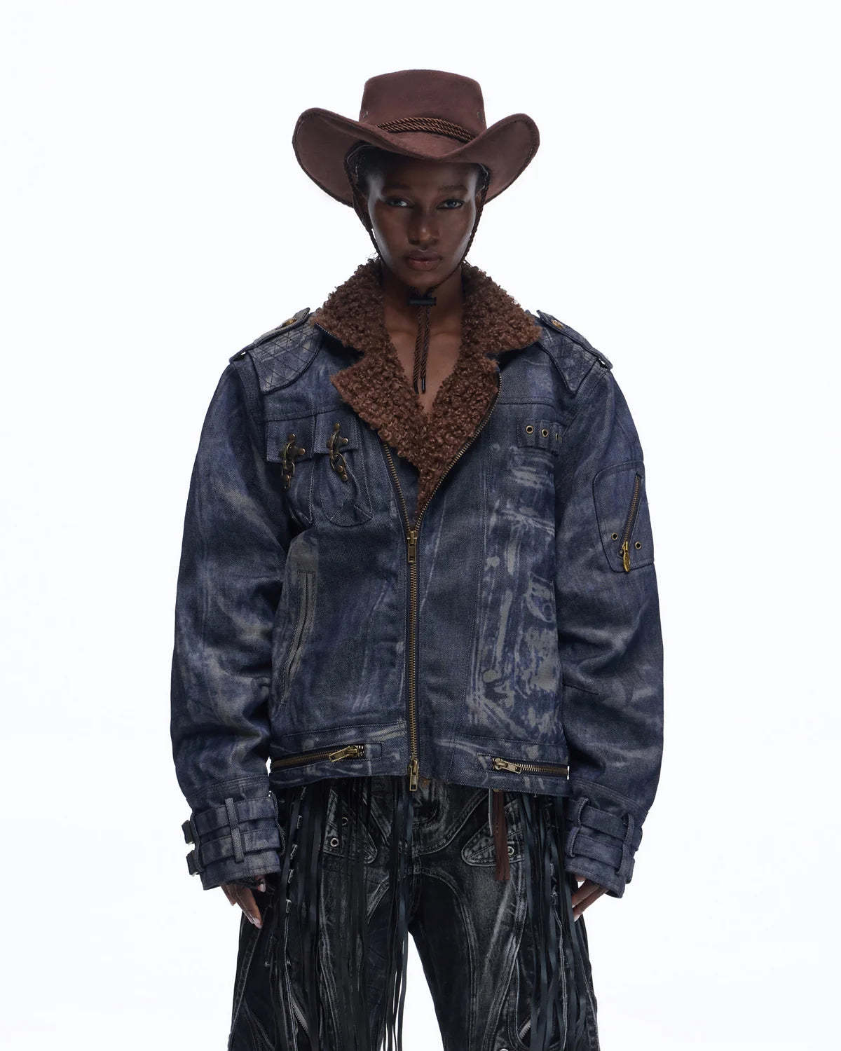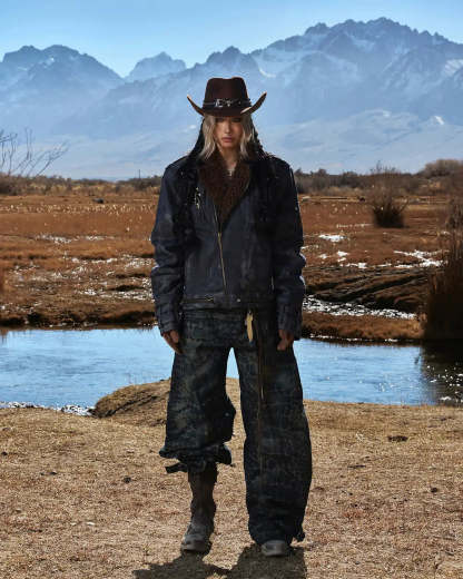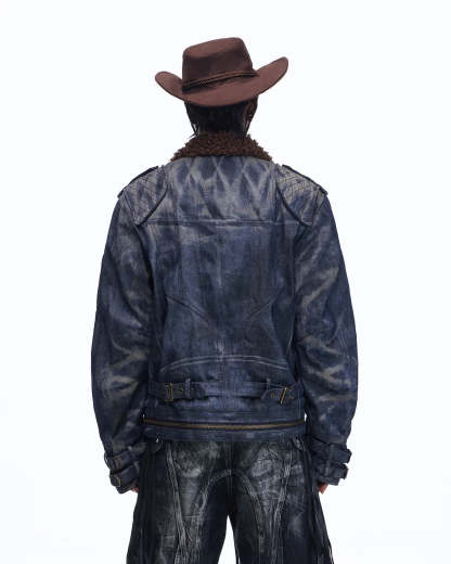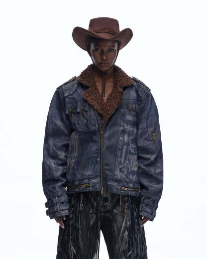 Personsoul Sherpa Lined Raw Denim Jacket