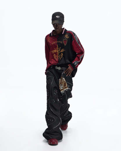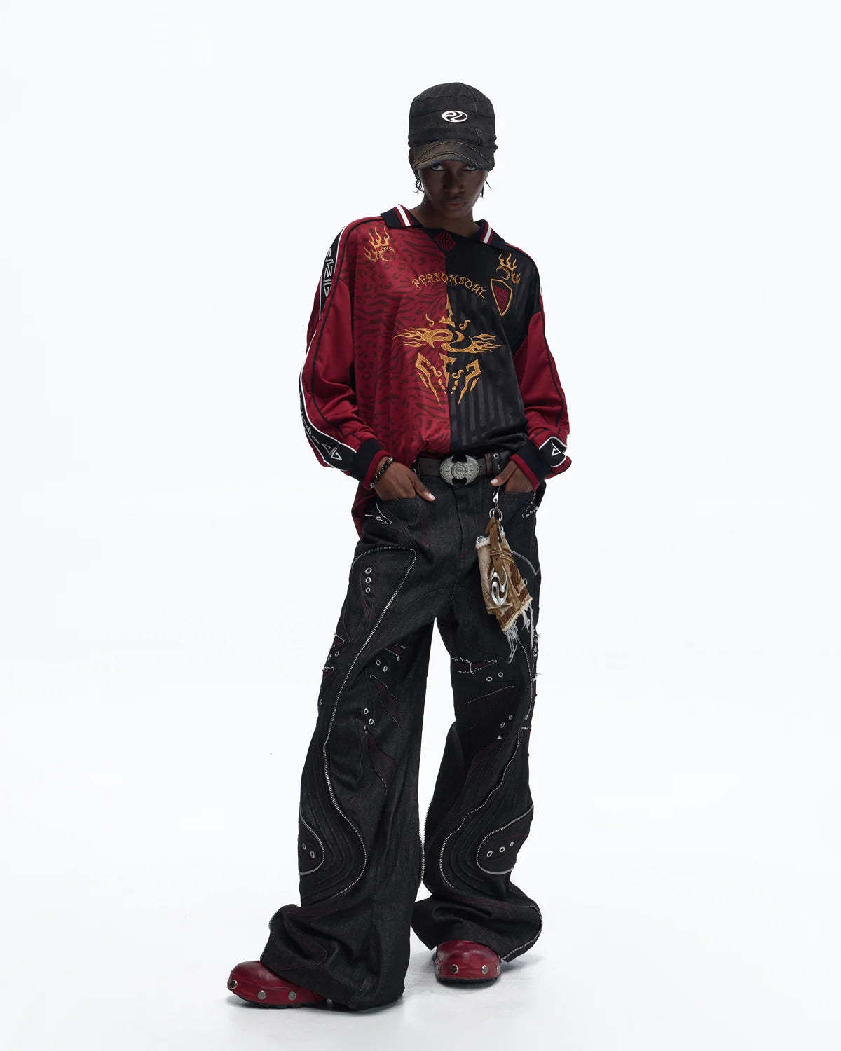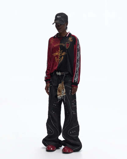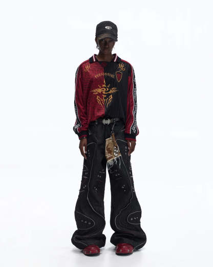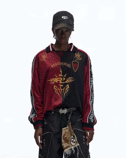 Personsoul Tribal-Animal Print Patchwork Shirt In Red