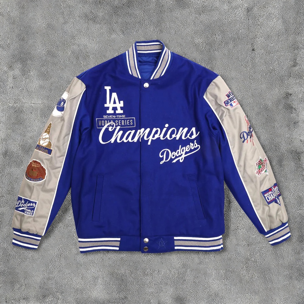 Stylish Champion Team Print Color Block Baseball Jacket