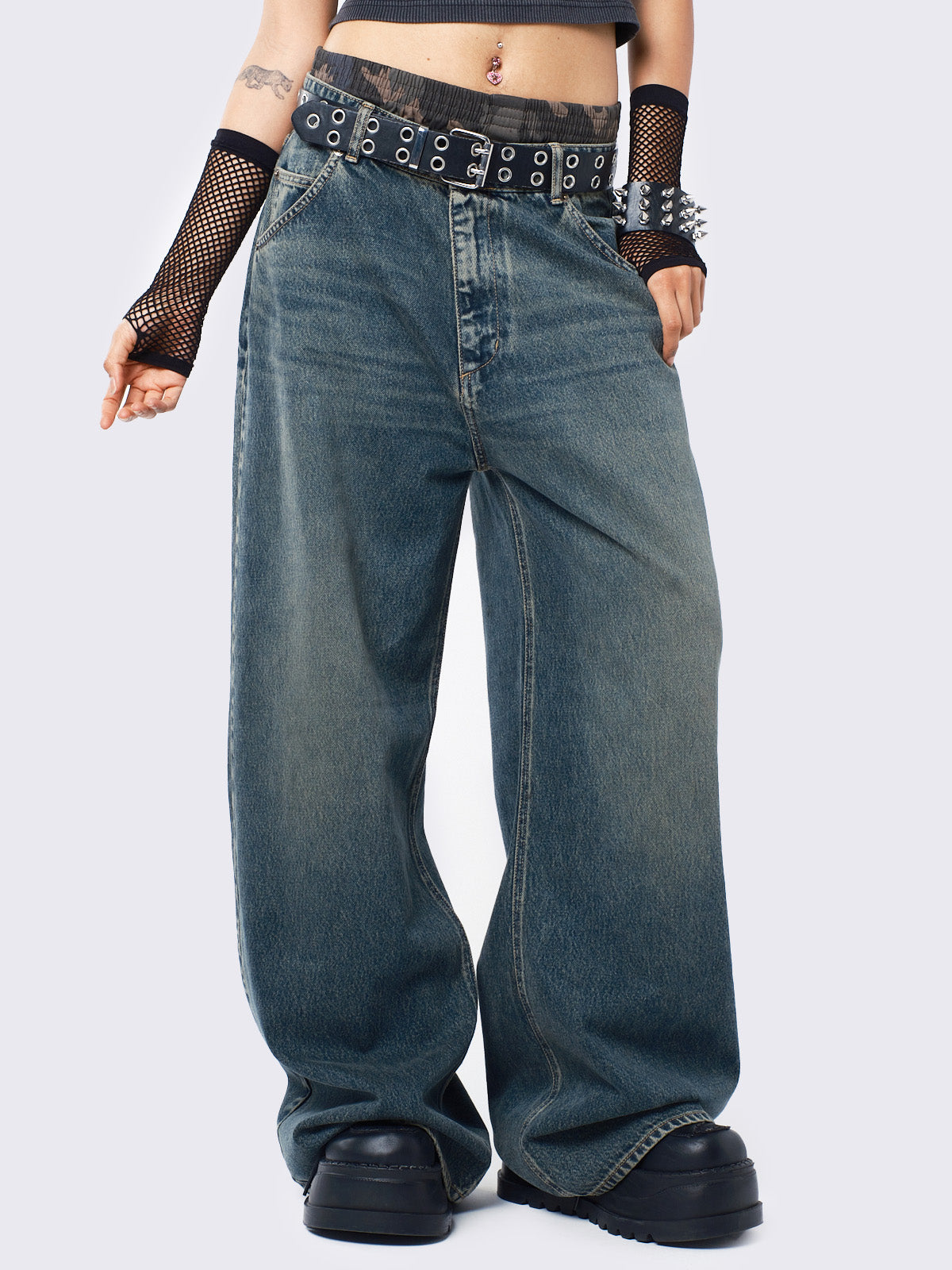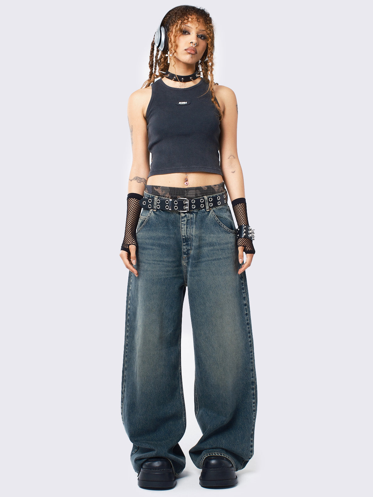 • Light blue washed baggy jeans