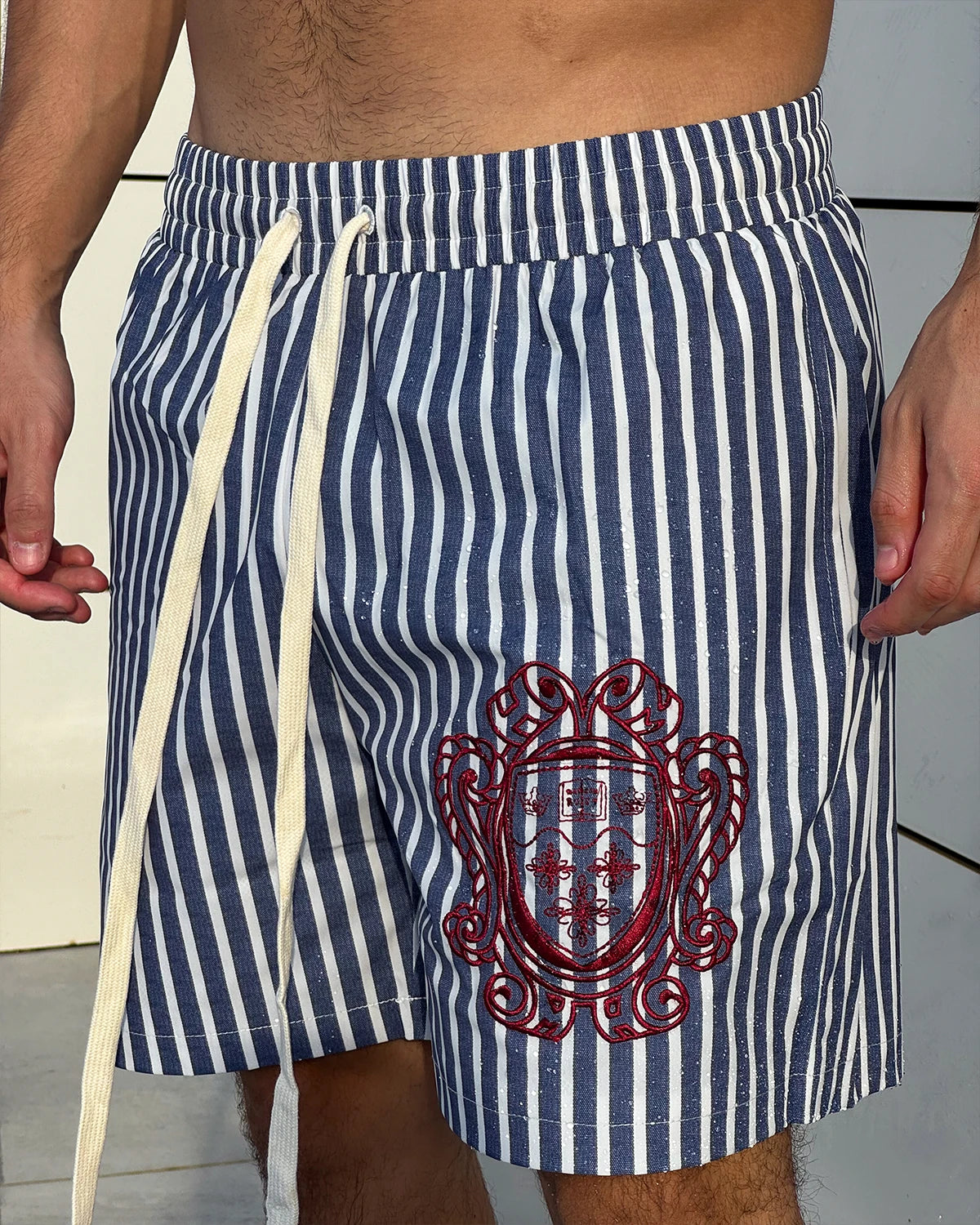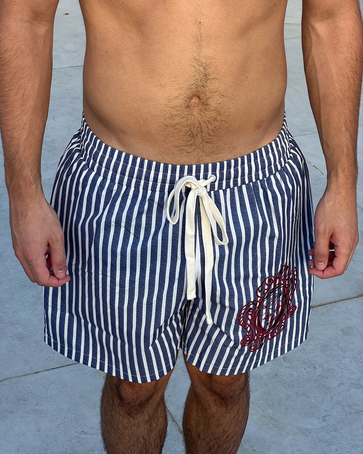 Blue & White striped swim pants. Complete inner netting.
