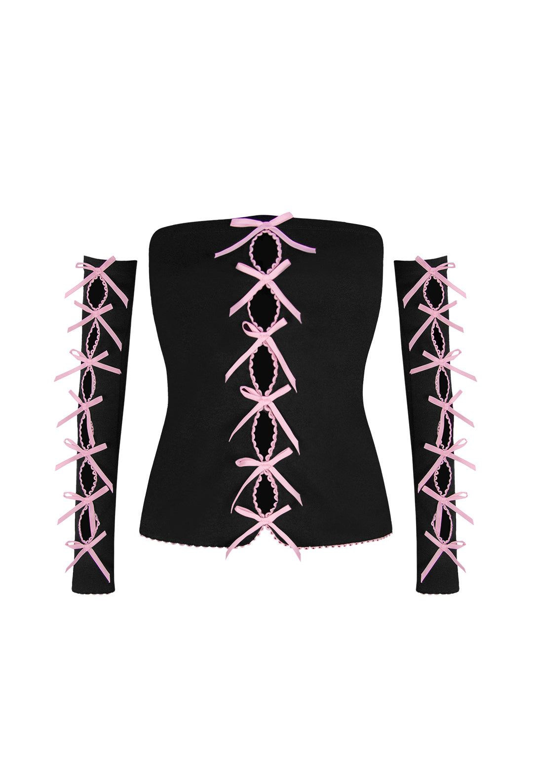 PRINC355 RIBBON THREE PIECE TUBE TOP SET BLACK (DETACHABLE SLEEVES)