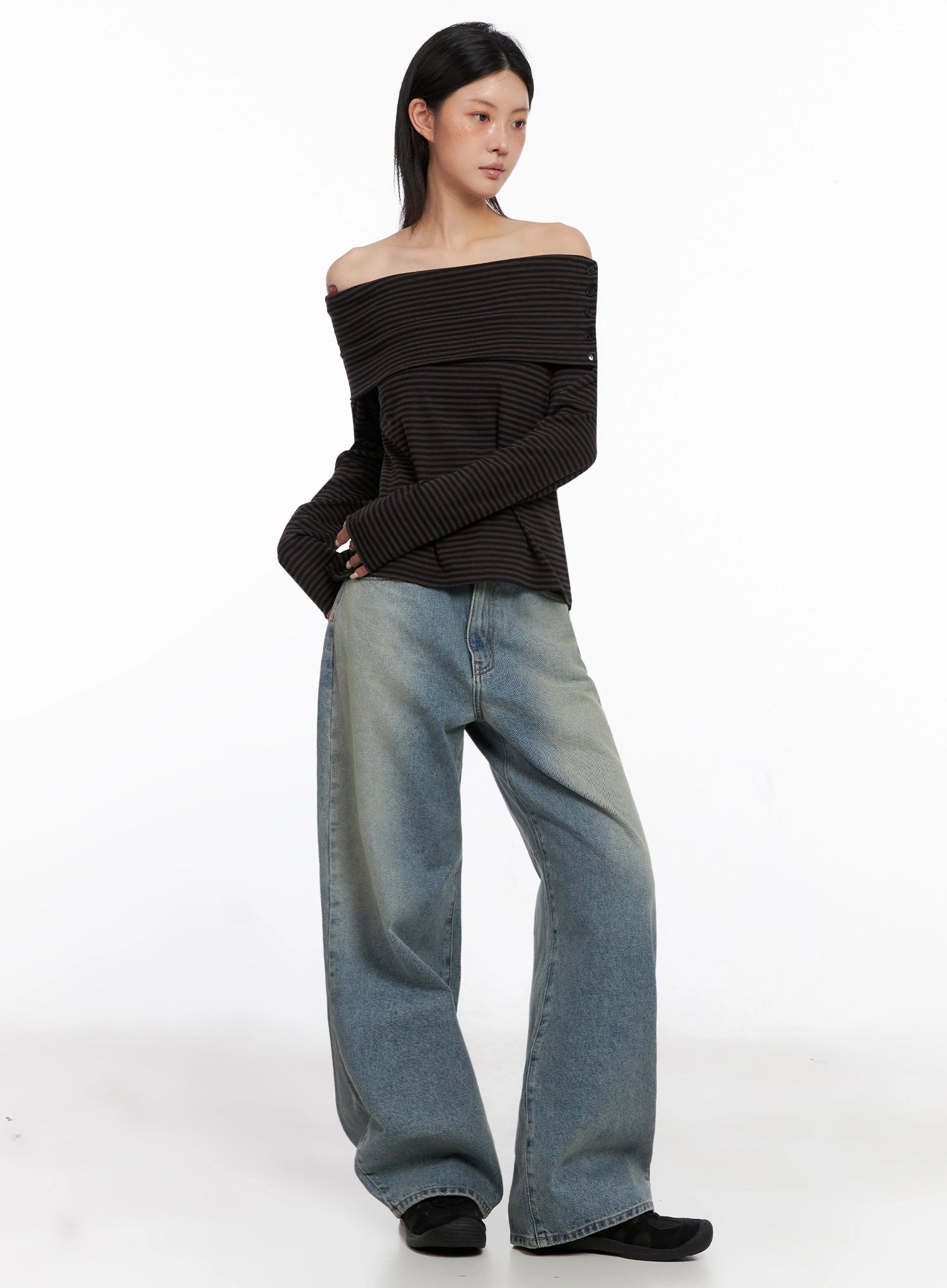 • Height : 5'7" | 169cm / Top : XS / Bottom : S (25 inch)