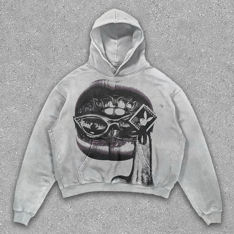 Vintage Lip Print Hoodie