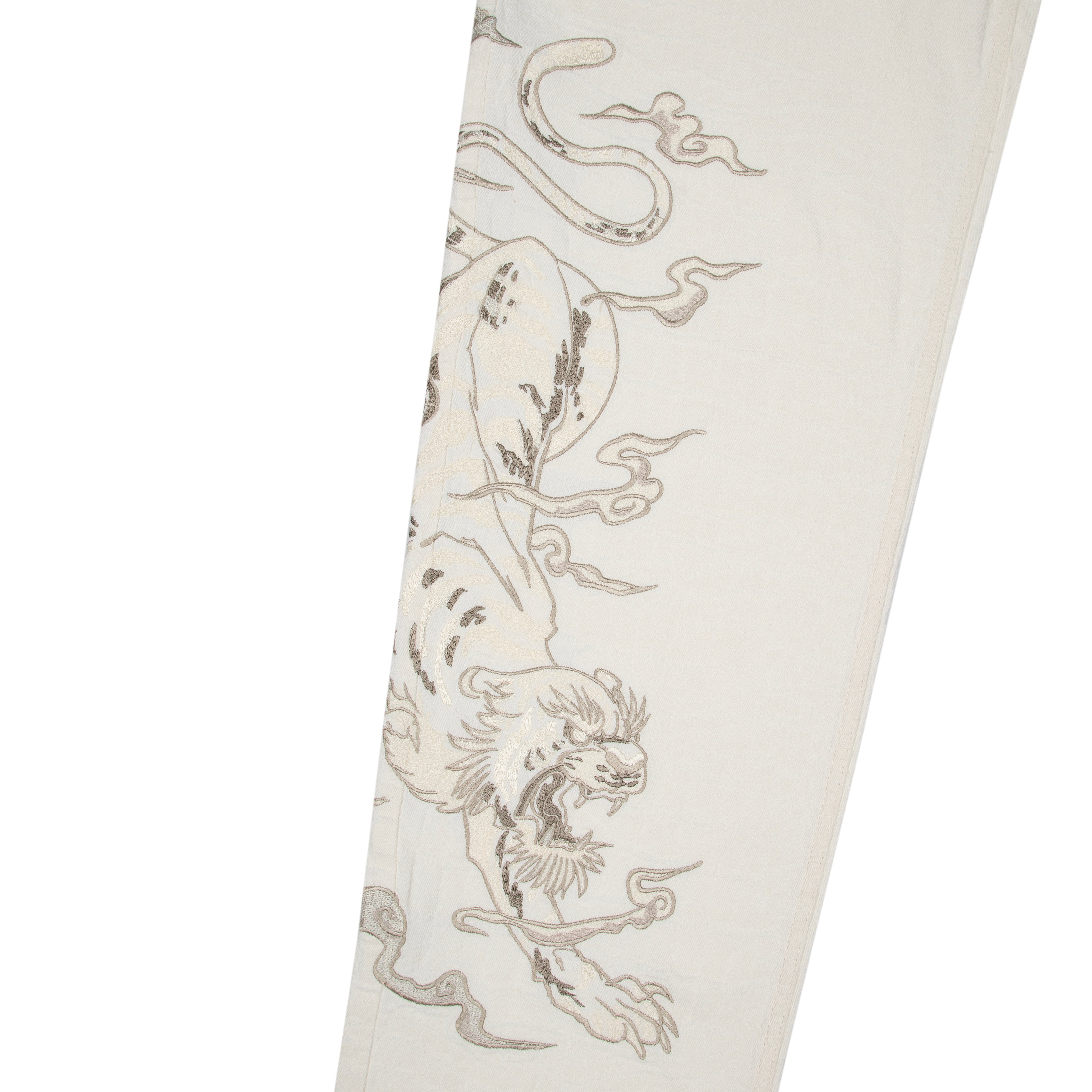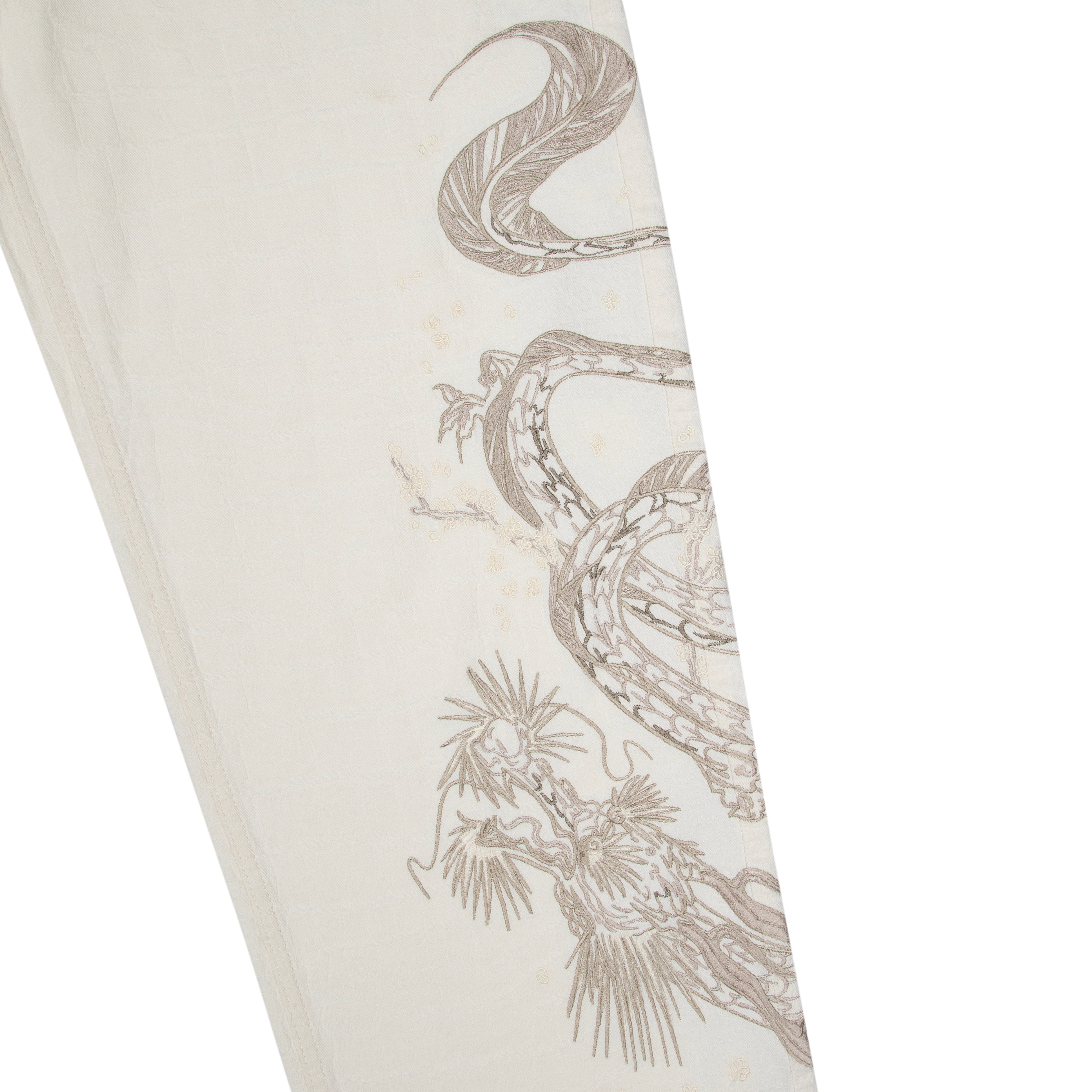13oz jacquard patterned denim / 100% cotton / embroidery on front and back / debossed printed leather patch / wash inside out / straight fit / fits true to size
