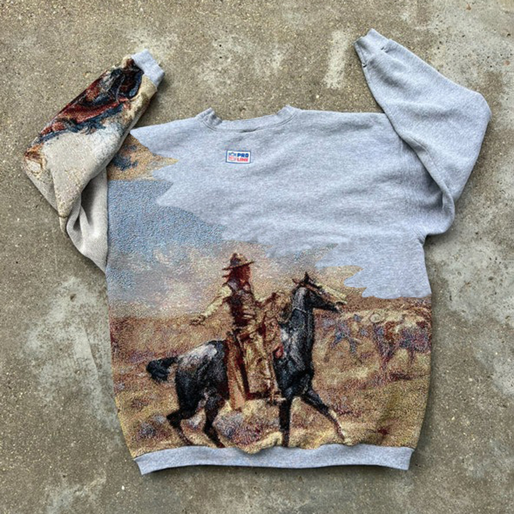Vintage Cowboys Print Long Sleeve Sweatshirt
