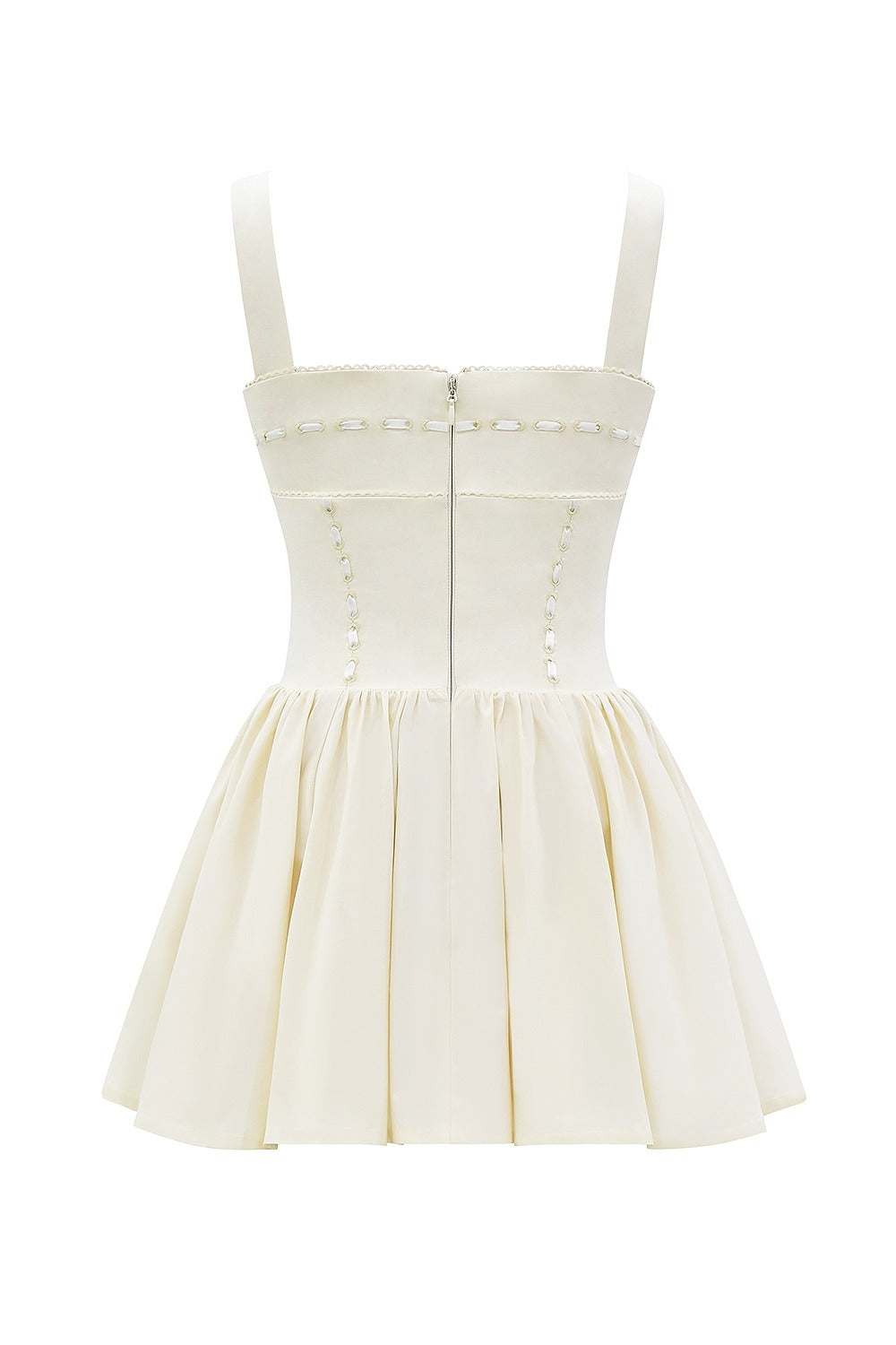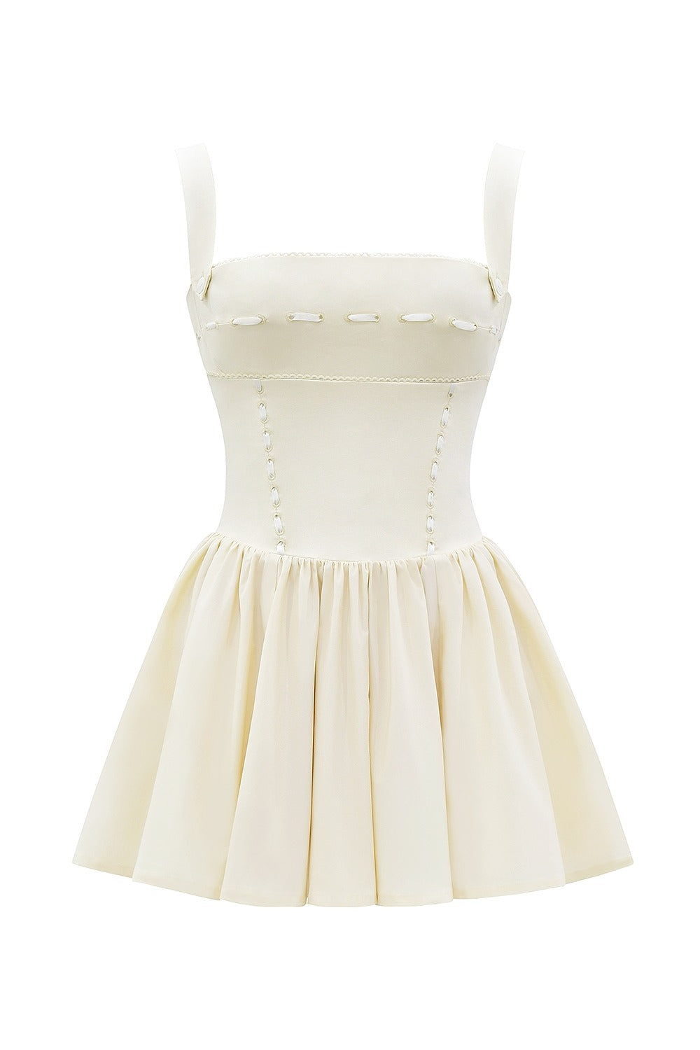 This dress is crafted from our cotton-rich fabric, featuring a soft cream hue that flatters the complexion, and a figure-hugging bodice design that accentuates the silhouette. We especially love the way the flowing skirt drapes elegantly from the waist. A back zipper makes it easy to wear.