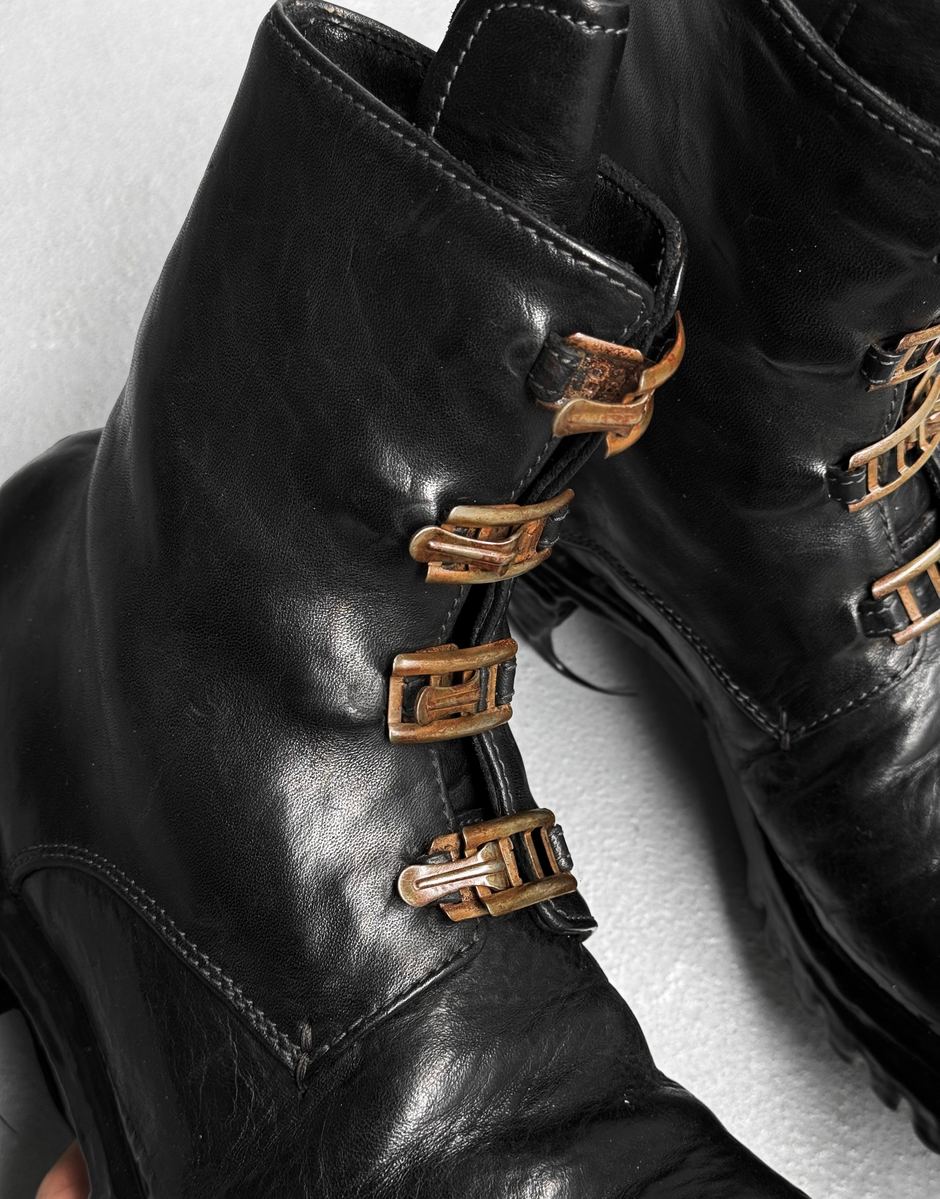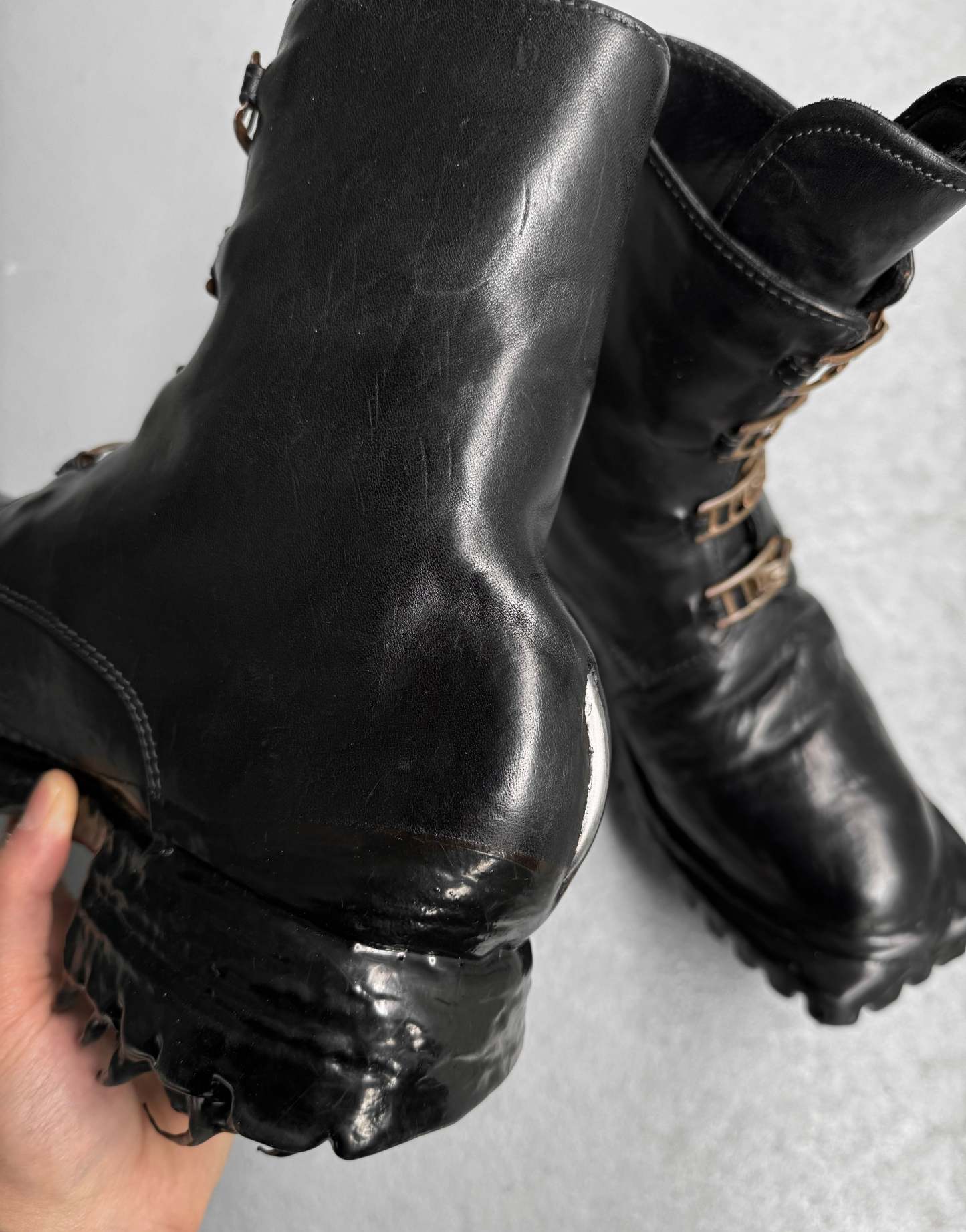 Carol Christian Poell ‘AM/2759SP-IN CORSS-PTC/010B’ Horse Leather Prosthetic Buckle Drip Boots