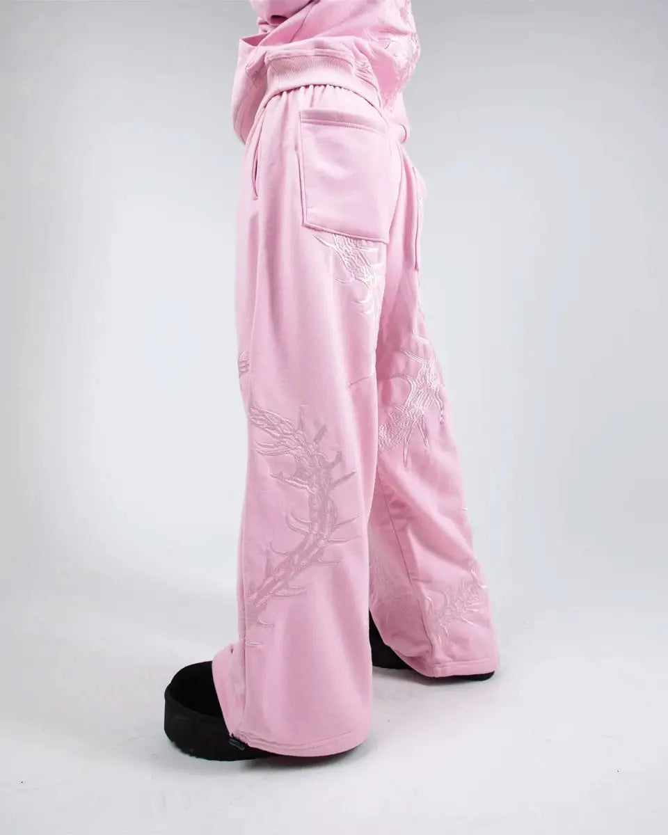 ·         Drawstrings hidden inside waistband and bottom leg opening.
