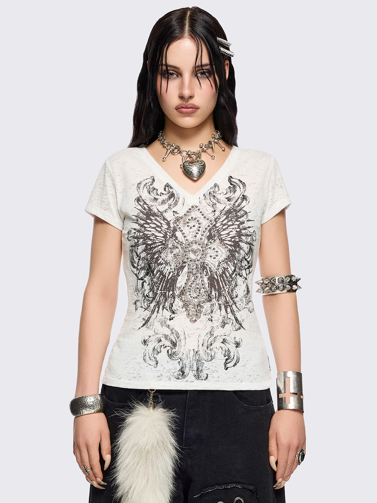 • Winged cross graphic front print
