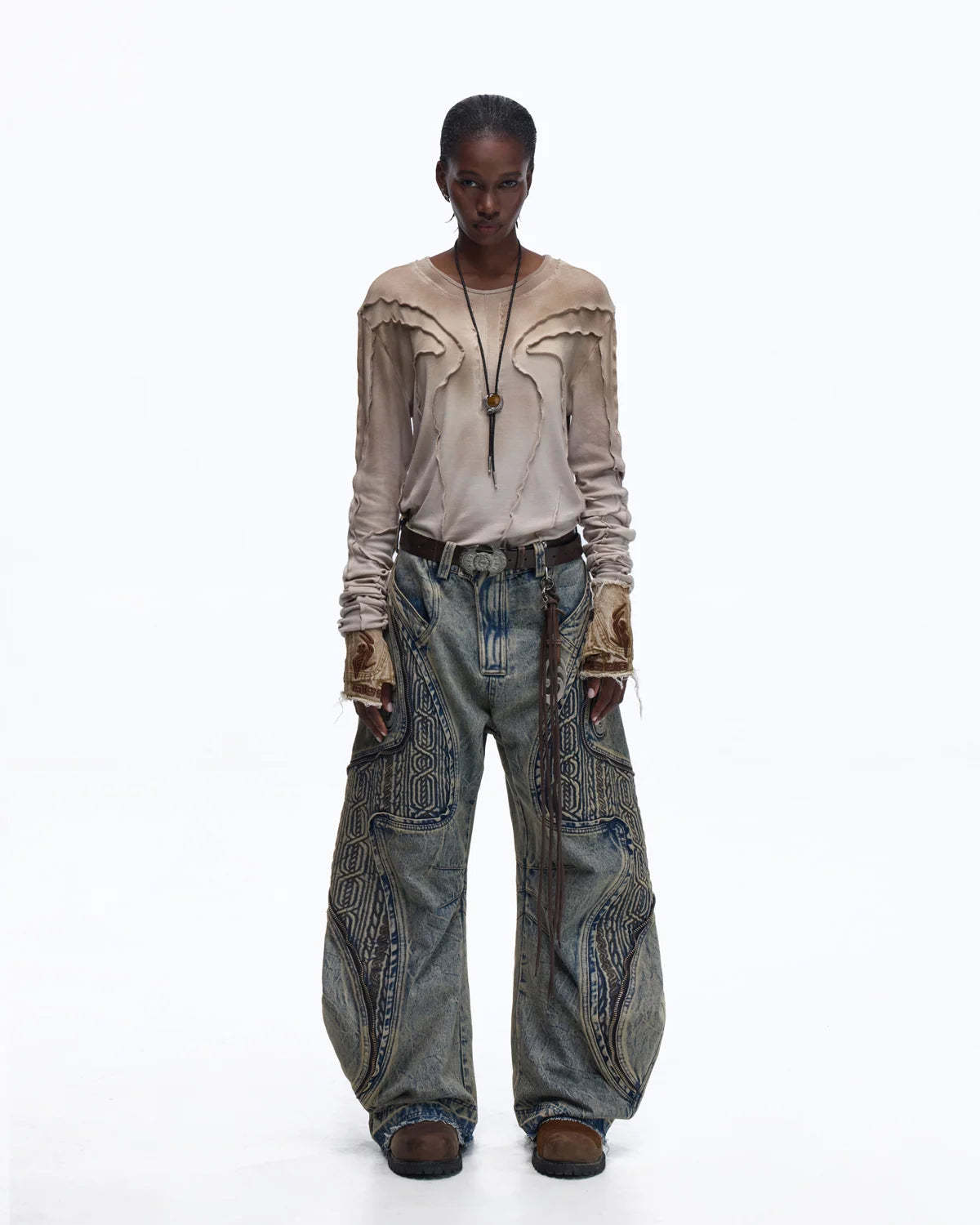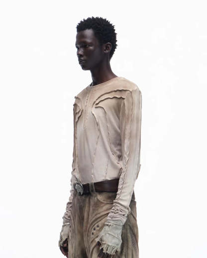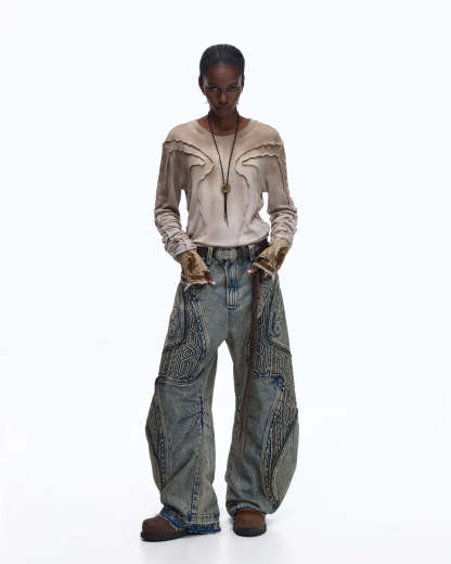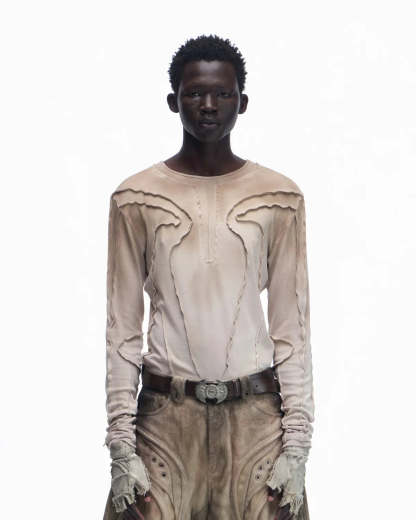 Personsoul Contrast Stitch Long Sleeve Top