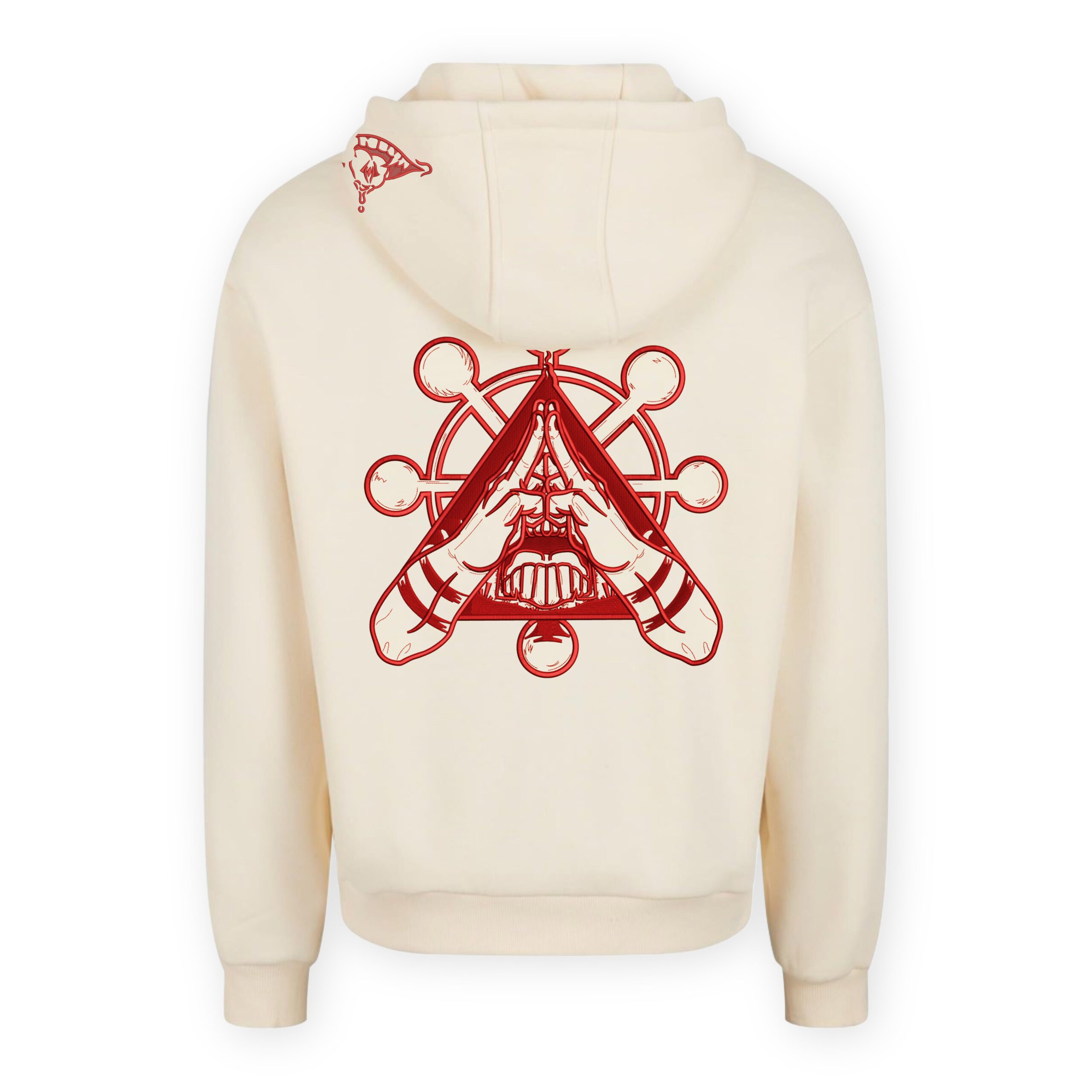 The embroidery design is always the same size and shown on a size M hoodie. So if you choose a different size, it may appear slightly larger or smaller in proportion. This subtle difference adds a unique touch to each piece.