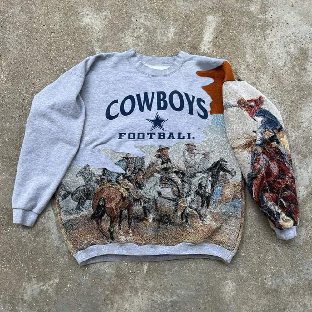 Vintage Cowboys Print Long Sleeve Sweatshirt